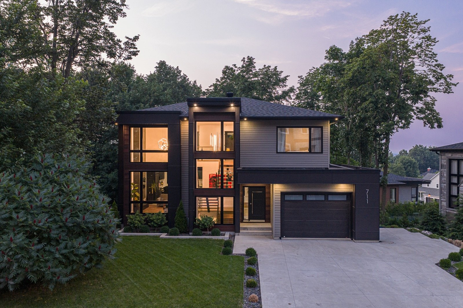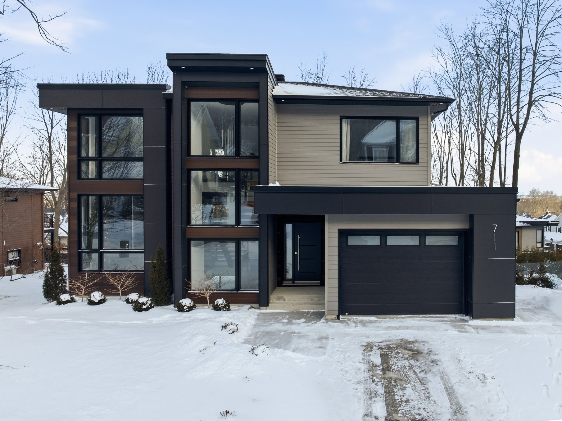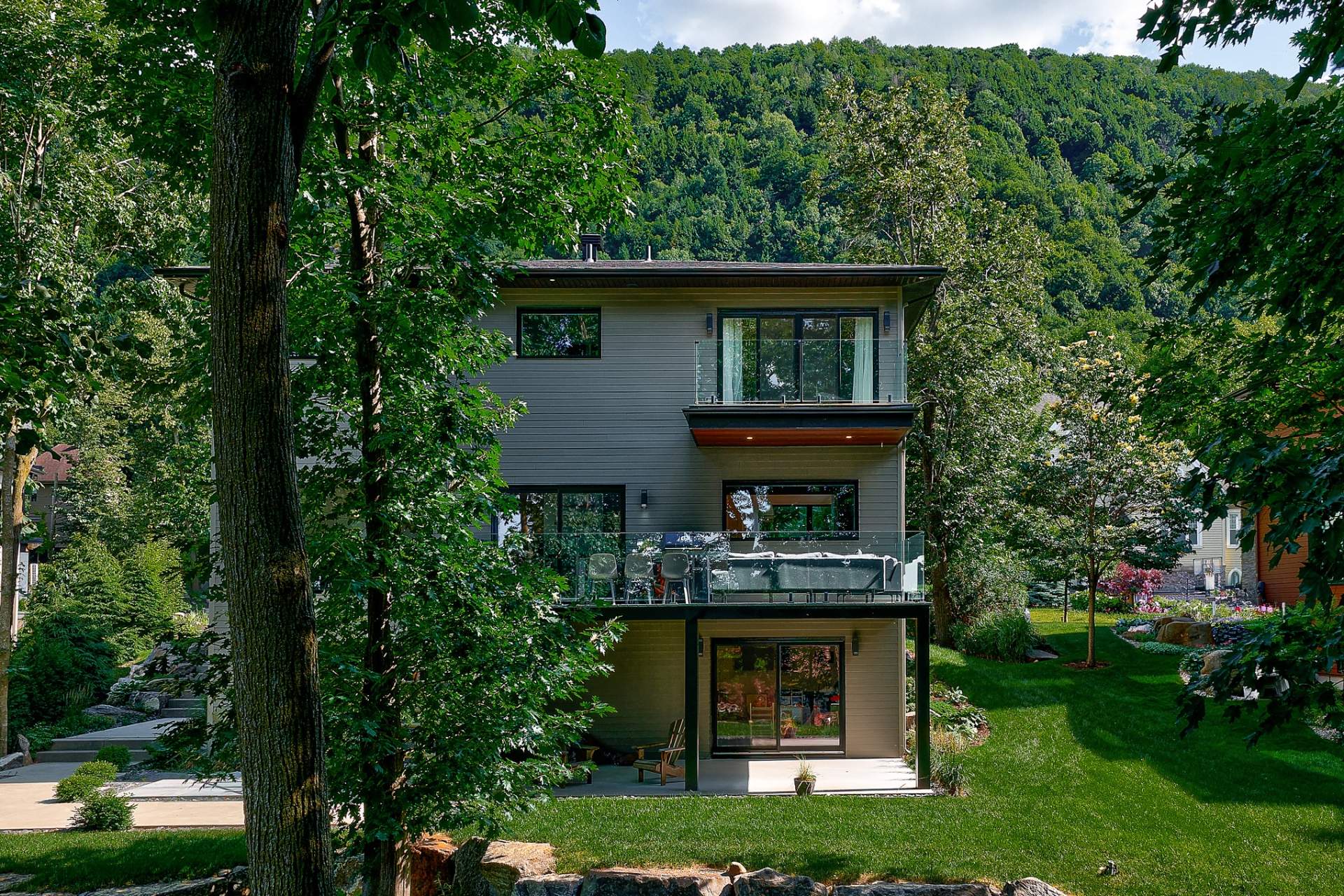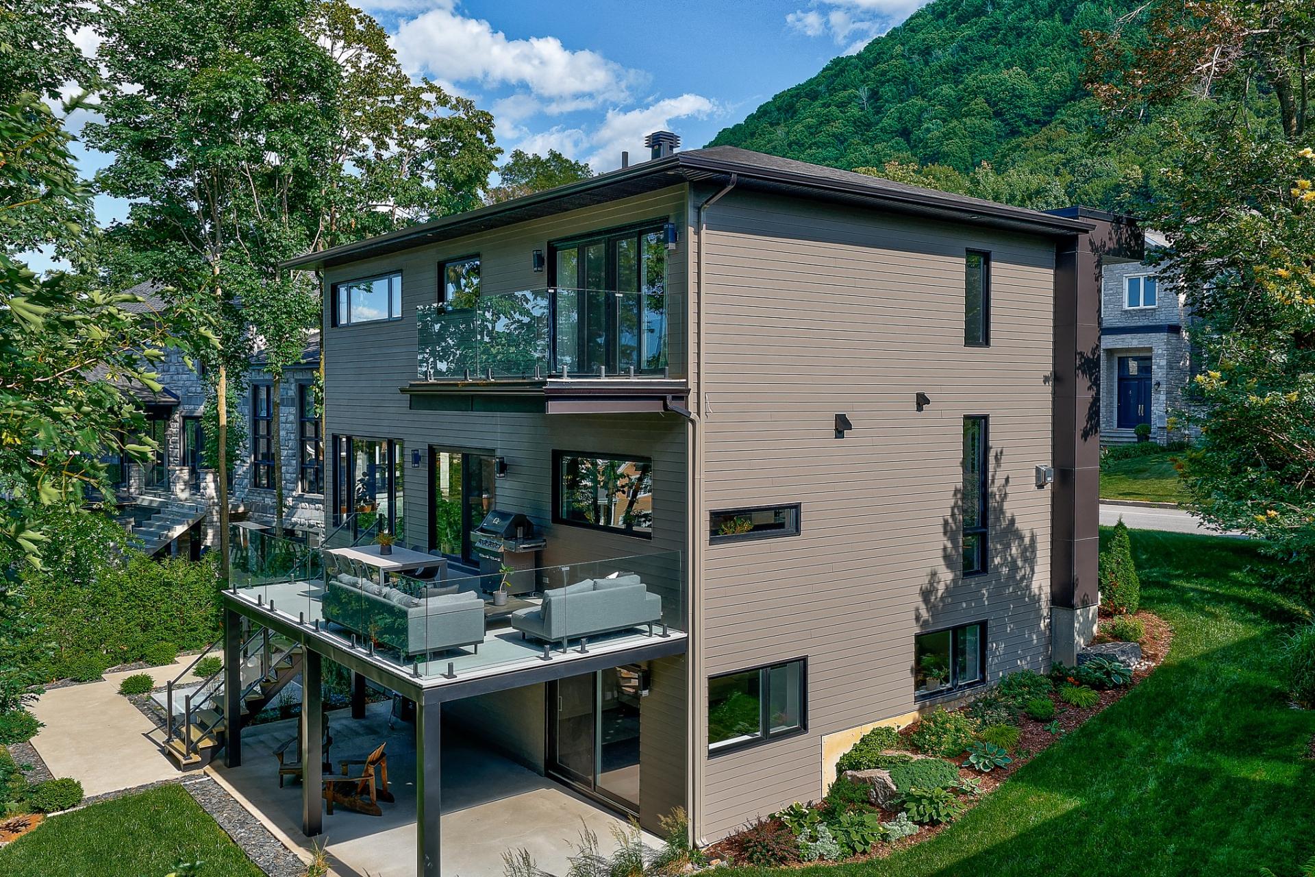 Résidence contemporaine alliant design architectural, confort moderne et matériaux haut de gamme. Baignée de lumière grâce à une fenestration abondante, elle propose 4 chambres, dont une suite principale avec walk-in connectant à une salle de bain privée, ainsi qu'un sous-sol entièrement aménagé avec chambre et salle de bain indépendante. Le terrain paysagé, déployé sur plusieurs niveaux, offre une cour intime bordée d'arbres matures, une grande terrasse, un coin feu et un balcon à l'étage avec vue sur la verdure. Un cadre de vie harmonieux au pied de la montagne, sécuritaire et à proximité des sentiers, parcs et commodités.