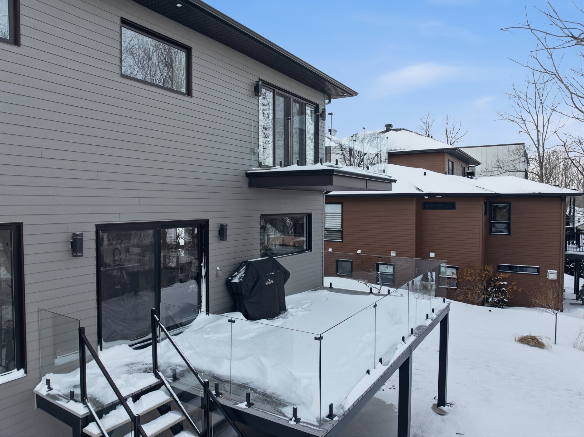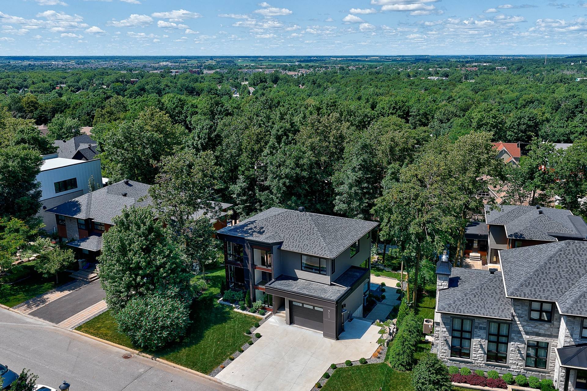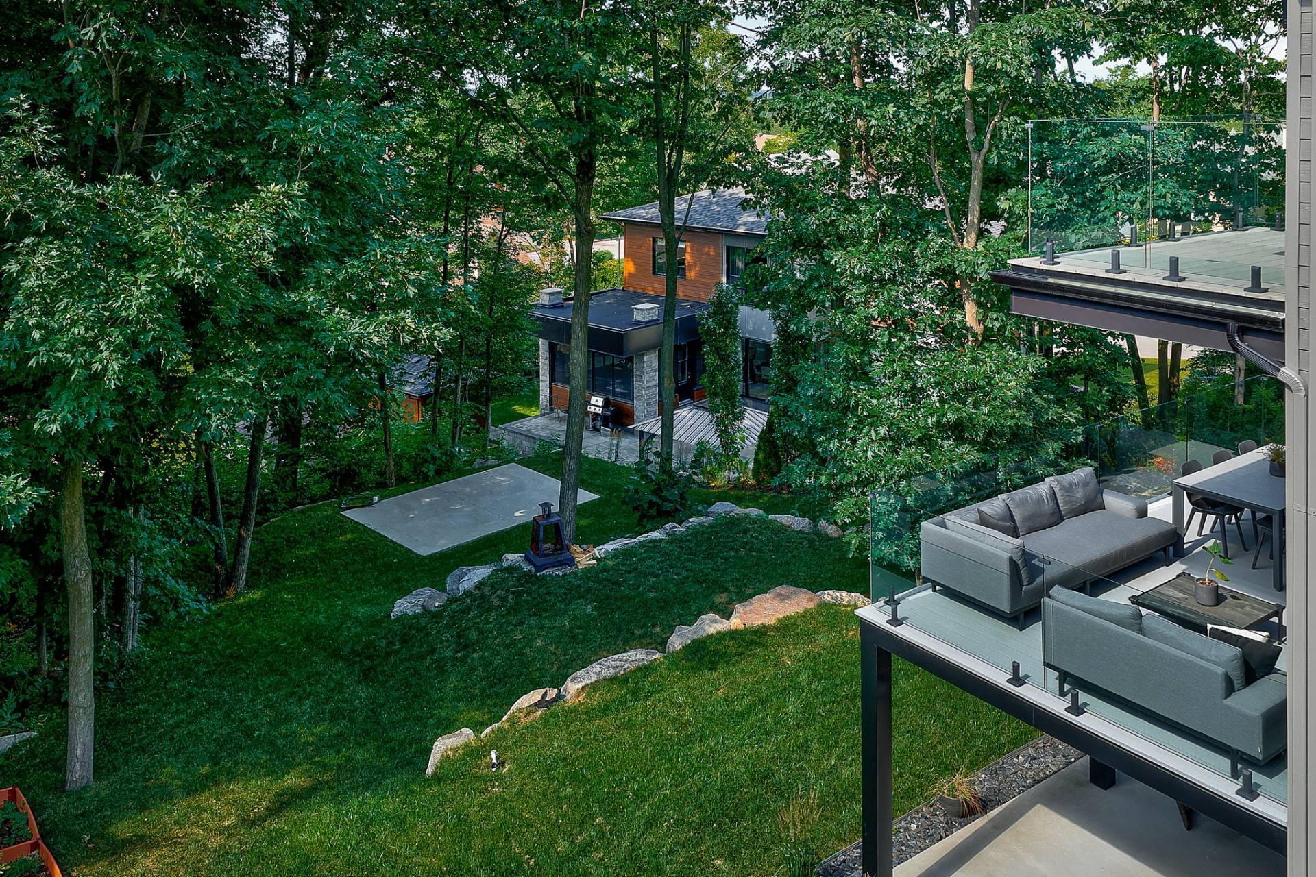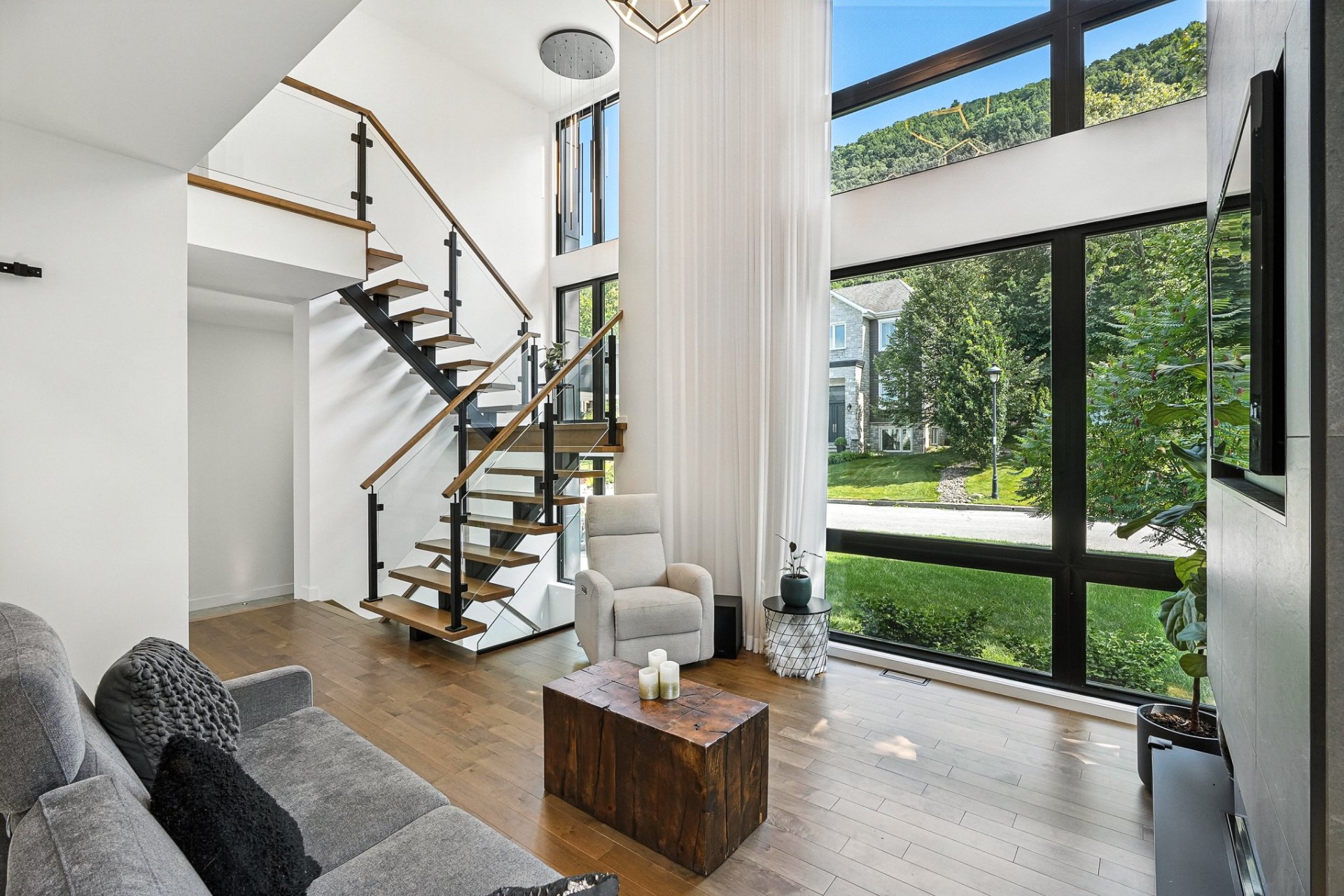 Résidence contemporaine alliant design architectural, confort moderne et matériaux haut de gamme. Baignée de lumière grâce à une fenestration abondante, elle propose 4 chambres, dont une suite principale avec walk-in connectant à une salle de bain privée, ainsi qu'un sous-sol entièrement aménagé avec chambre et salle de bain indépendante. Le terrain paysagé, déployé sur plusieurs niveaux, offre une cour intime bordée d'arbres matures, une grande terrasse, un coin feu et un balcon à l'étage avec vue sur la verdure. Un cadre de vie harmonieux au pied de la montagne, sécuritaire et à proximité des sentiers, parcs et commodités.