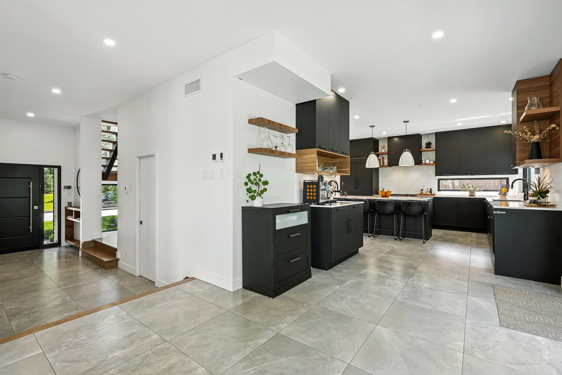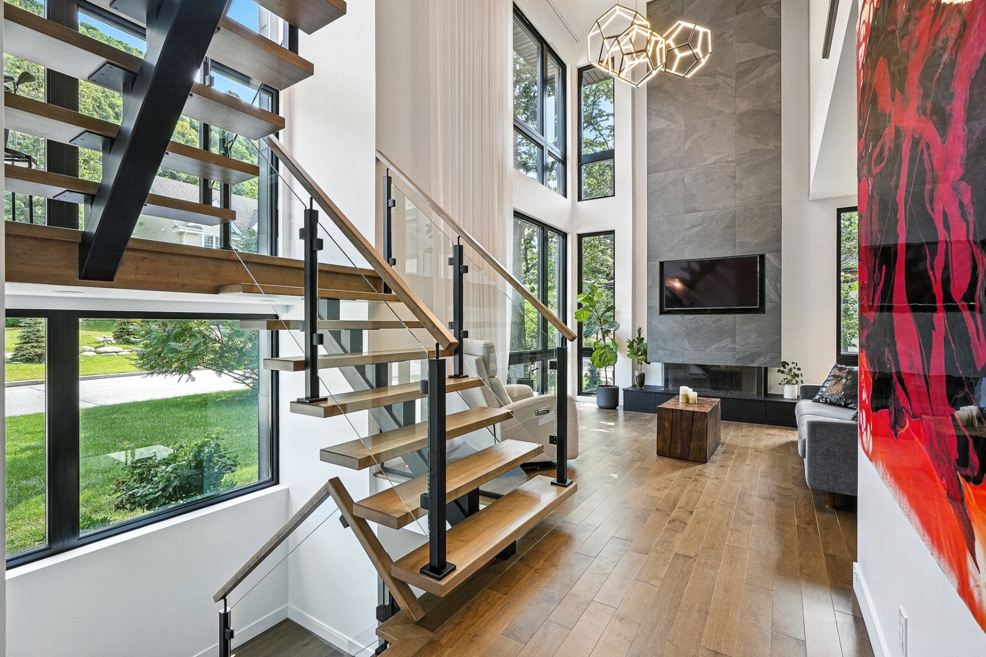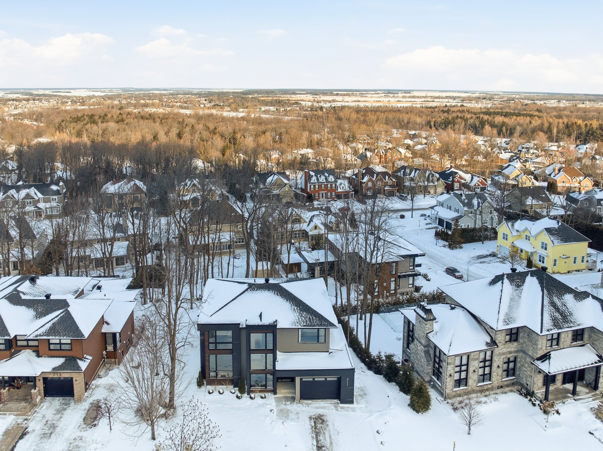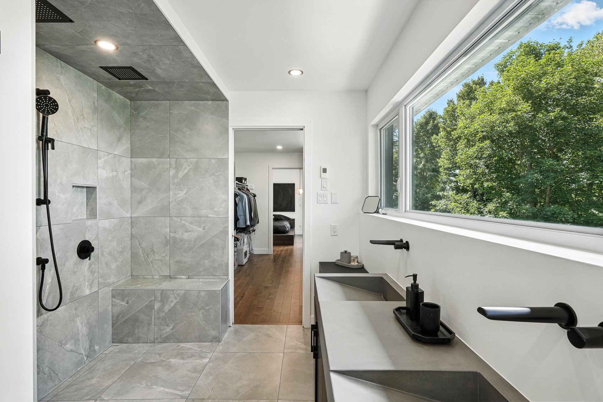 Résidence contemporaine alliant design architectural, confort moderne et matériaux haut de gamme. Baignée de lumière grâce à une fenestration abondante, elle propose 4 chambres, dont une suite principale avec walk-in connectant à une salle de bain privée, ainsi qu'un sous-sol entièrement aménagé avec chambre et salle de bain indépendante. Le terrain paysagé, déployé sur plusieurs niveaux, offre une cour intime bordée d'arbres matures, une grande terrasse, un coin feu et un balcon à l'étage avec vue sur la verdure. Un cadre de vie harmonieux au pied de la montagne, sécuritaire et à proximité des sentiers, parcs et commodités.