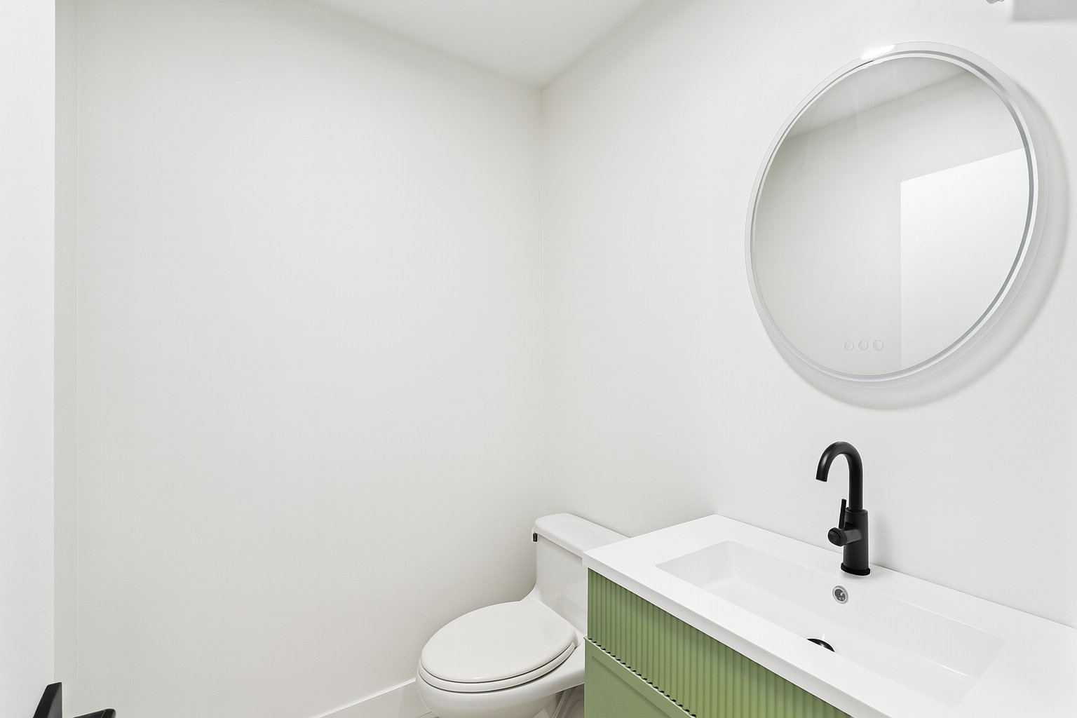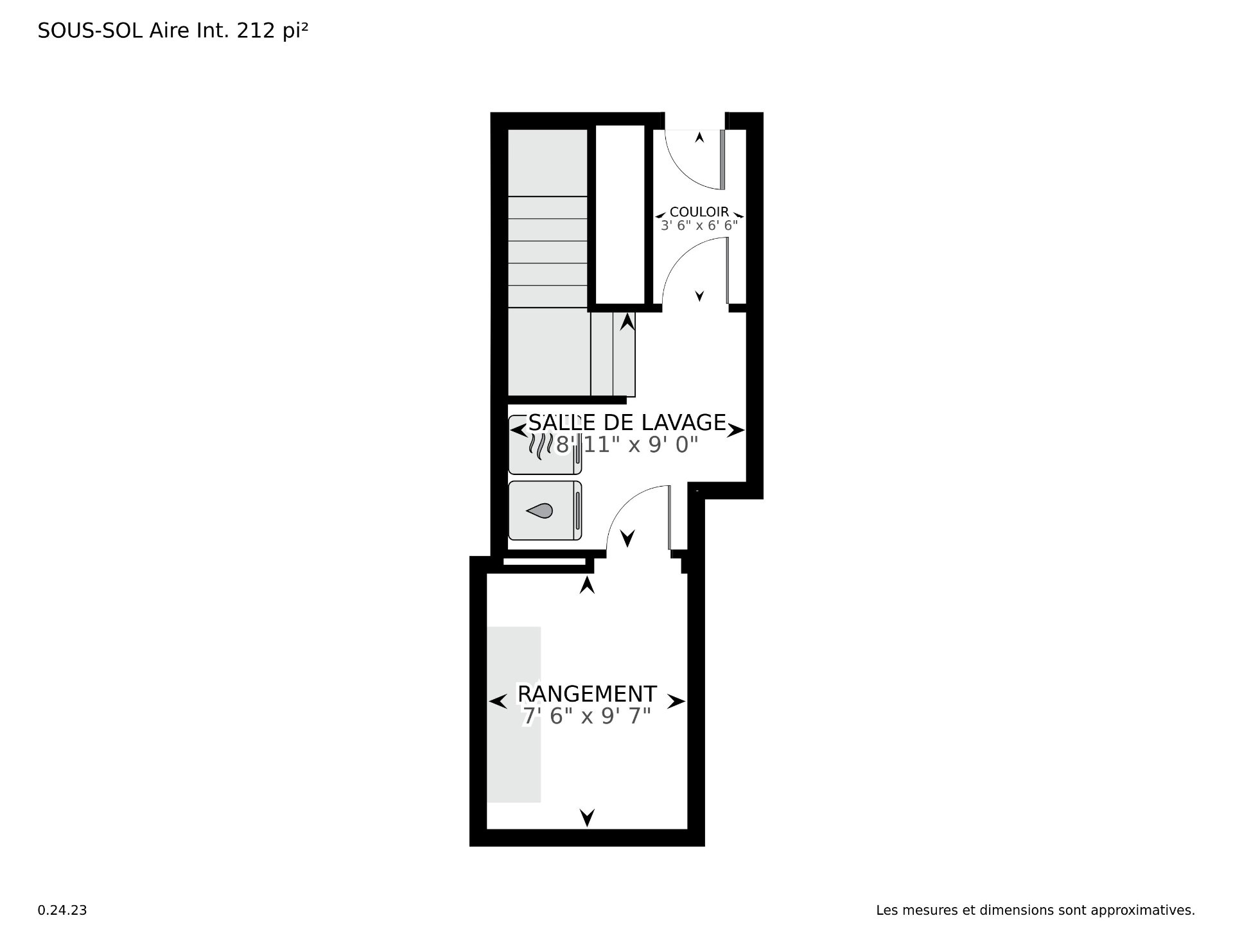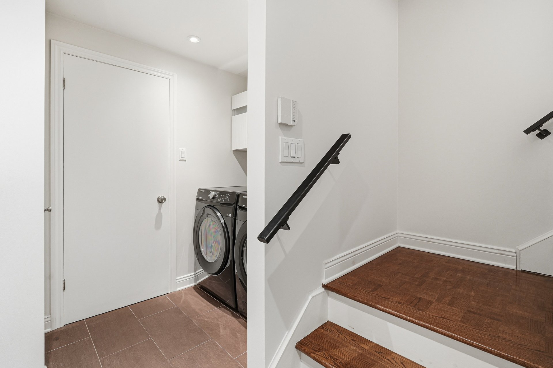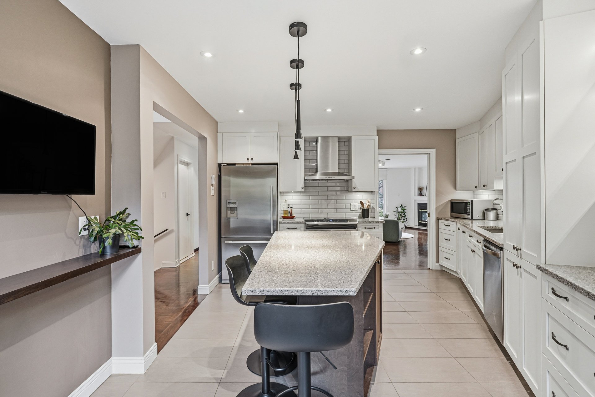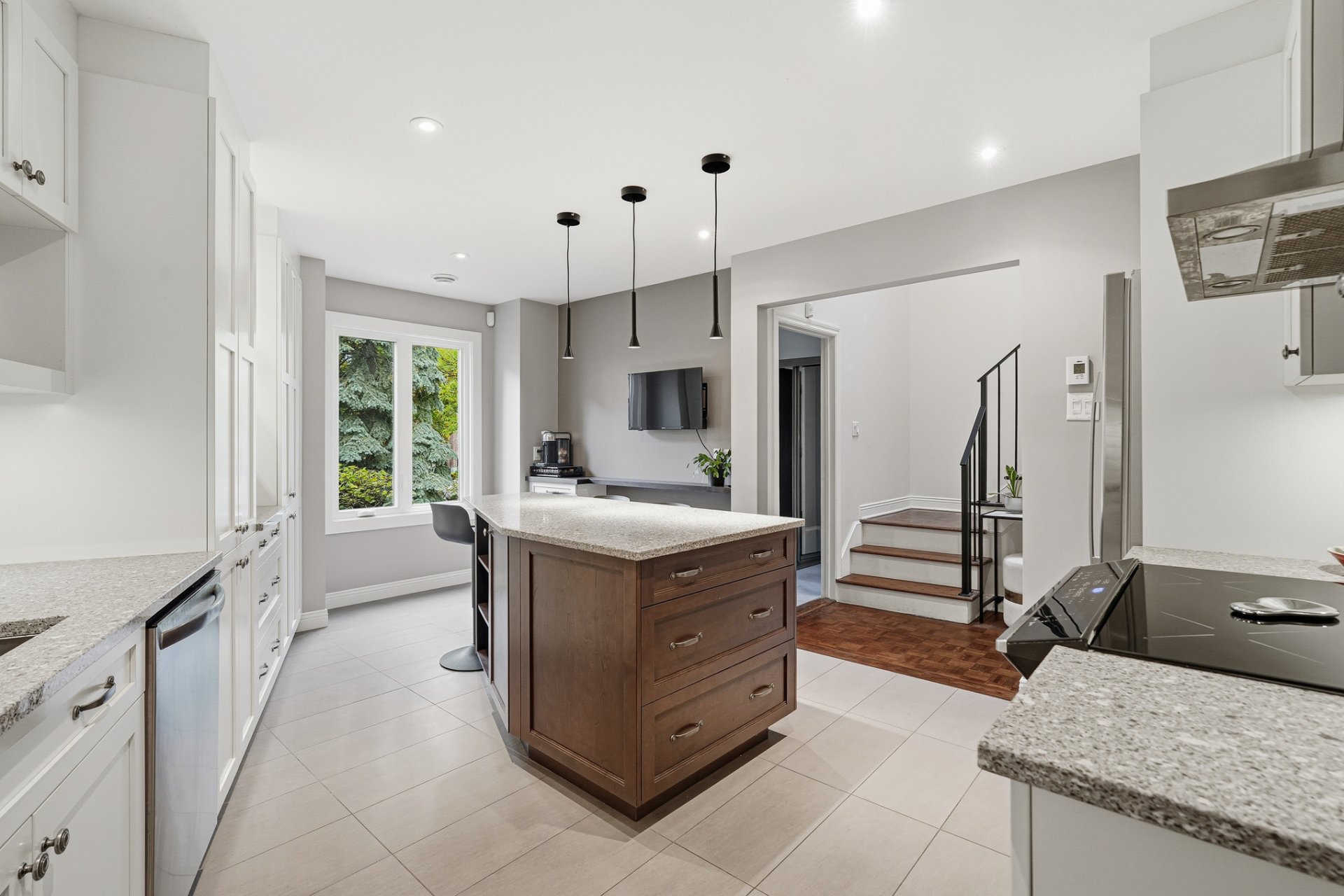 - Électroménagers (réfrigérateur Fisher&Paykel, four induction Kenmore, lave-vaisselle frigidaire), luminaires fixes, rangement du garage au sous-sol.