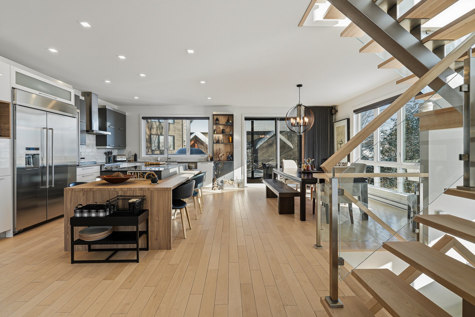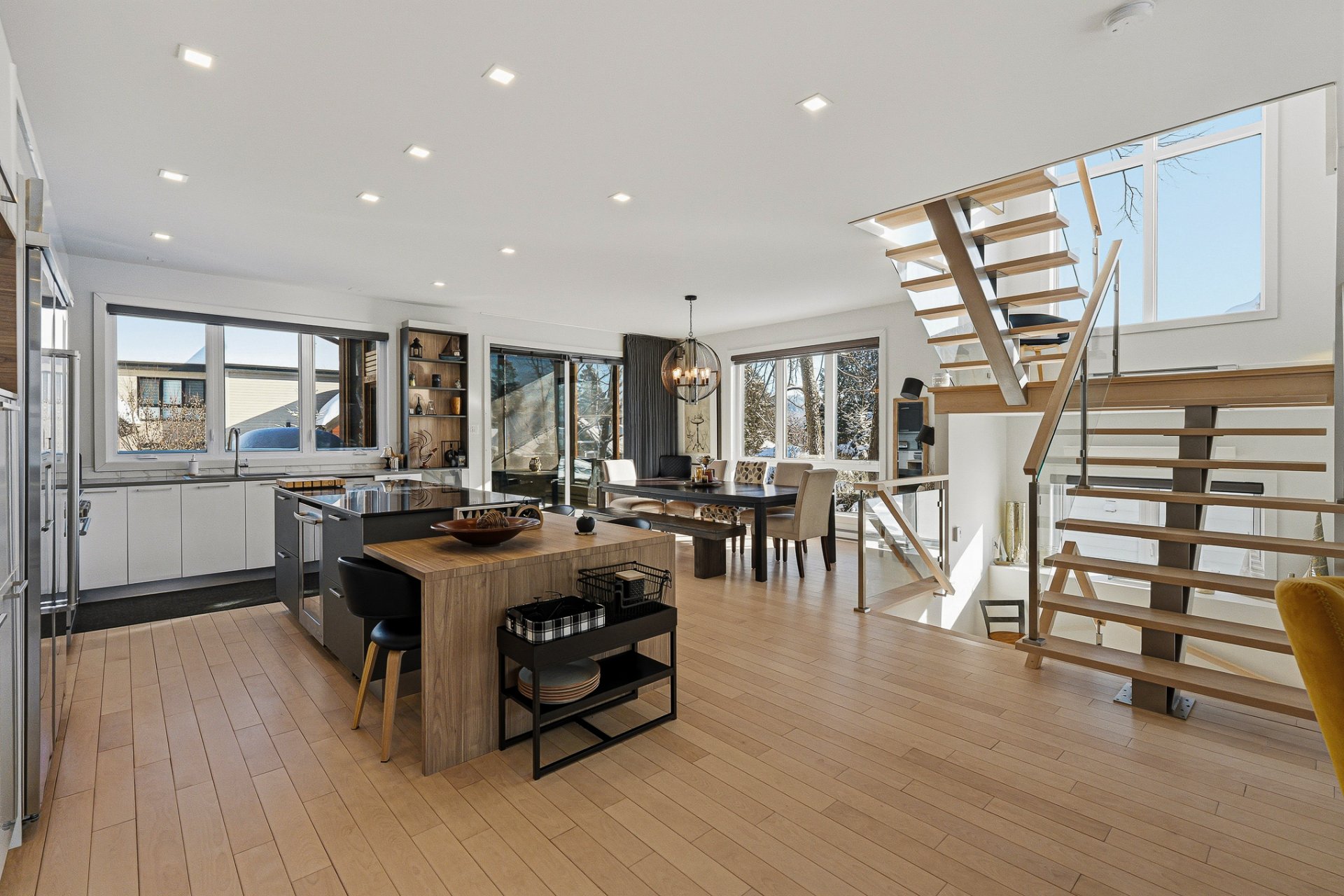 Dès l'entrée, on découvre des espaces de vie généreux baignés de lumière naturelle du lever au coucher du soleil, grâce à son emplacement privilégié. Le rez-de-chaussée propose une aire ouverte conviviale où le salon, la salle à manger et la cuisine se côtoient harmonieusement.