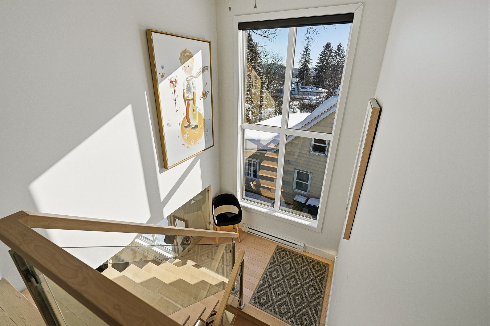 En harmonie avec sa nature environnante, bienvenue dans cette maison de ville en unité de coin, offrant un cadre de vie raffiné, lumineux et intime avec vue sur les pentes de ski du Mont-Saint-Sauveur.