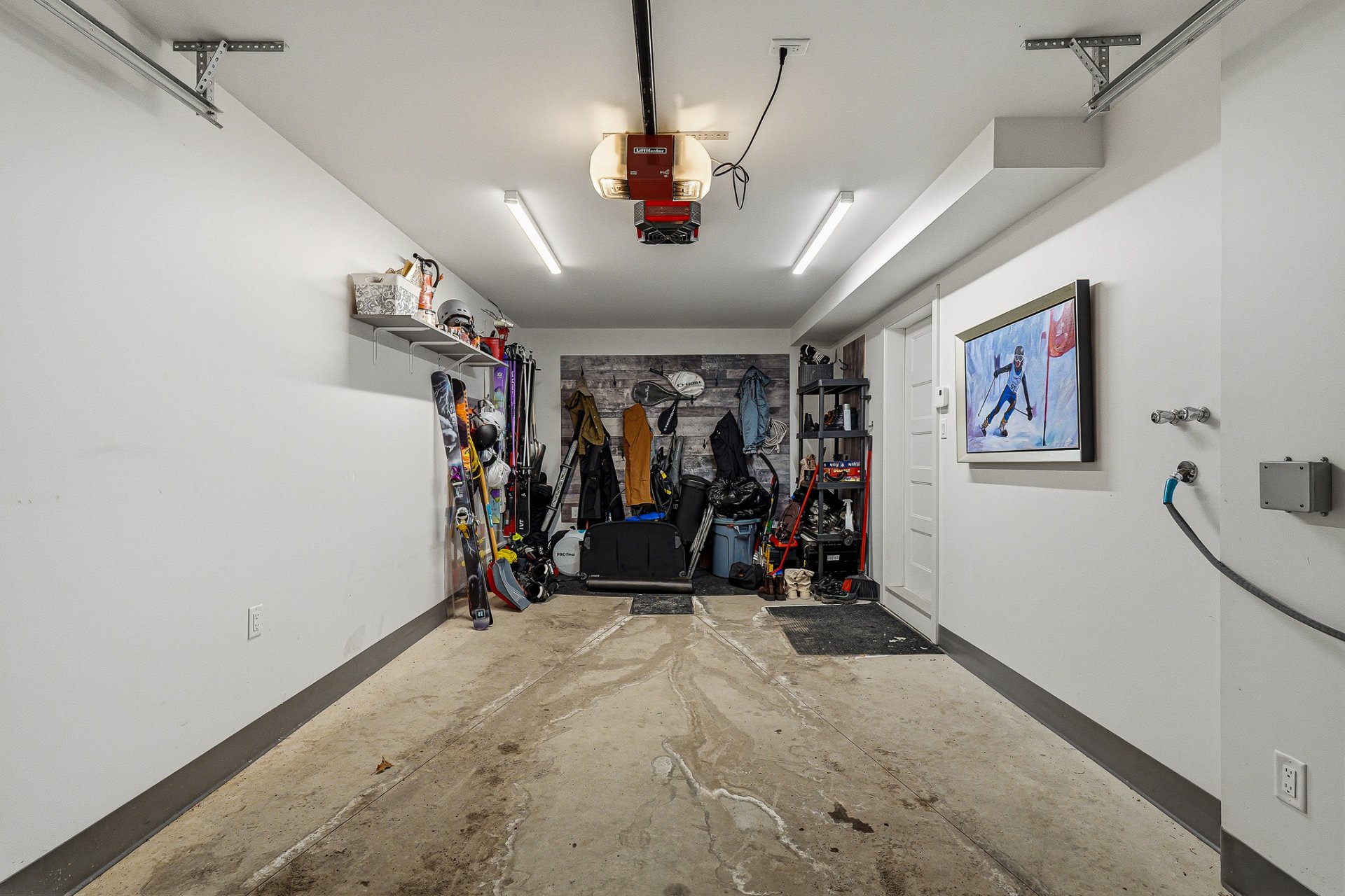 Un garage intégré complète la propriété, offrant un espace pratique pour le stationnement et le rangement, idéal en toute saison ainsi qu'une place de stationnement extérieure.