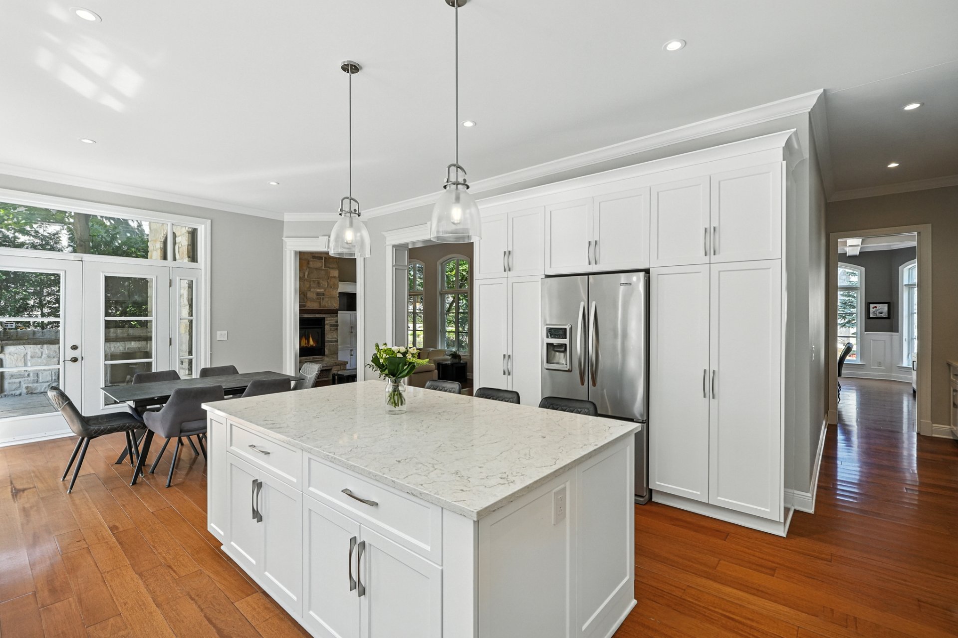 Bienvenue au 7 rue Brisach, Ville Lorraine. Dès le premier regard, cette somptueuse propriété séduit par ses volumes généreux, son élégance intemporelle et son aménagement pensé pour allier confort, raffinement et fonctionnalité. Elle est à la hauteur des plus hautes attentes. Dès l'entrée, un vaste hall mène vers un salon majestueux avec plafond cathédrale et foyer au bois, créant une atmosphère chaleureuse et conviviale. La grande salle à manger, idéale pour accueillir jusqu'à 12 convives, se prête parfaitement aux réceptions. La cuisine, récemment rénovée avec soin, allie élégance et praticité. Ouverte sur le coin repas, elle communique directement avec le salon, la salle à manger et la cuisine extérieure, offrant une fluidité remarquable. On retrouve aussi une salle d'eau ainsi qu'une buanderie avec accès extérieur, pratique pour revenir de la piscine sans passer par les aires de vie. 4 chambres aux belles dimensions composent l'étage, auxquelles s'ajoute une salle familiale pouvant facilement être convertie en 5e chambre. La suite principale est un véritable havre de paix avec foyer au gaz, 2 walk-in distincts et une vaste salle de bain attenante équipée d'un bain sur pattes et d'une douche séparée. Une 2e salle de bain complète dessert les autres chambres, assurant confort et intimité à tous. Le sous-sol, entièrement aménagé, propose 2 grandes chambres, une salle familiale, une sdb complète ainsi que de vastes espaces de rangement. Ce niveau polyvalent répond parfaitement aux besoins d'une grande famille. Le garage triple, fenestré et doté de hauts plafonds de 13', comprend 2 sorties et une installation pour borne de recharge électrique. À l'arrière, la cour est un véritable sanctuaire de tranquillité, sans voisin et parfaitement aménagée pour profiter de chaque saison. La cuisine extérieure couverte, adjacente à la maison, permet de prolonger les repas d'été en toute convivialité. La piscine au sel chauffée au gaz, le spa 8 places installé en 2024 et les multiples espaces de détente viennent enrichir ce cadre enchanteur. Les allées, l'entrée et le pourtour de la piscine sont réalisés en béton estampé, garantissant esthétisme, durabilité et entretien minimal. Cette demeure se distingue par la qualité de ses finitions, ses espaces généreux et sa conception raffinée, pensée pour offrir un cadre de vie prestigieux. Située dans l'un des secteurs les plus recherchés de Ville Lorraine, elle conjugue élégance, intimité et proximité des services. Une propriété d'exception qui mérite une visite!