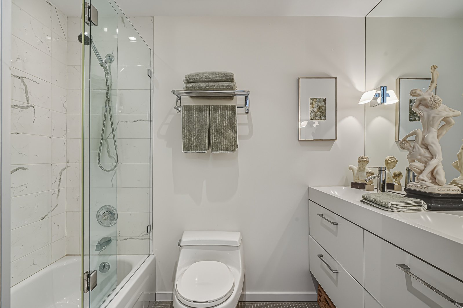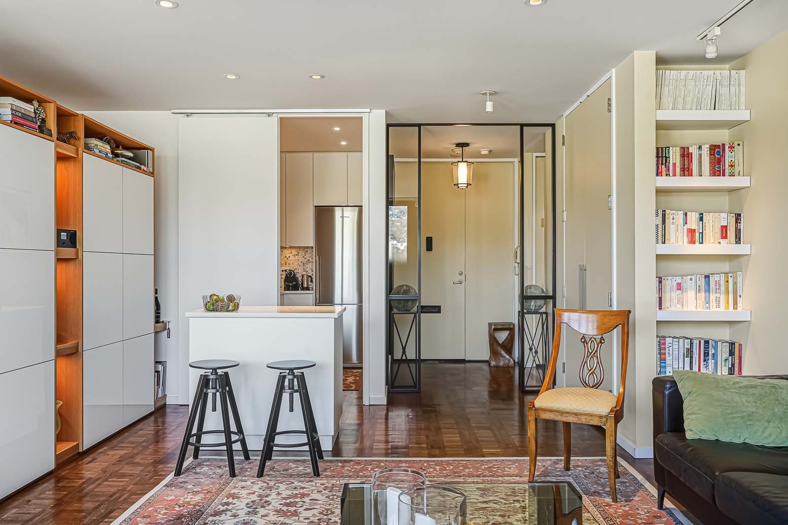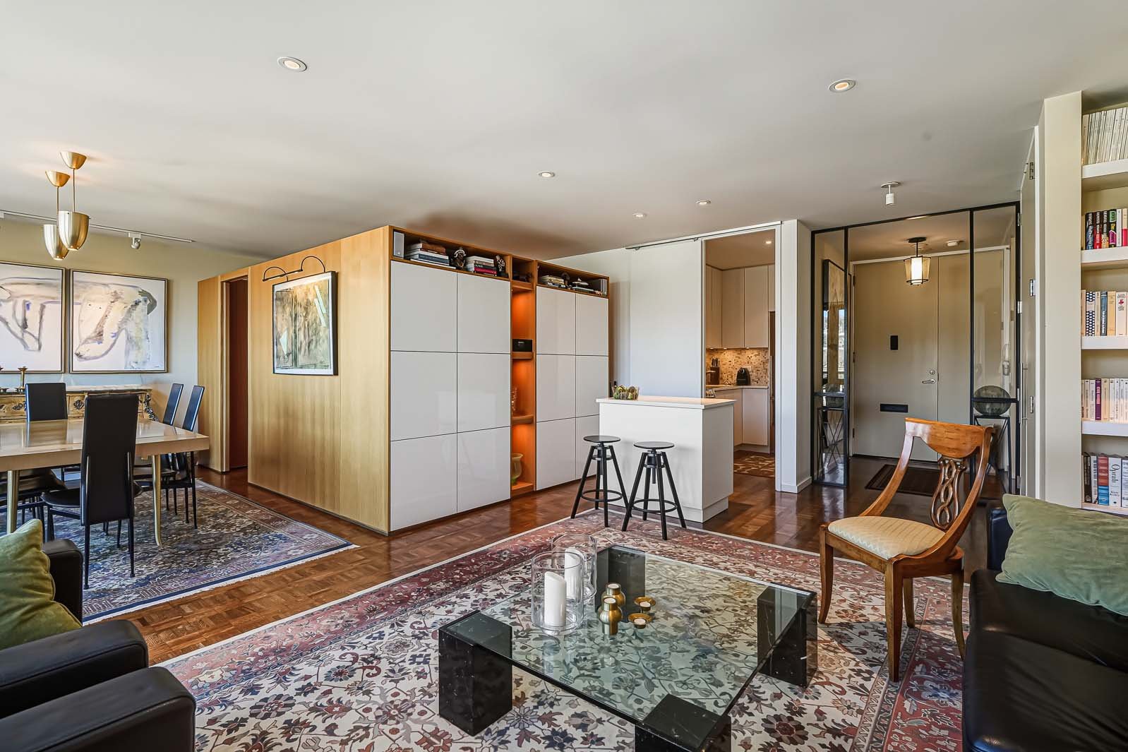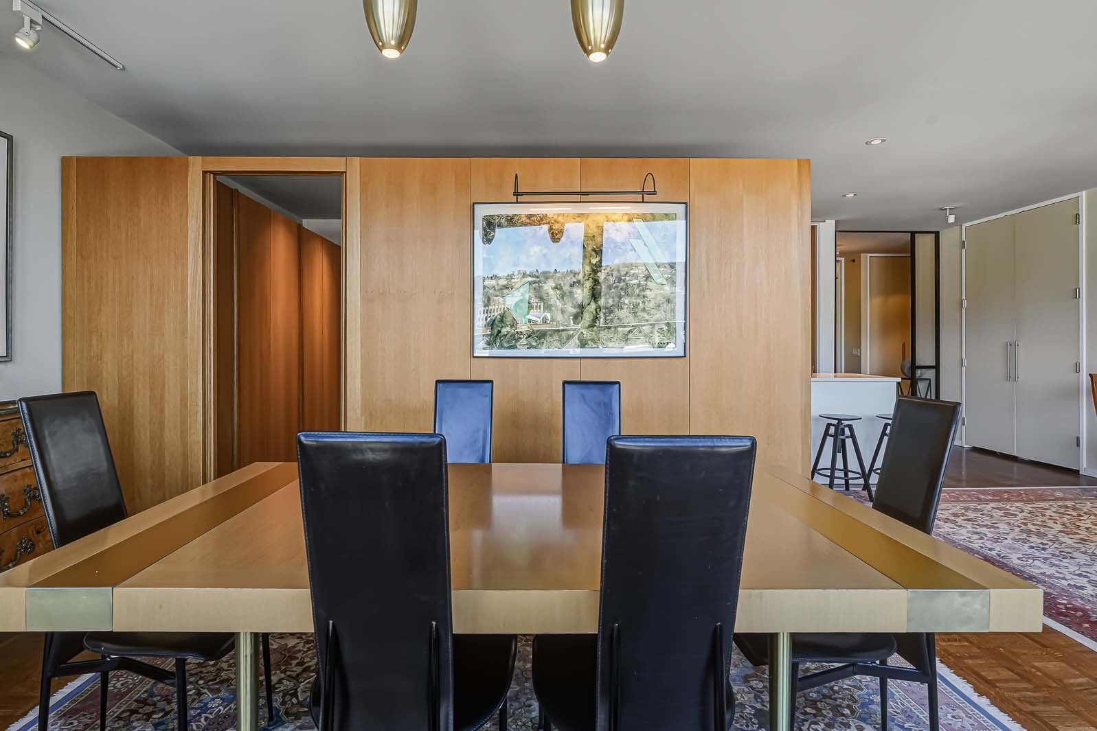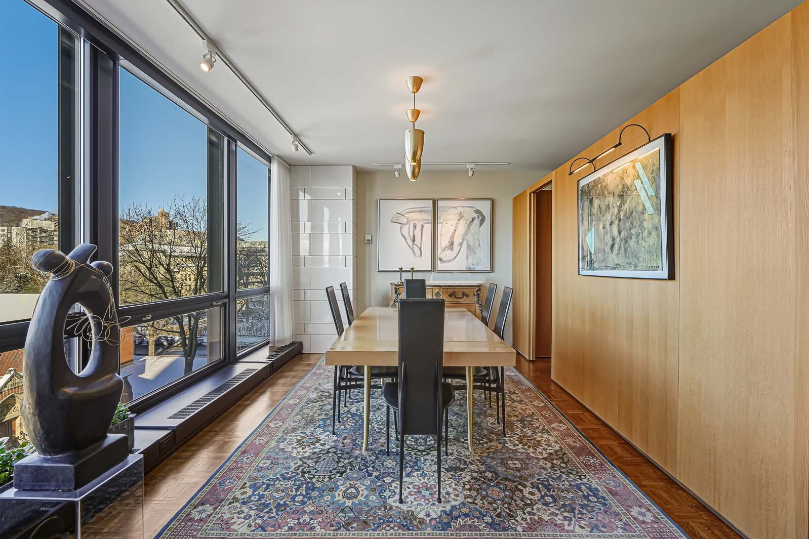 Westmount Square, immeuble iconique signé par le maître de l'architecture moderne Mies van der Rohe. Cette unité a été entièrement reconfigurée afin de mettre en valeur la vue spectaculaire et très recherchée sur le mont Royal, tout en optimisant la pièce de vie par l'ajout d'un espace salle à manger pouvant accueillir six convives -- absent du plan original. La rénovation respecte les principes du Bauhaus : lignes pures, formes sobres et matériaux nobles tels que le marbre, la laque et le chêne blond intégrés aux rangements et cloisons. Pied-à-terre idéal ou résidence principale, avec rangements généreux, éclairage et stores motorisés.