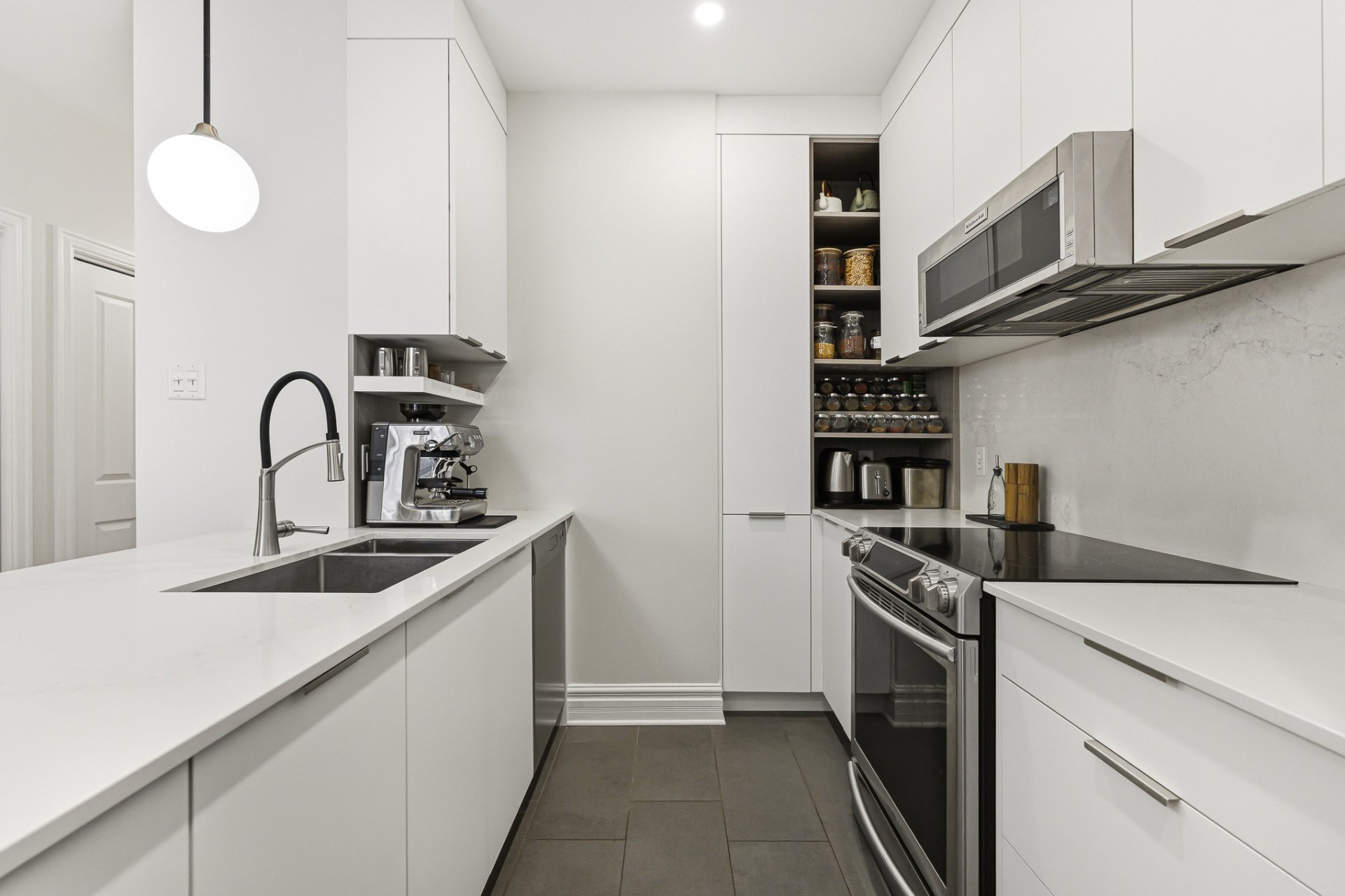 Modèle très convoité au sein du projet Les Cours du Parc Laurier. Superficie de 1 066 pi², configuration 2 chambres et spacieuse terrasse avec vue sur la cour intérieure. L'aménagement a été soigneusement pensé. Chambres situées à l'opposé l'une de l'autre, cuisine ouverte sur l'aire de vie sans perte d'espace, et salle à manger attenante à un salon plus vaste que plusieurs modèles du secteur. La grande porte vitrée offre un accès direct à la terrasse, véritable extension de l'unité.