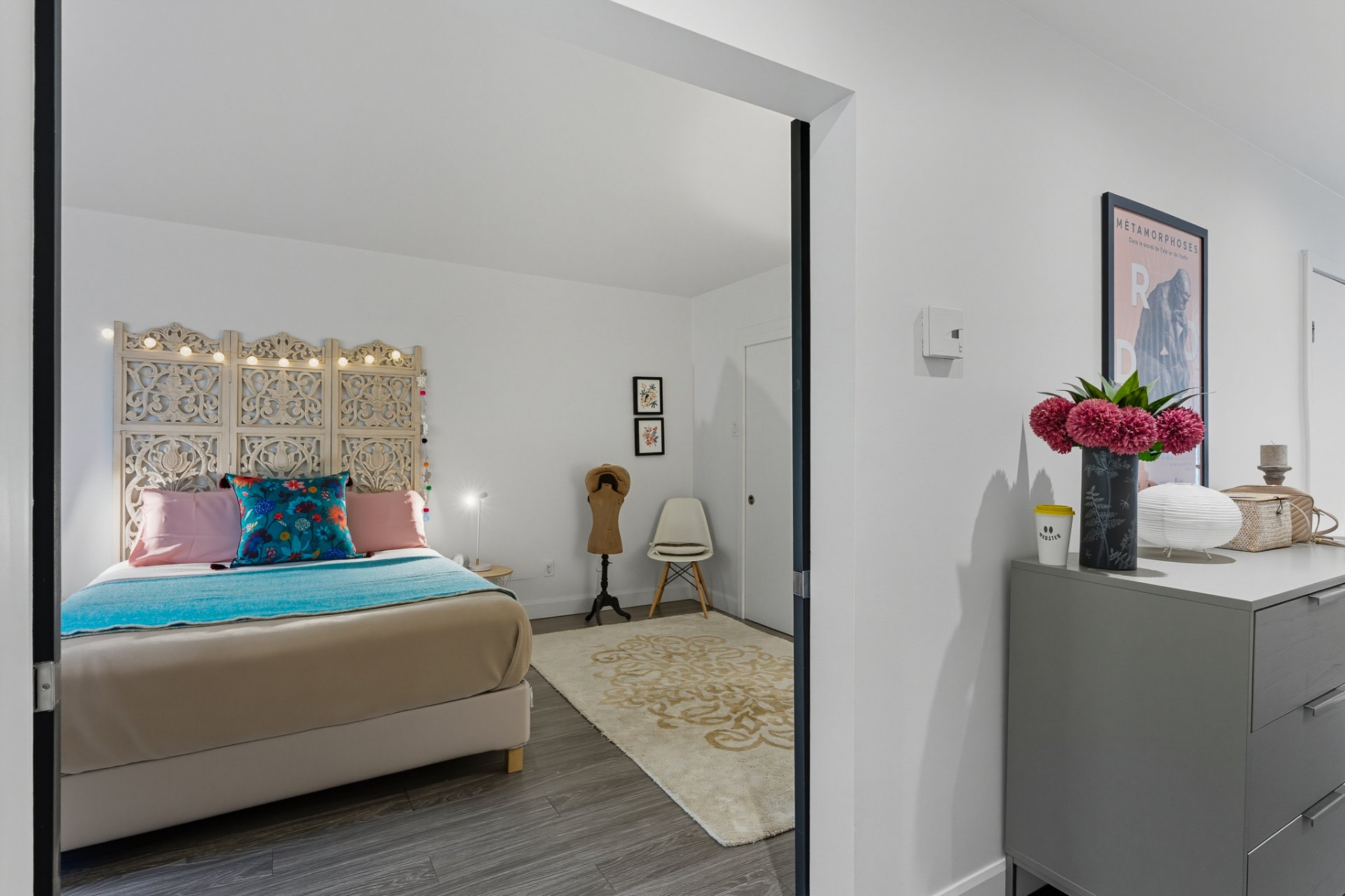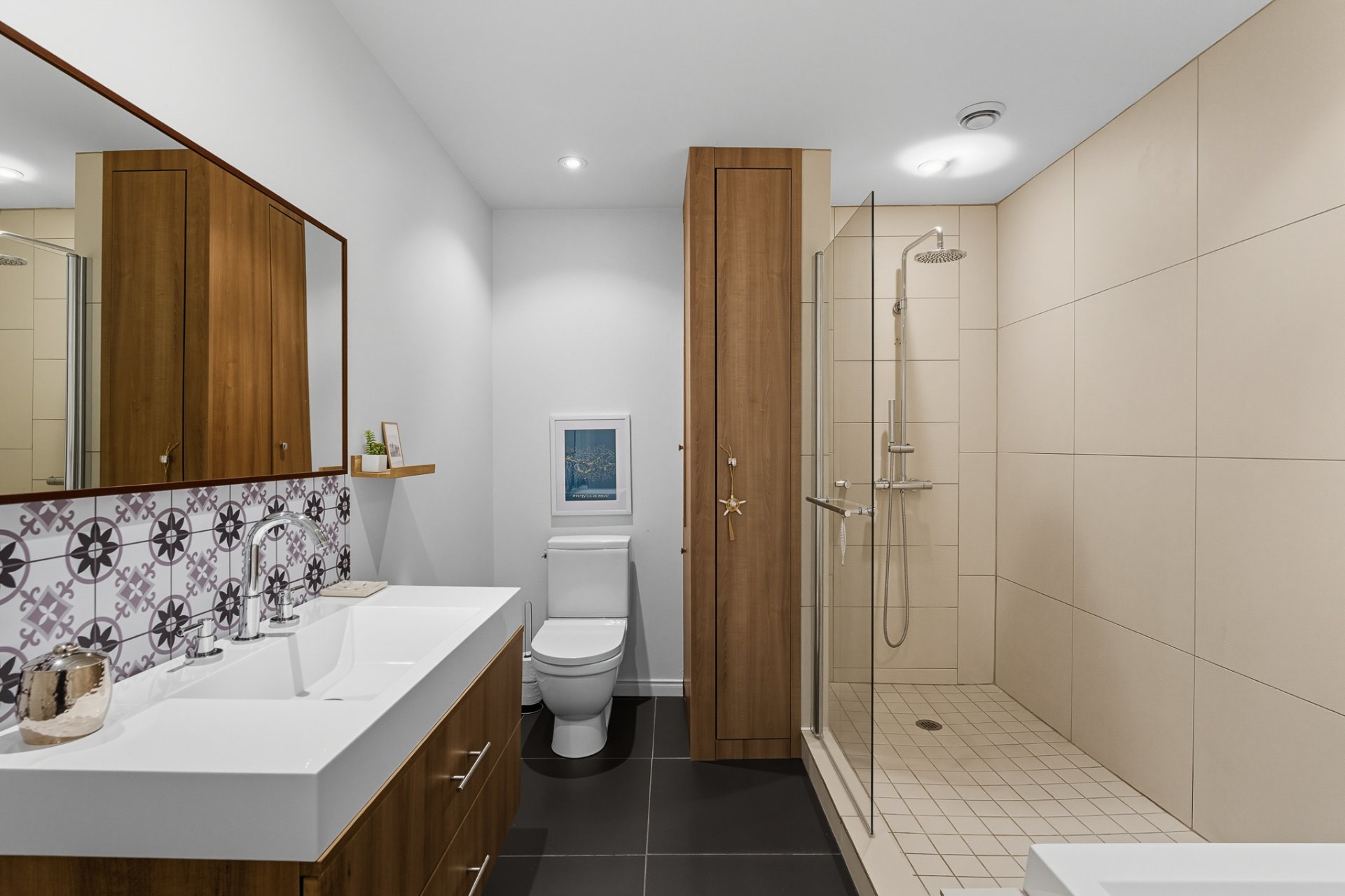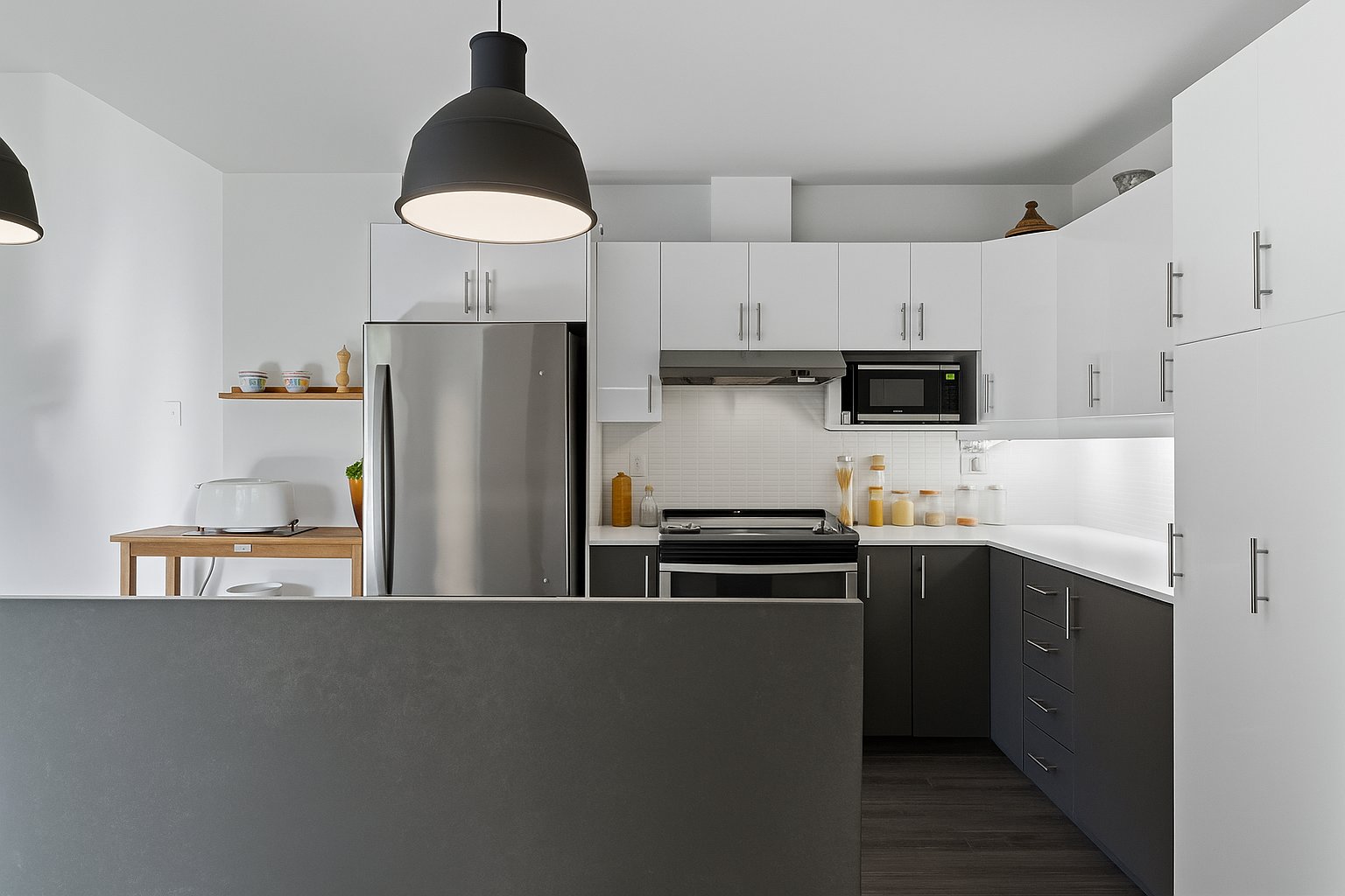 D'une superficie nette de 1 083 pi², elle offre de belles aires de vie côté Soleil, permettant à la lumière naturelle d'illuminer l'espace tout au long de la journée. Les chambres sont situées à l'avant, dont une spacieuse chambre principale avec walk-in, et plusieurs espaces de rangement complètent l'unité.