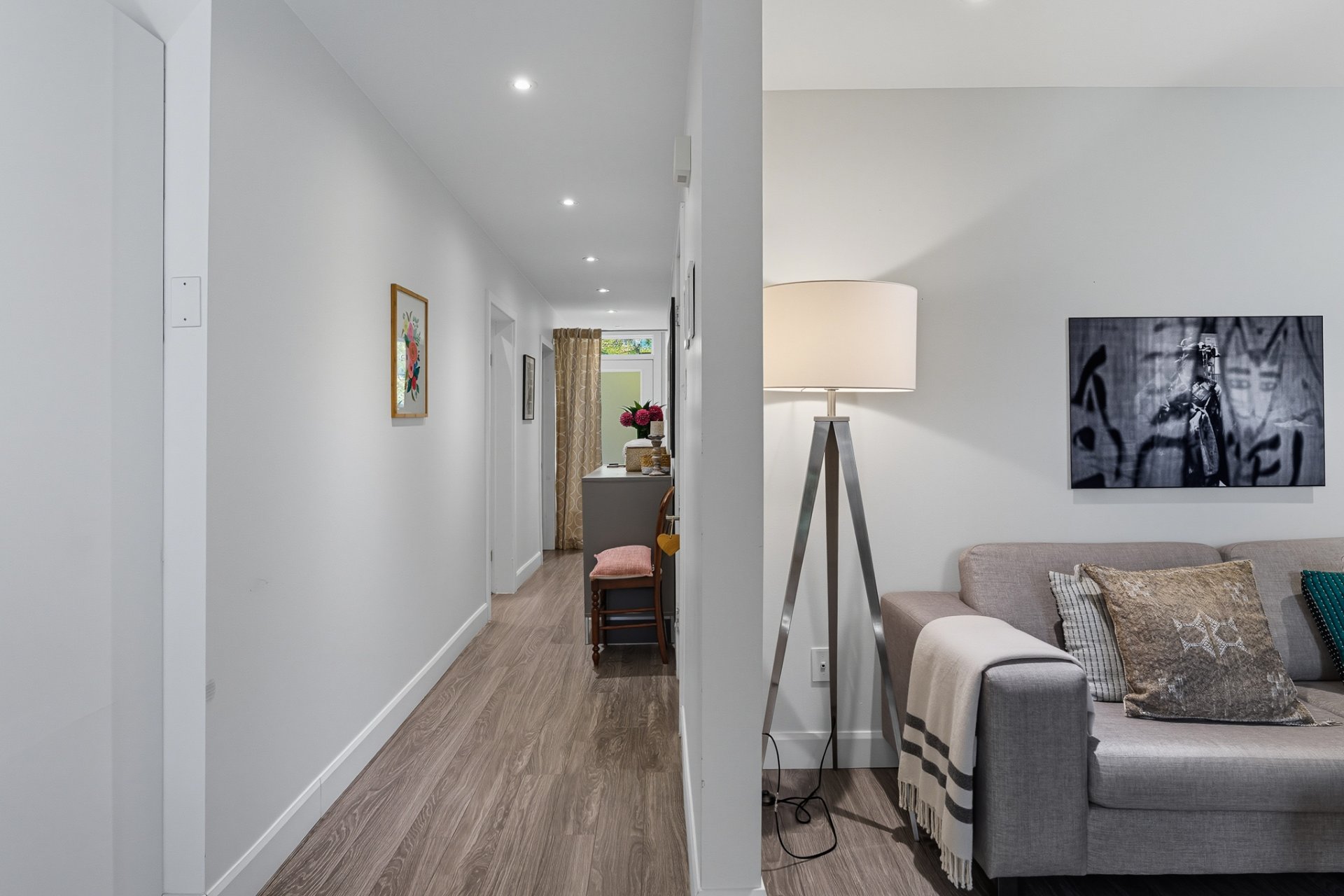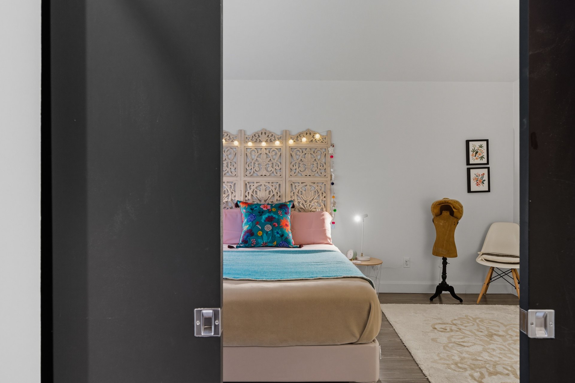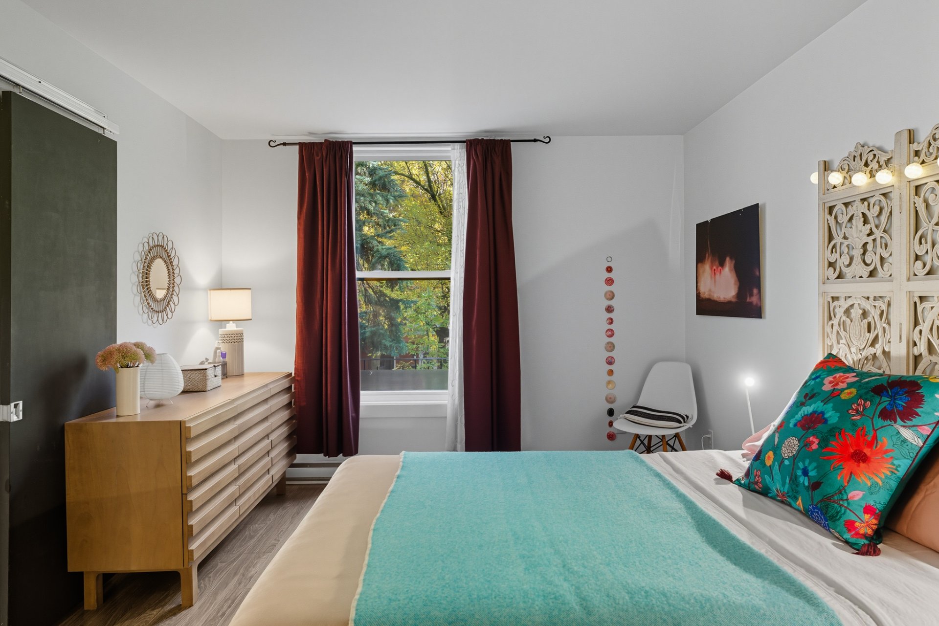 D'une superficie nette de 1 083 pi², elle offre de belles aires de vie côté Soleil, permettant à la lumière naturelle d'illuminer l'espace tout au long de la journée. Les chambres sont situées à l'avant, dont une spacieuse chambre principale avec walk-in, et plusieurs espaces de rangement complètent l'unité.