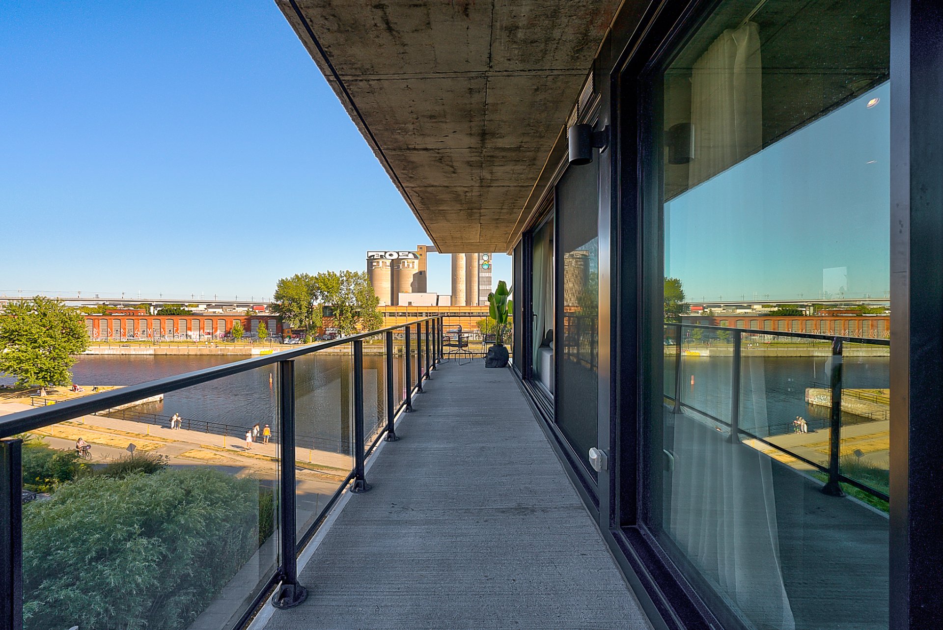 *Terrasse sur le toit avec piscine creusée et vues imprenables sur le Canal Lachine, le Farine Five Roses et le centre-ville de Montréal.