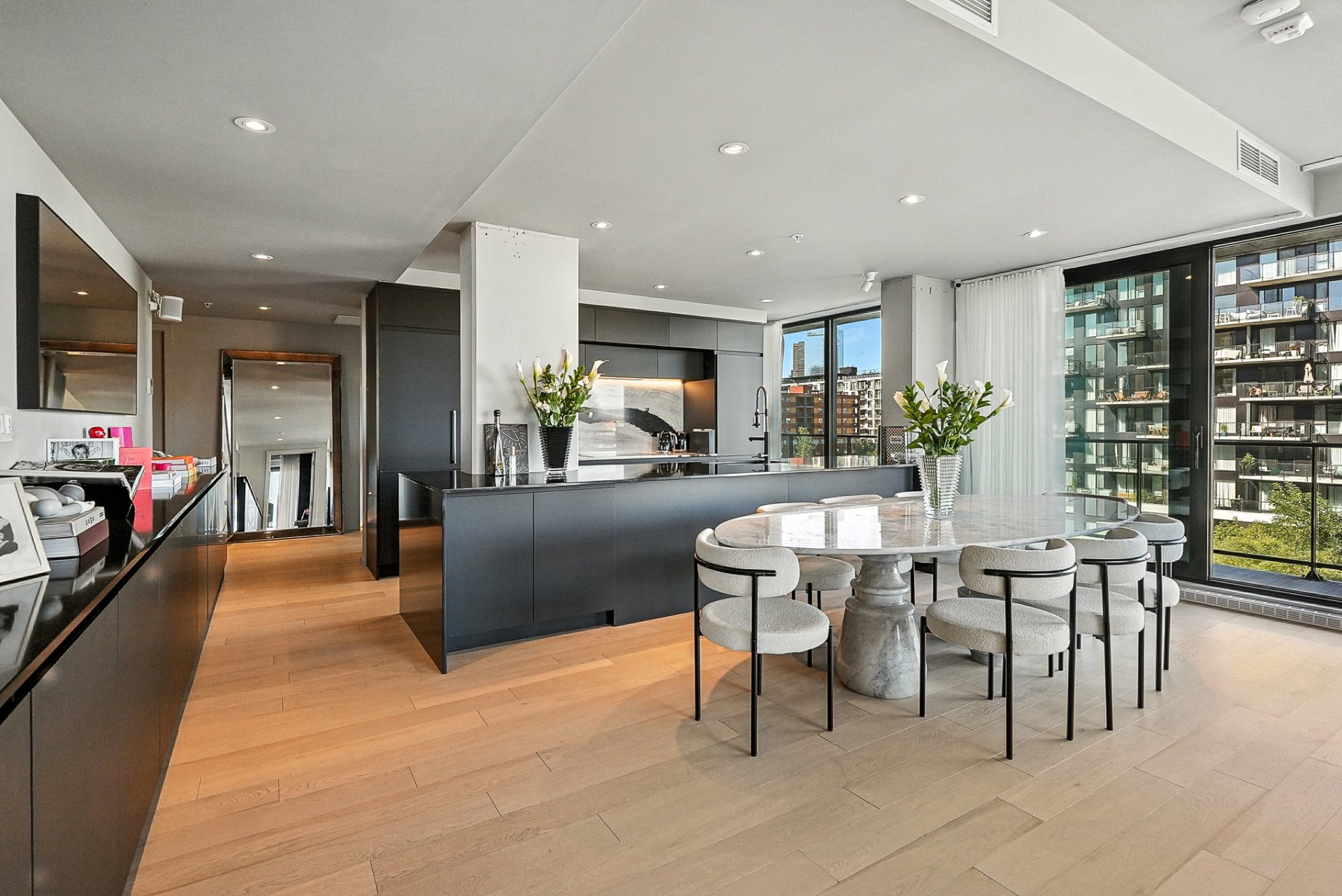 - 1 espace au garage #201. Un rangement #05 sur le même étage que l'unité, grand comme 4 lockers combinés. Plaque de cuisson à induction encastrée, four encastré, hotte de cuisine, lave-vaisselle encastré, 2 réfrigérateurs / congélateurs encastrés, rangements muraux sur mesures dans la chambre des maîtres, rangements muraux sur mesures incluant table à langée chambre #2, rangements muraux sur mesures dans la salle de lavage et Rangements muraux sur mesures noirs dans l'espace de vie et salon.