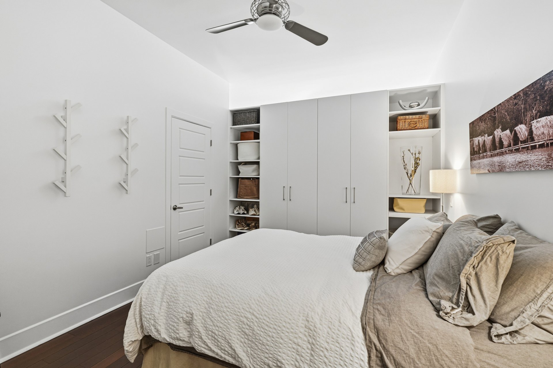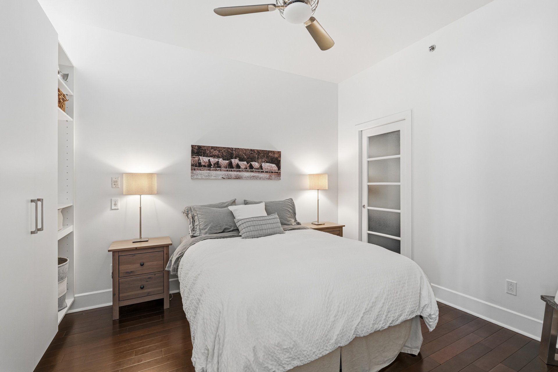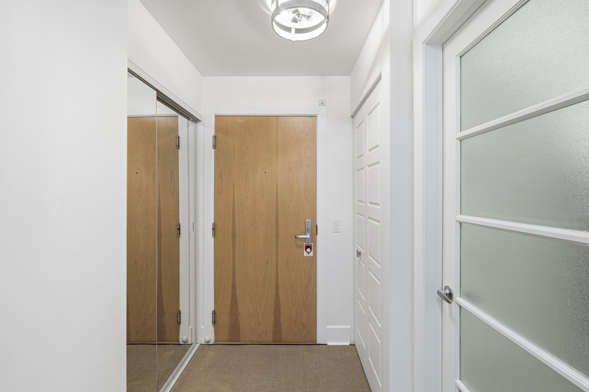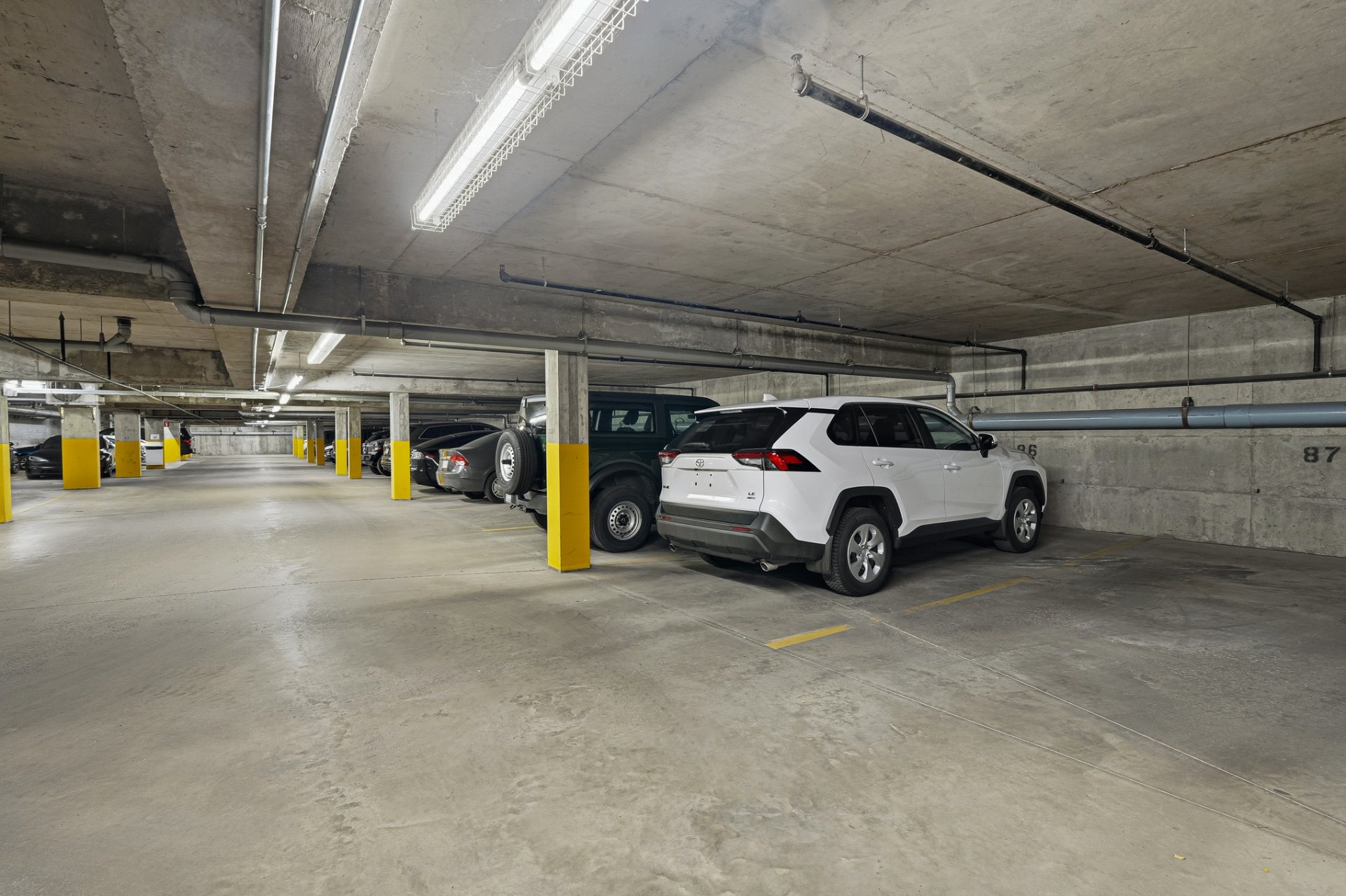 Hauts plafonds, insonorisation supérieur, beaucoup de rangement ajouté au condo. Bel espace ouvert, chambre (sans fenêtre) séparée par une bibliothèque faite sur mesure. Accès direct au Canal Lachine par la terrasse. Garage avec espace pour vélos et espace rangement sécurisé.