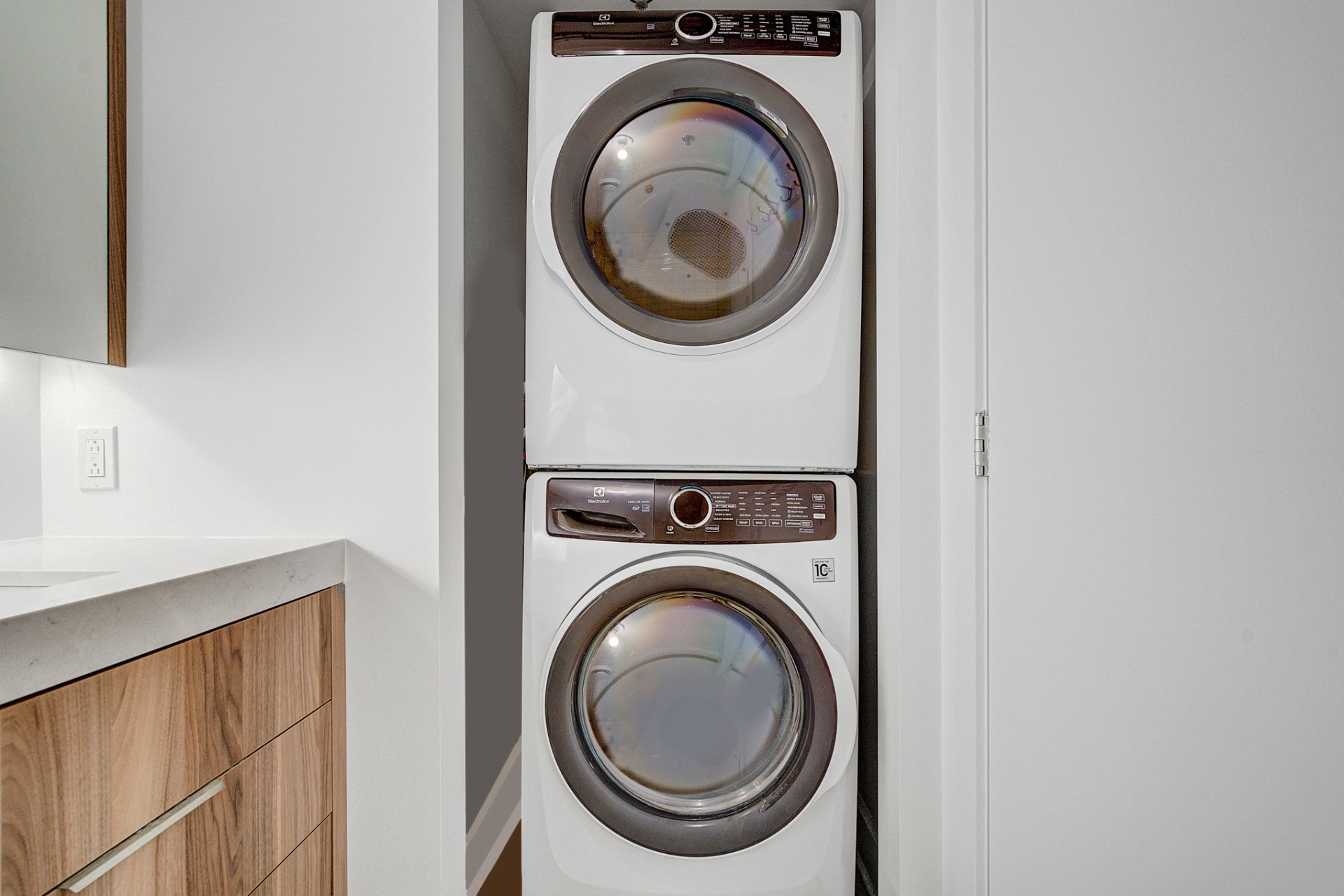 - Réfrigérateur, cuisinière, plaque de cuisson, lave-vaisselle, laveuse, sécheuse, rideaux.