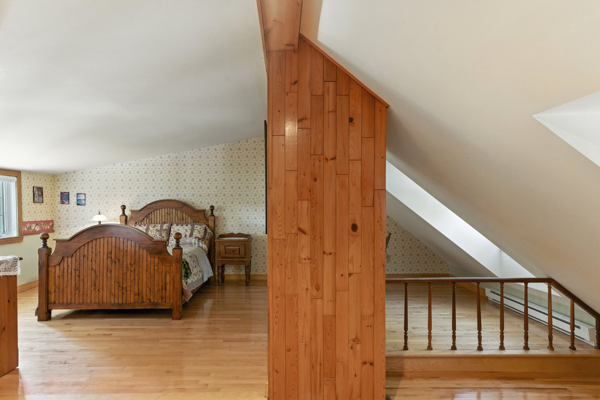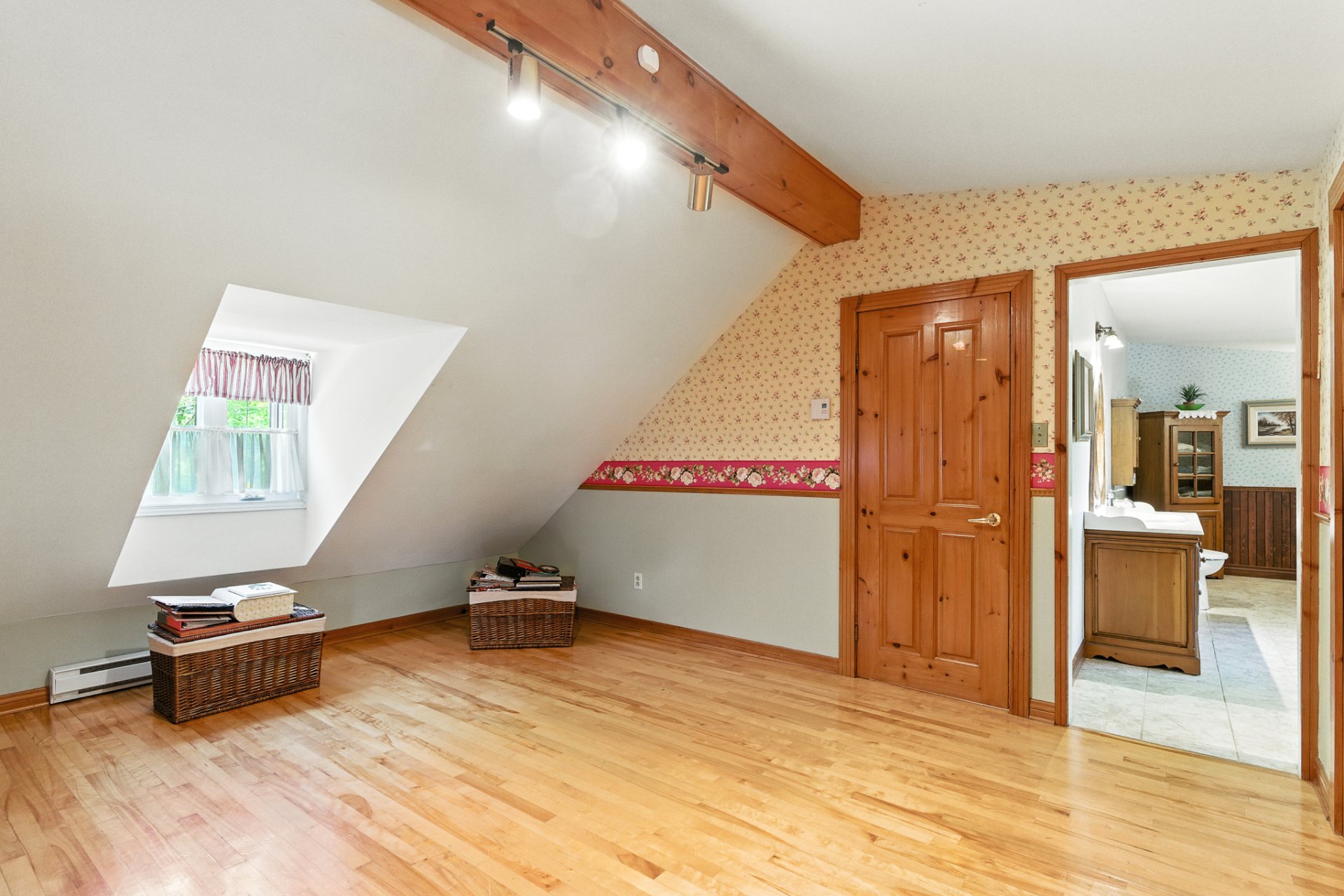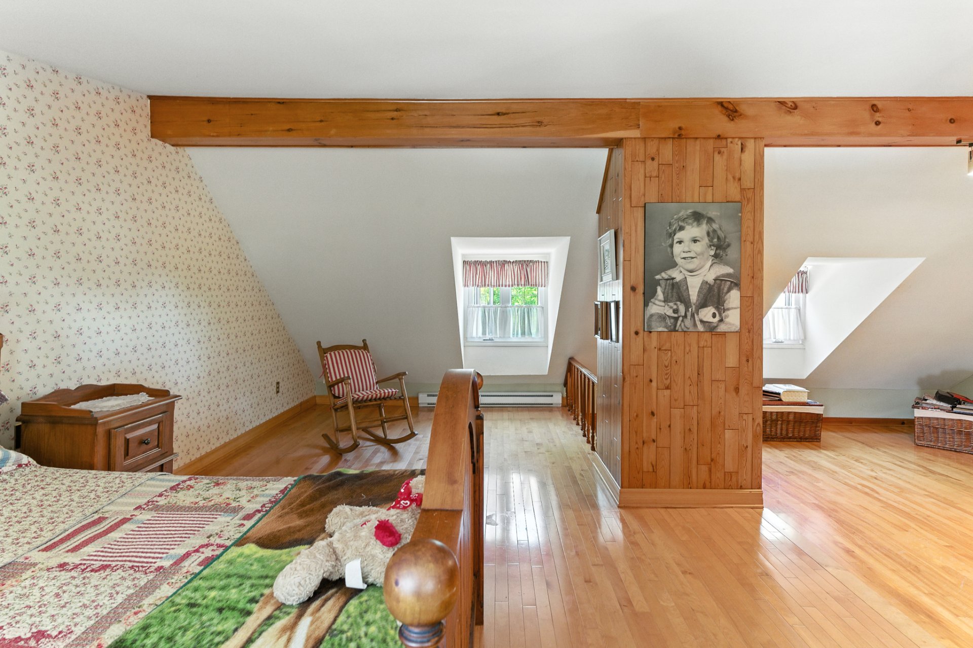 Étage : Une grande suite des maîtres avec deux vastes garde-robes, une salle de bain complète et une mezzanine polyvalente pouvant être aménagée en chambre additionnelle ou en espace de travail.