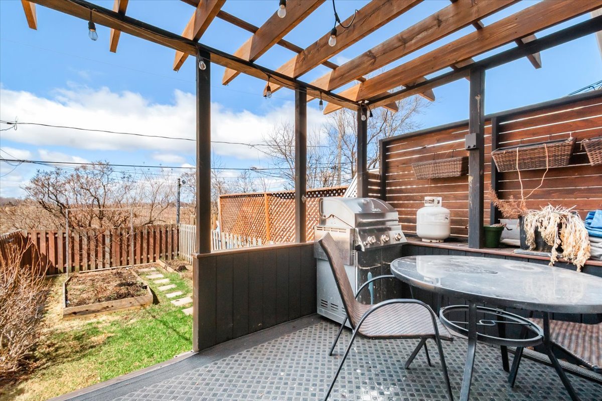 À l'extérieur, profitez d'une cour arrière intime avec terrasse et espace jardin, sans voisin à l'arrière, offrant tranquillité et une vue agréable. Deux espaces de stationnement complètent le tout. Propriété détenue en copropriété divise de 4 unités.