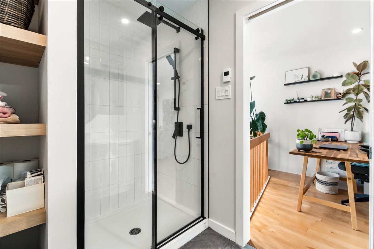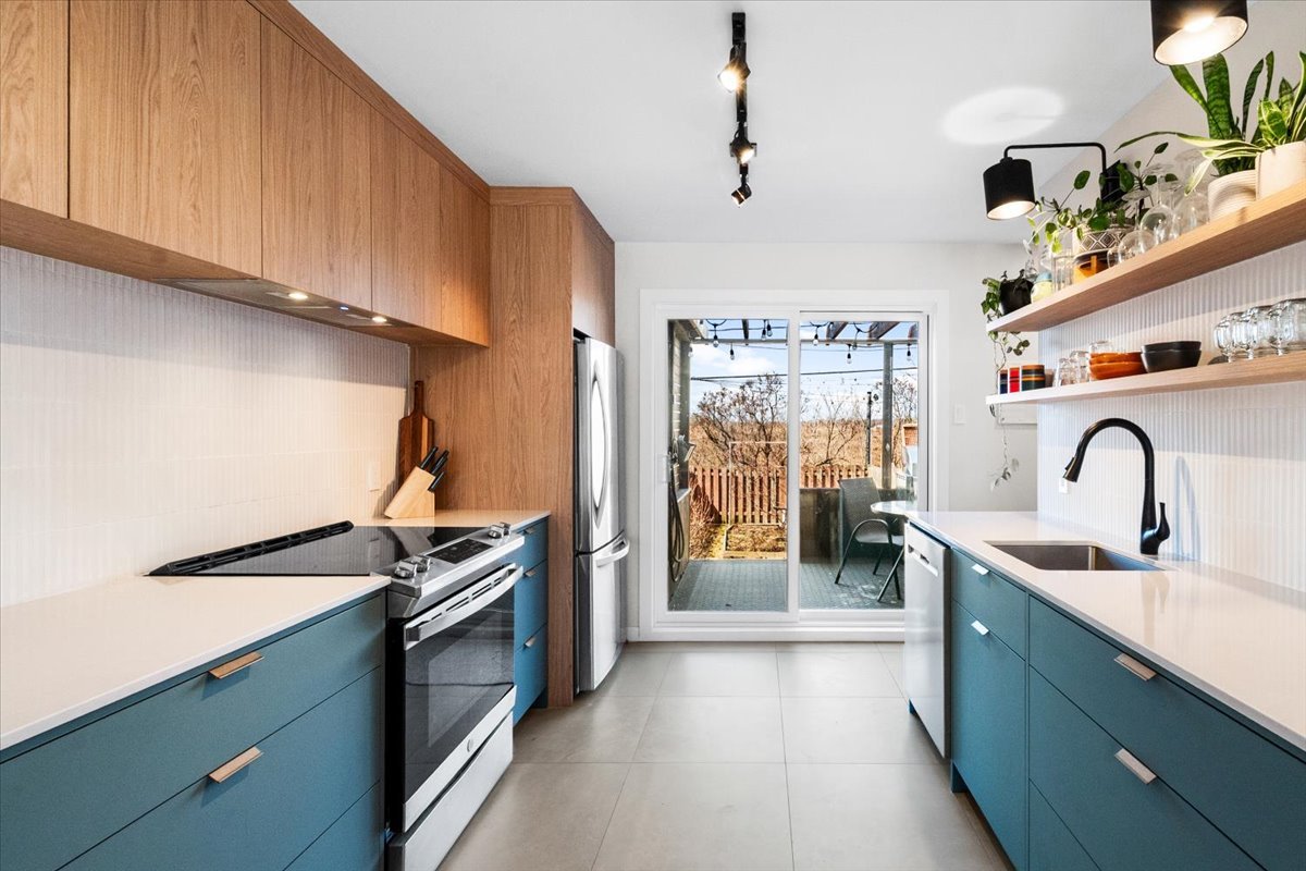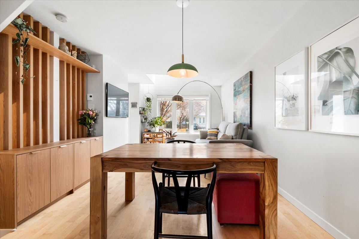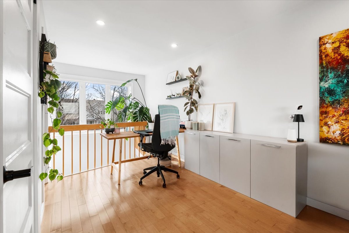 Maison de ville étagée au design soigné, où chaque détail a été pensé. Aire de vie ouverte baignée de lumière naturelle, mise en valeur par un escalier ouvert avec cloison architecturale en bois au style épuré. Cuisine moderne et fonctionnelle avec armoires deux tons, comptoir de quartz et généreux rangement, incluant un garde-manger pratique ainsi qu'une salle d'eau. À l'étage, spacieuse chambre à coucher lumineuse avec vue dégagée, espace polyvalent aménagé en bureau et une salle de bain complète. Sous-sol aménagé avec une deuxième chambre. Cour intime sans voisin à l'arrière. Située dans un secteur calme à proximité de tous les services.
