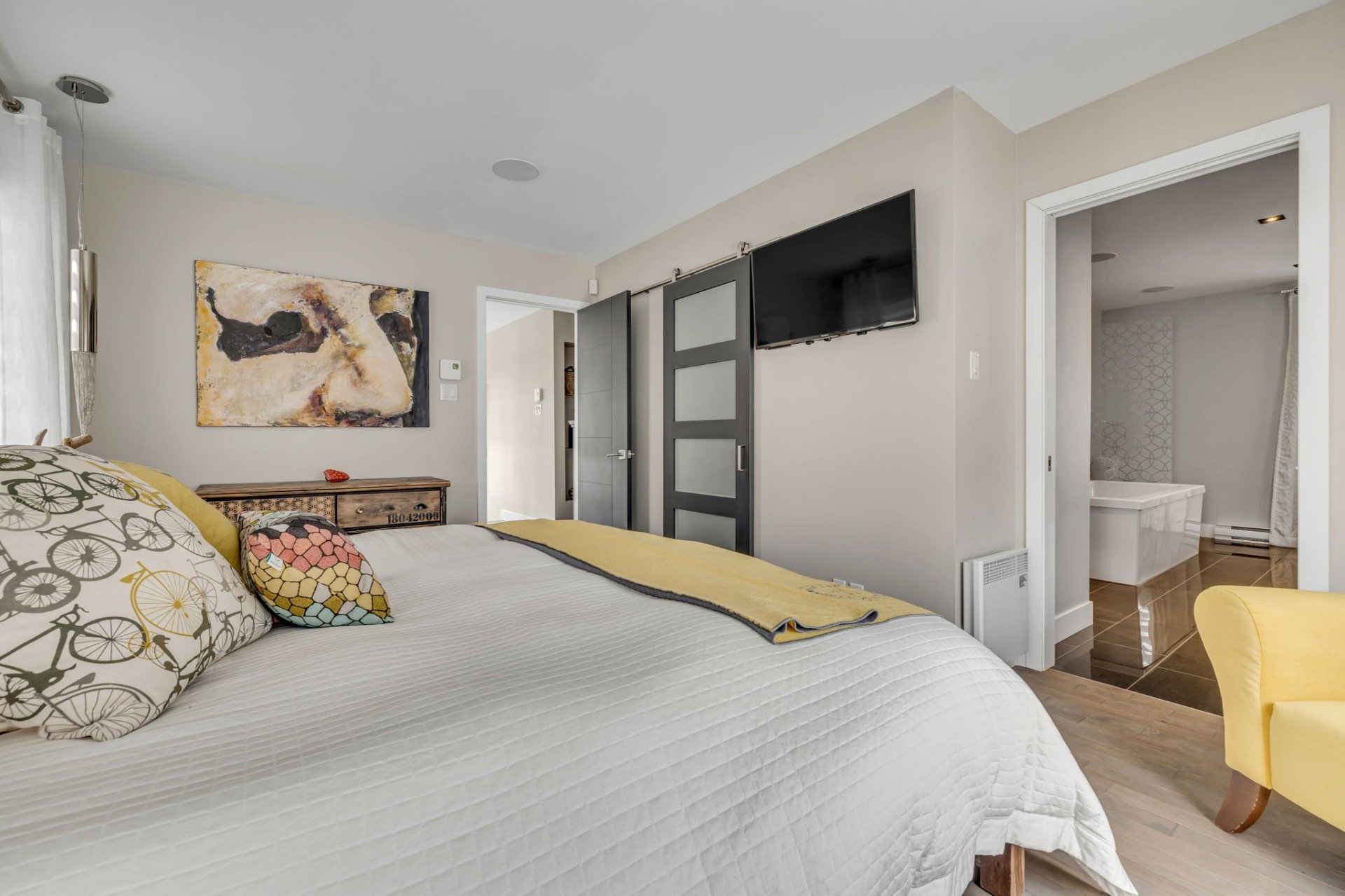 À l'étage, trois chambres à coucher, chacune dotée de son walk-in, offrent un niveau de confort rare et recherché. La suite principale se distingue par ses volumes généreux et sa salle de bains attenante, créant un espace intime propice au repos.