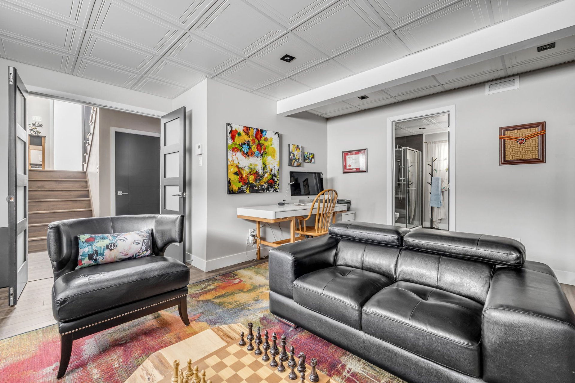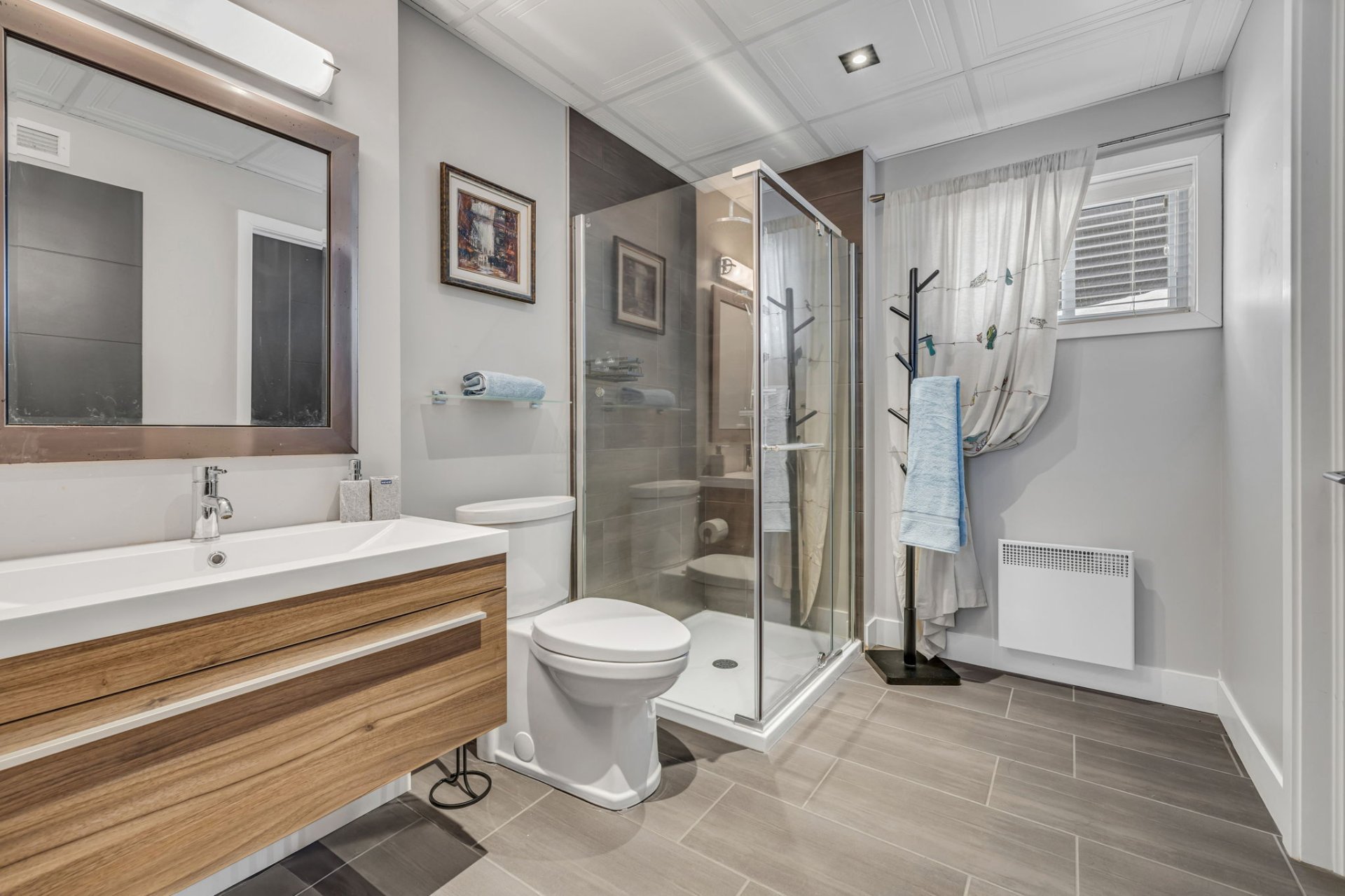Le sous-sol entièrement aménagé prolonge les possibilités avec une vaste salle familiale polyvalente, idéale pour un cinéma maison, un espace de jeux ou un lieu de détente, ainsi qu'une salle de bains supplémentaire.