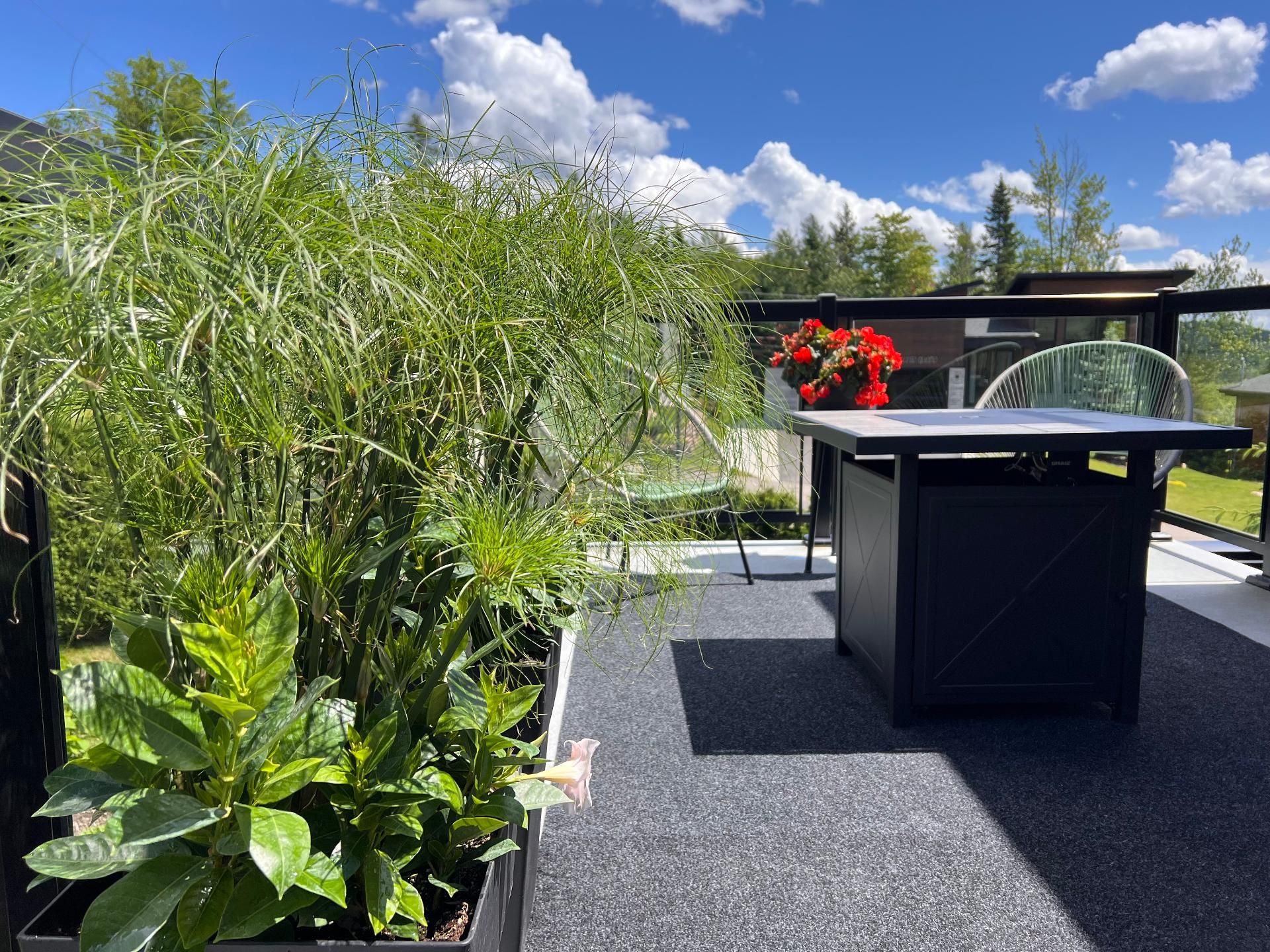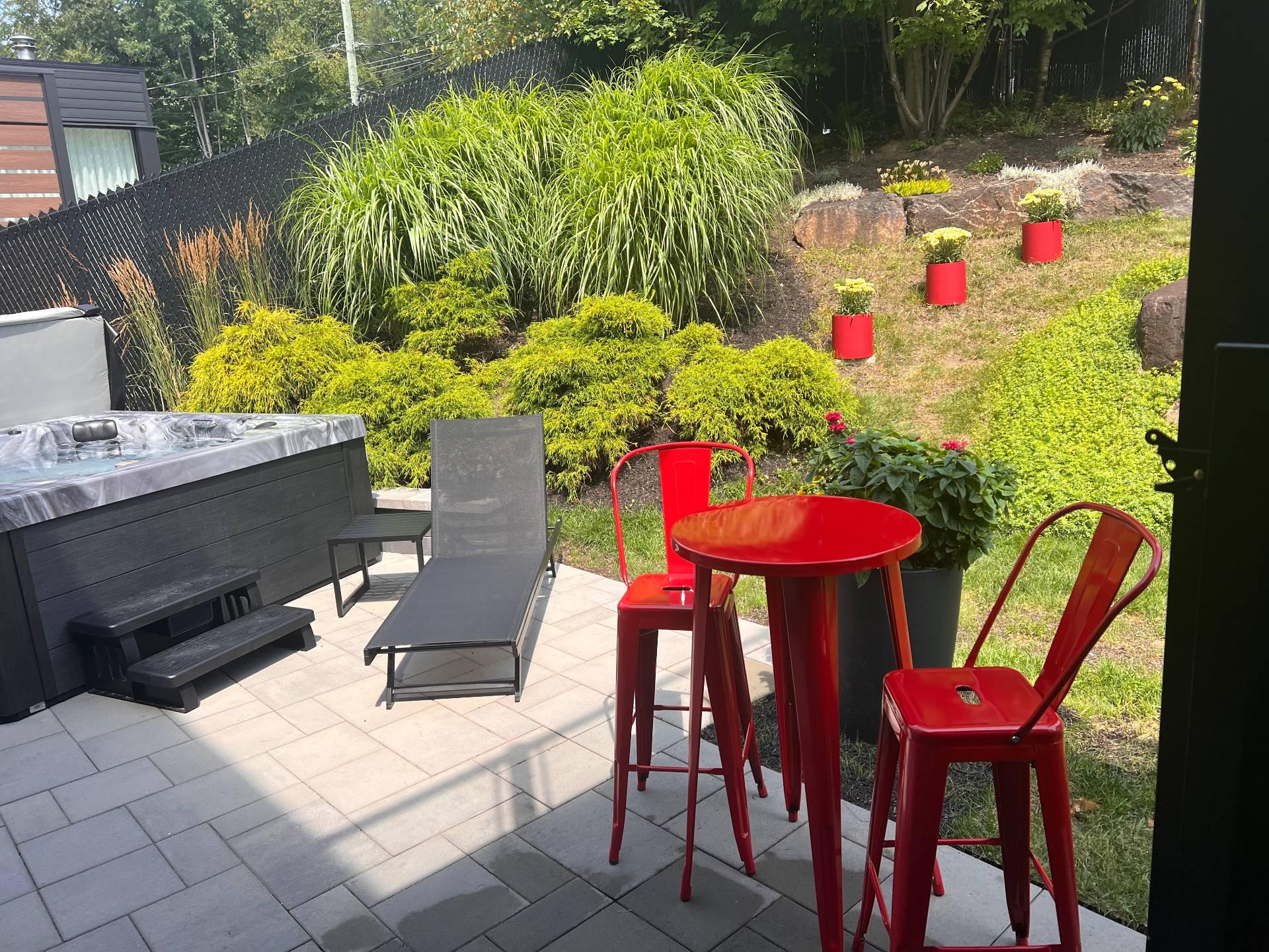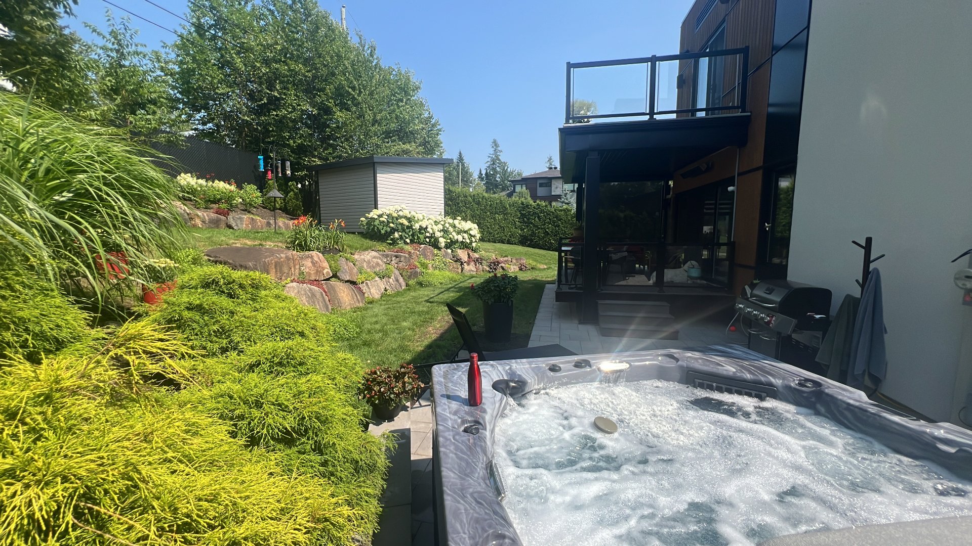 À l'extérieur, le terrain soigneusement aménagé d'environ 8 000 pi² propose un cadre de vie harmonieux et intime. La terrasse couverte et chauffée devient un véritable prolongement de la maison, permettant de profiter de chaque saison, tandis que le balcon accessible depuis la chambre principale offre un point de vue privilégié pour savourer la quiétude du secteur.