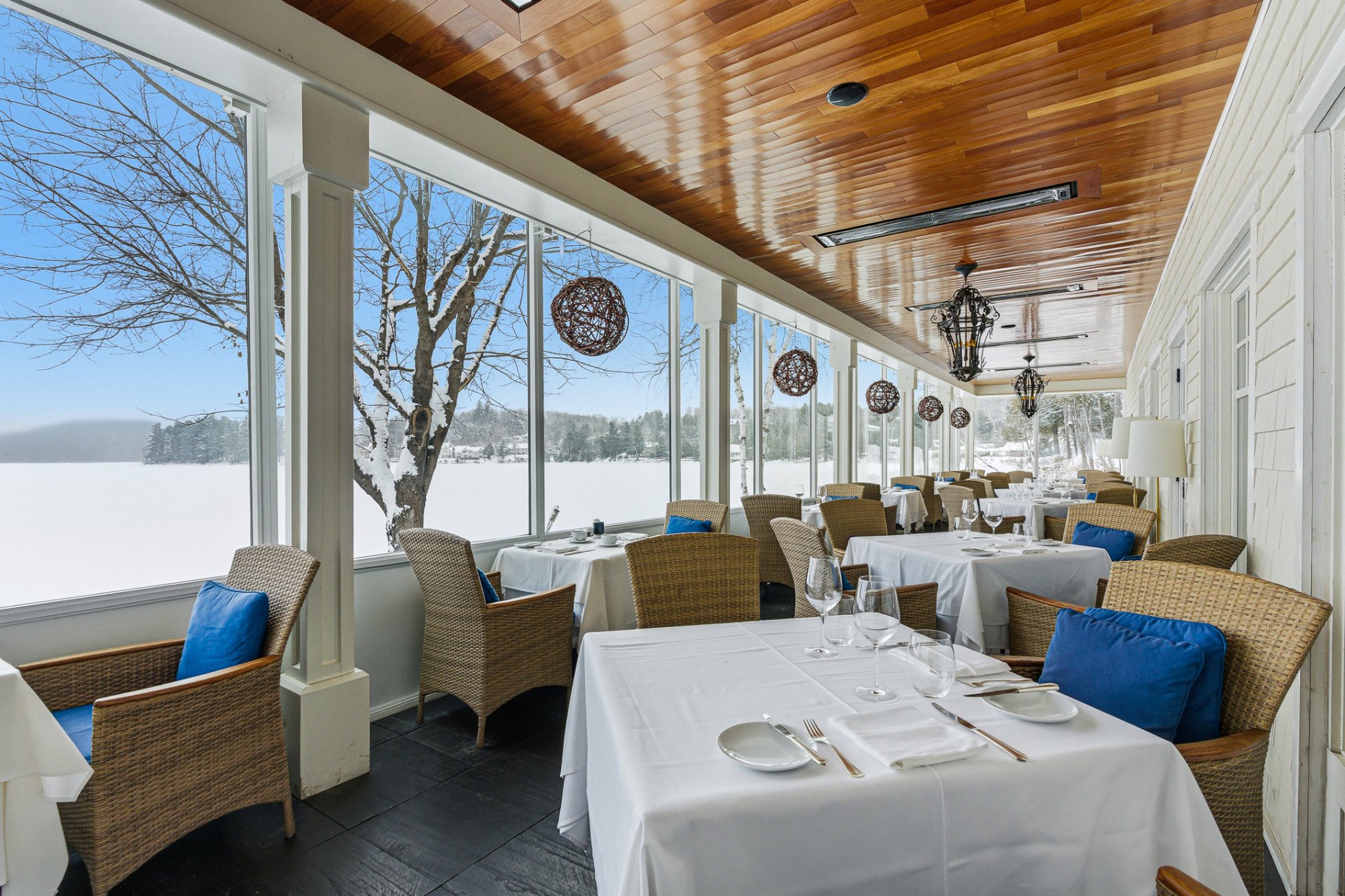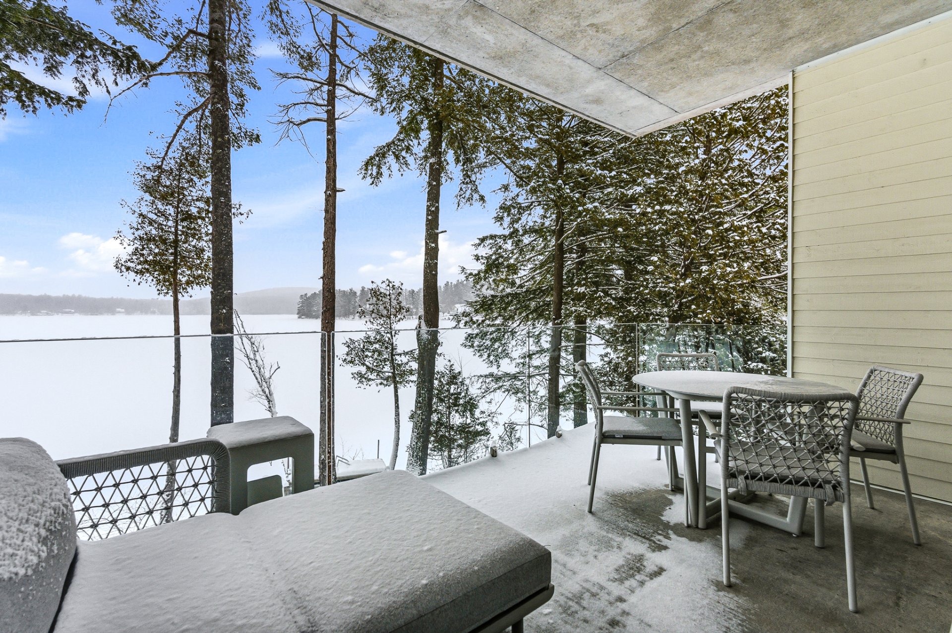 * Terrasse couverte avec vue directe sur le lac Massawippi