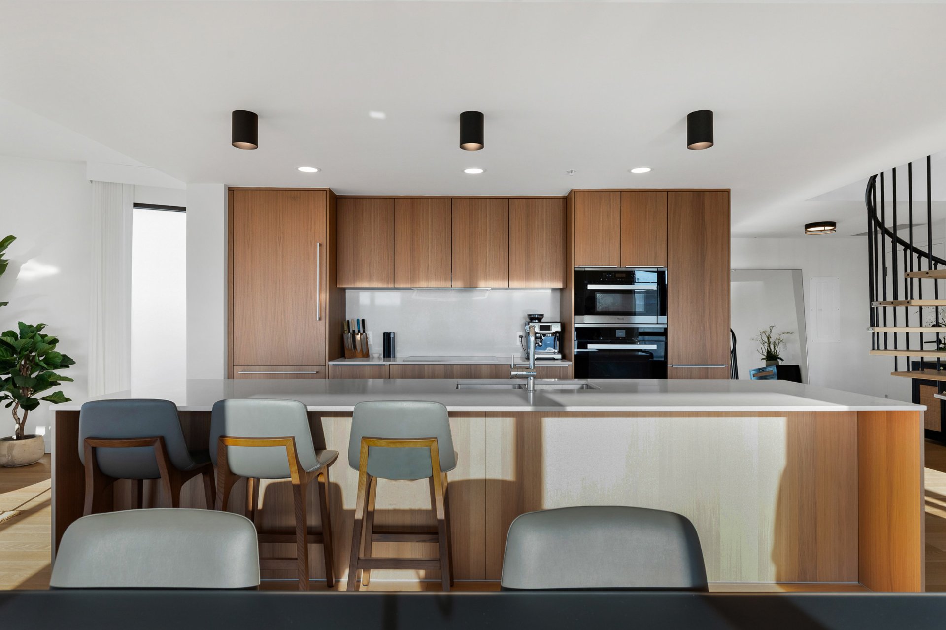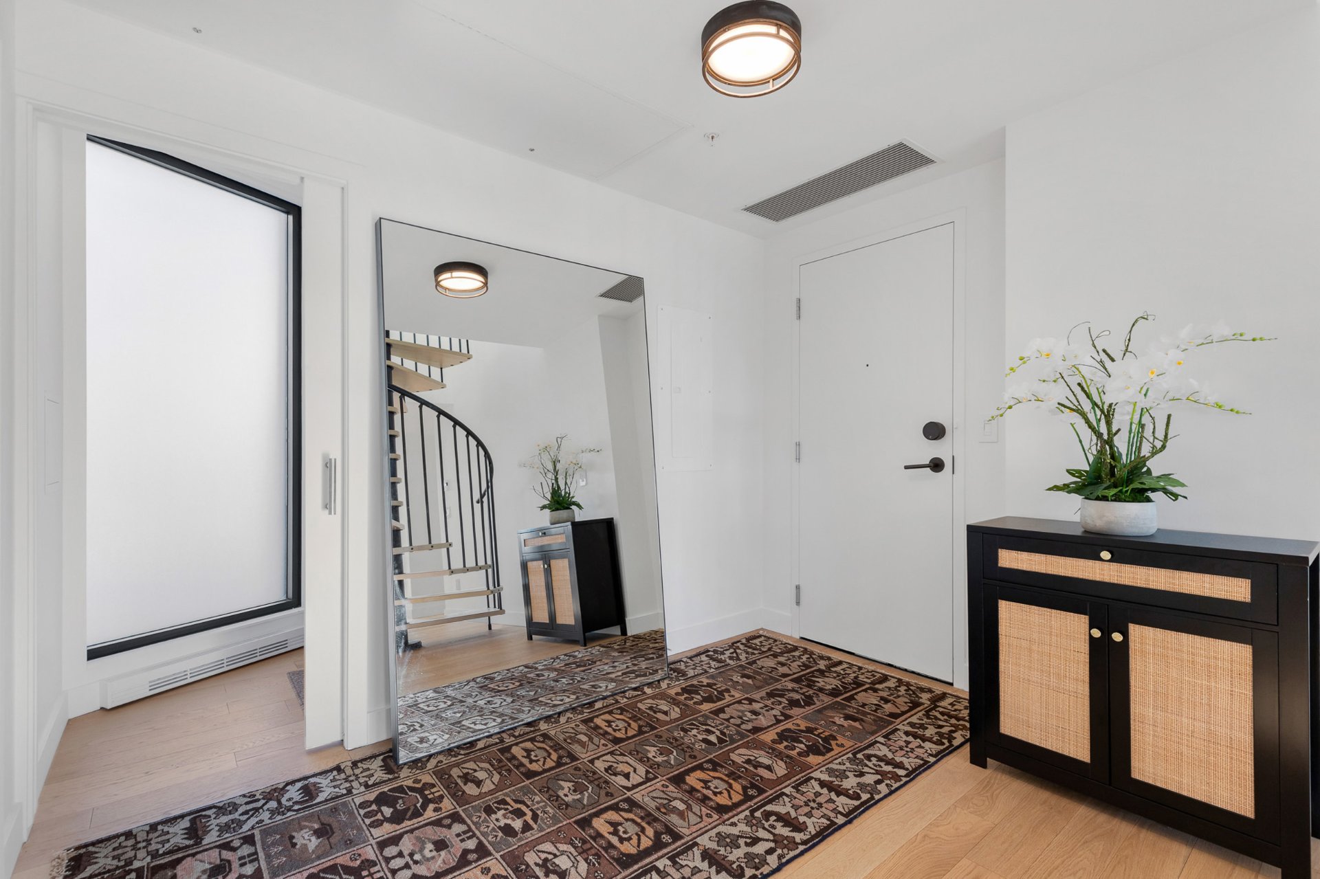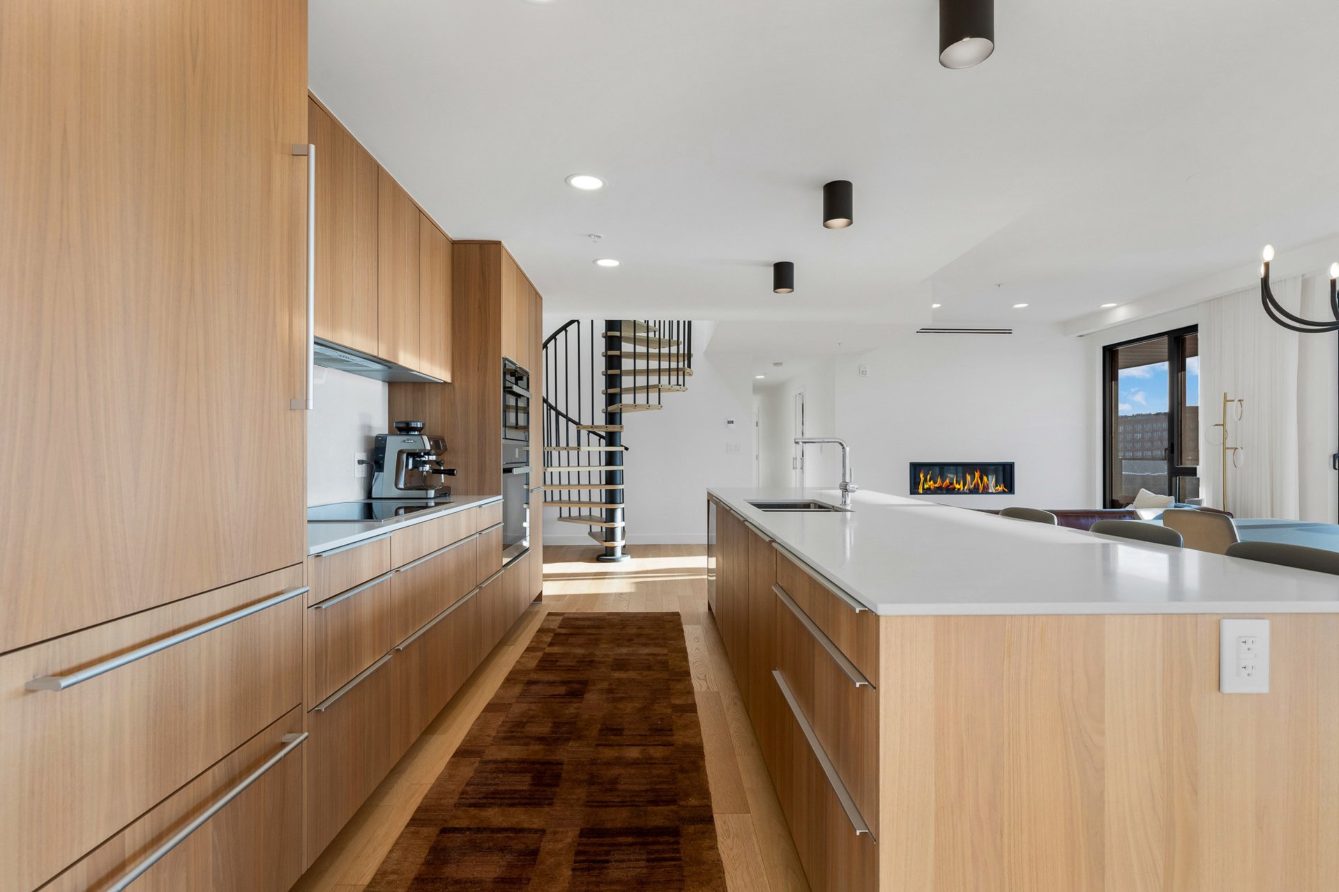 - Réfrigérateur, cave à vin, plaque à induction, four mural, four à micro-ondes, lave-vaisselle, lave-linge, sèche-linge, barbecue, rideaux, stores, tous les luminaires, enceintes SONOS encastrées au plafond avec amplificateur, détecteurs de fuites d'eau.