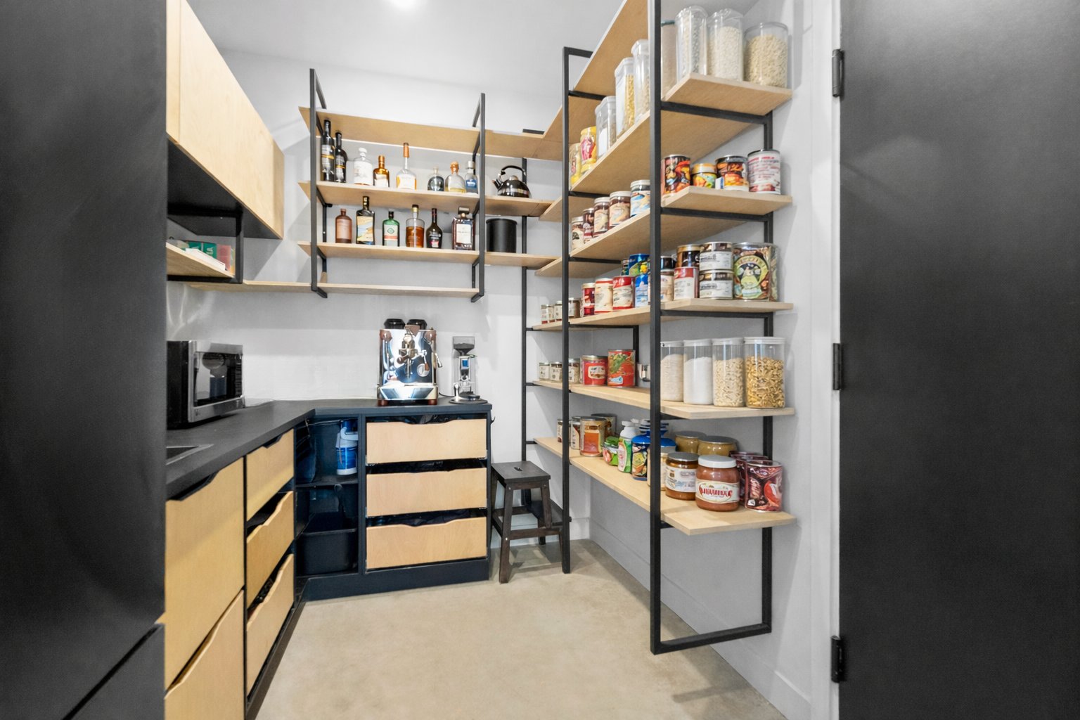 La cuisine, pensée pour recevoir, est appuyée par une arrière-cuisine (back kitchen) fonctionnelle comprenant un évier, un 2e réfrigérateur, un garde-manger et un coin café. Un cellier vitré et tempéré pouvant accueillir plus de 100 bouteilles complète parfaitement l'aire de réception.