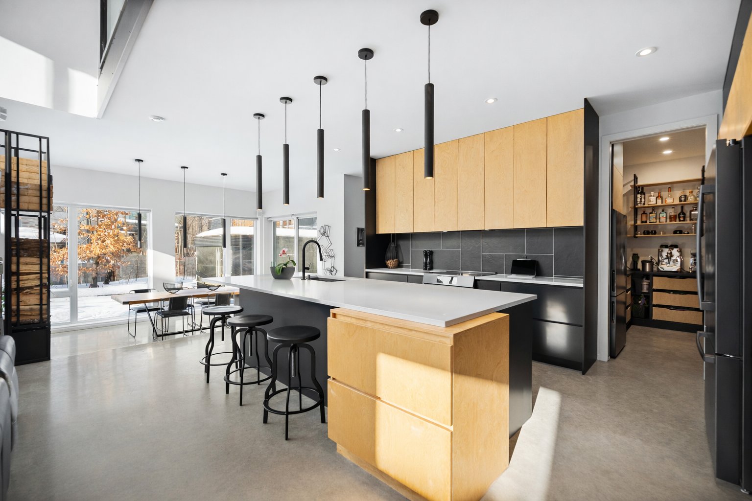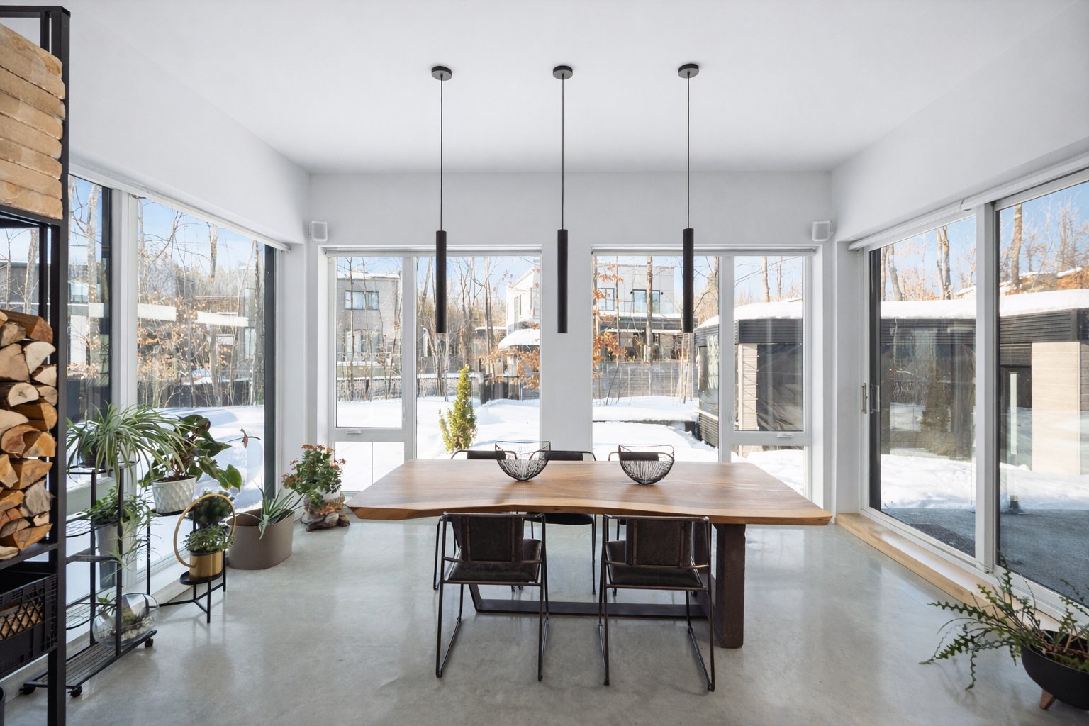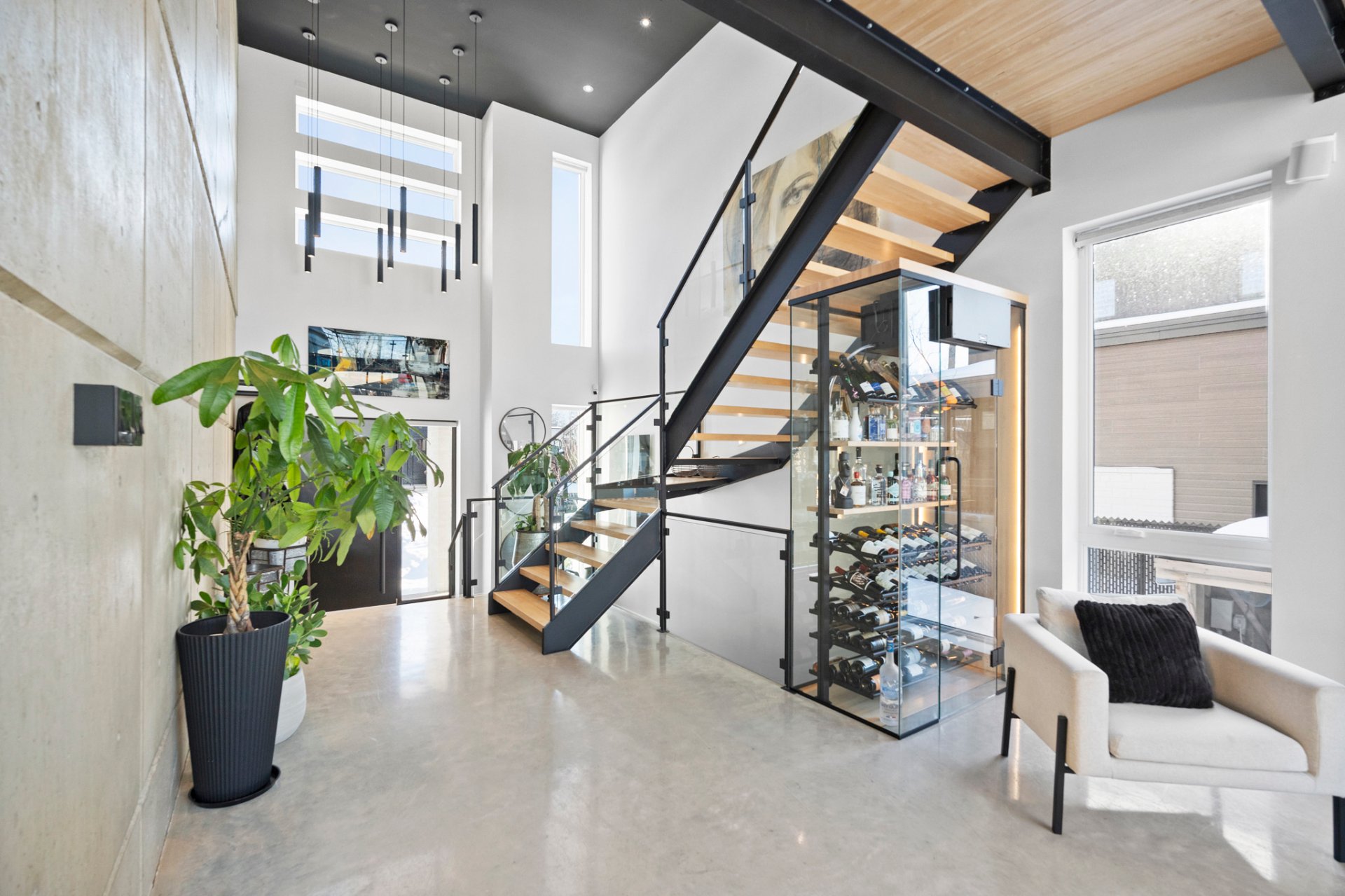 Les planchers de béton poli chauffants s'étendent sur les trois niveaux, offrant un confort absolu. La fenestration généreuse et les volumes dégagés procurent une luminosité incomparable à toute heure du jour.