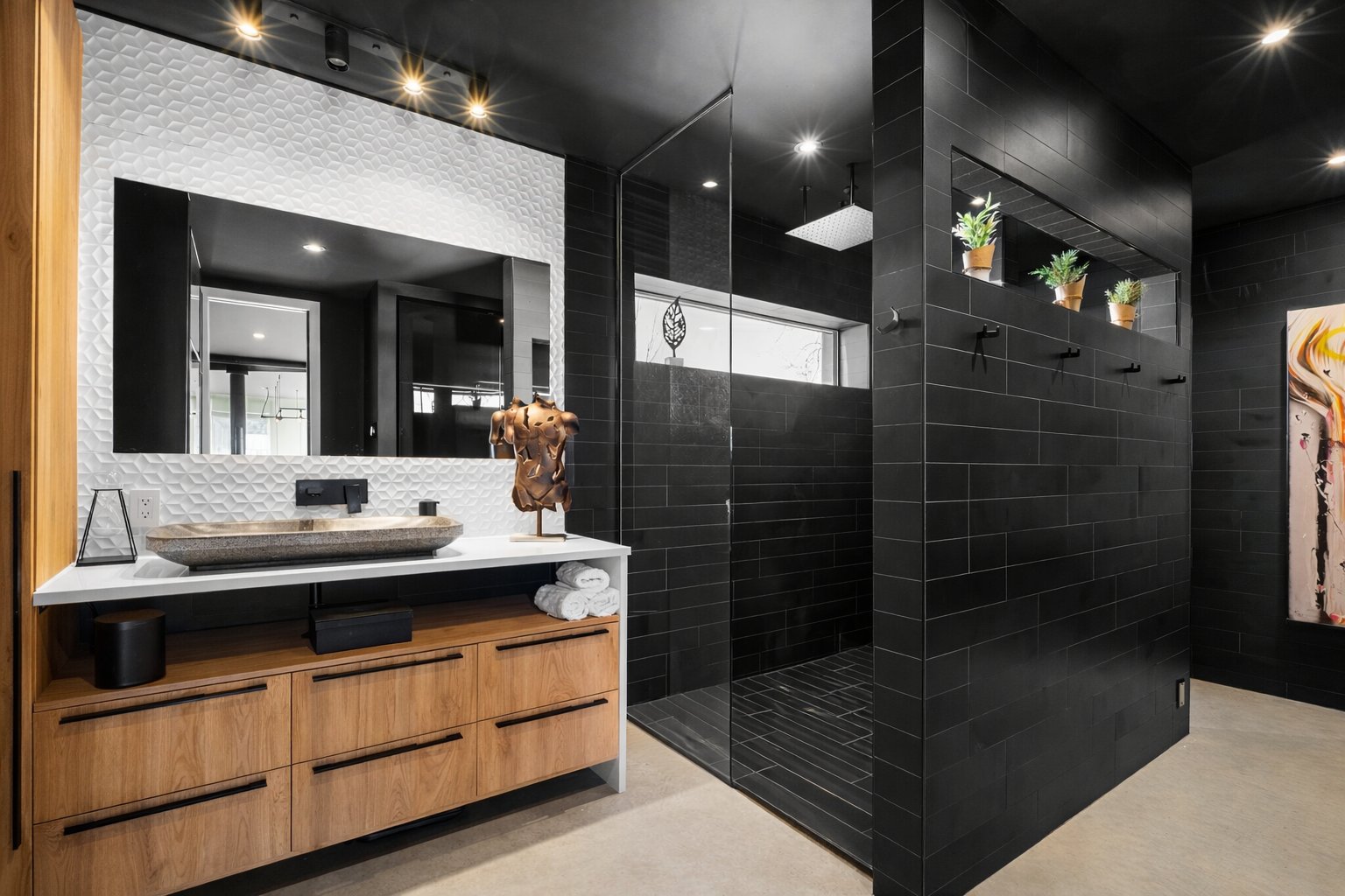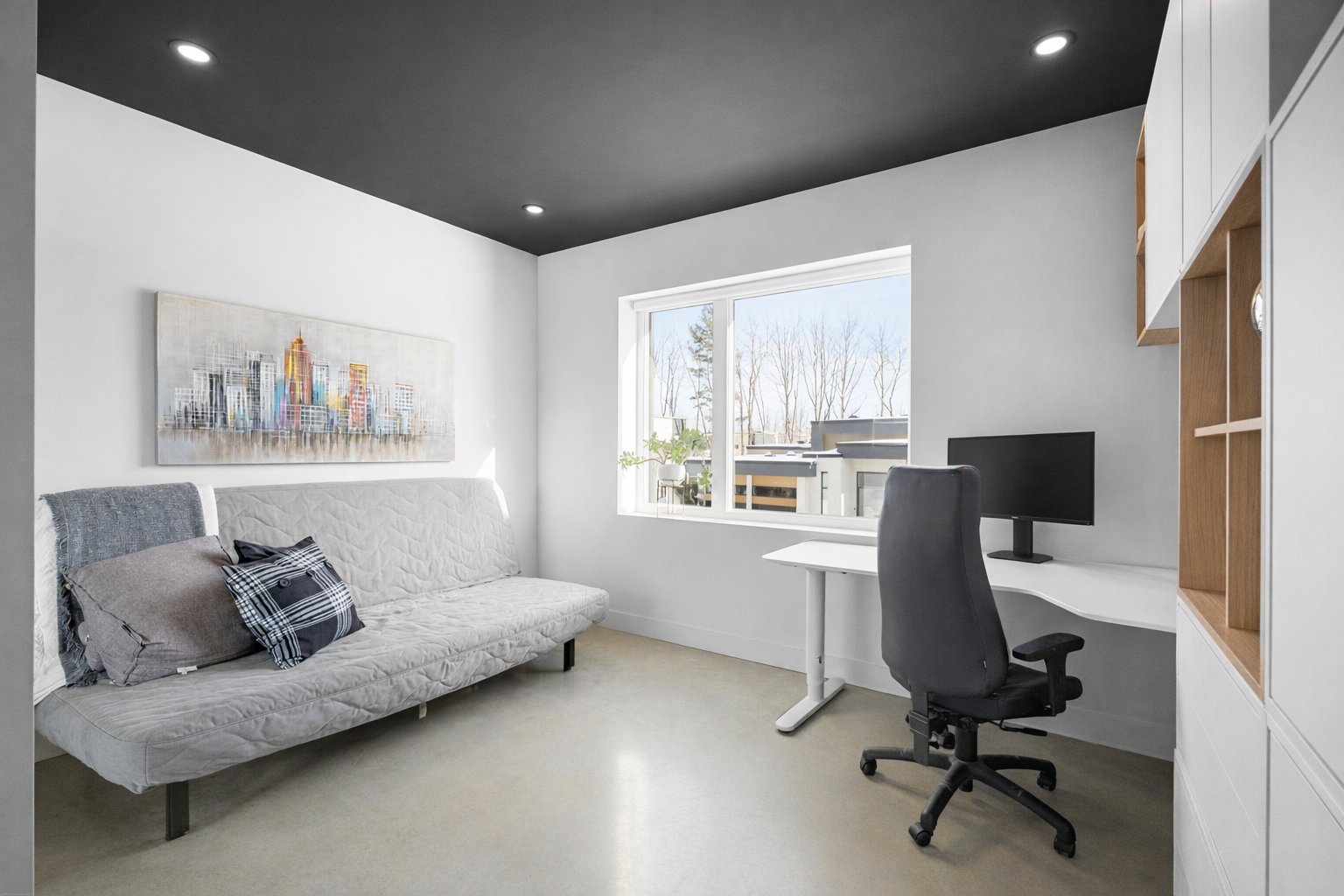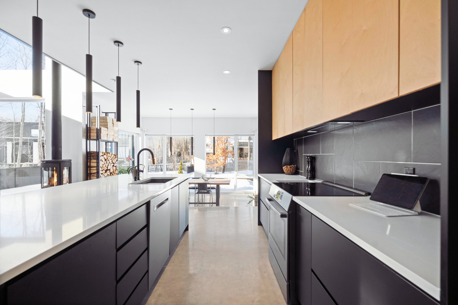 Les planchers de béton poli chauffants s'étendent sur les trois niveaux, offrant un confort absolu. La fenestration généreuse et les volumes dégagés procurent une luminosité incomparable à toute heure du jour.