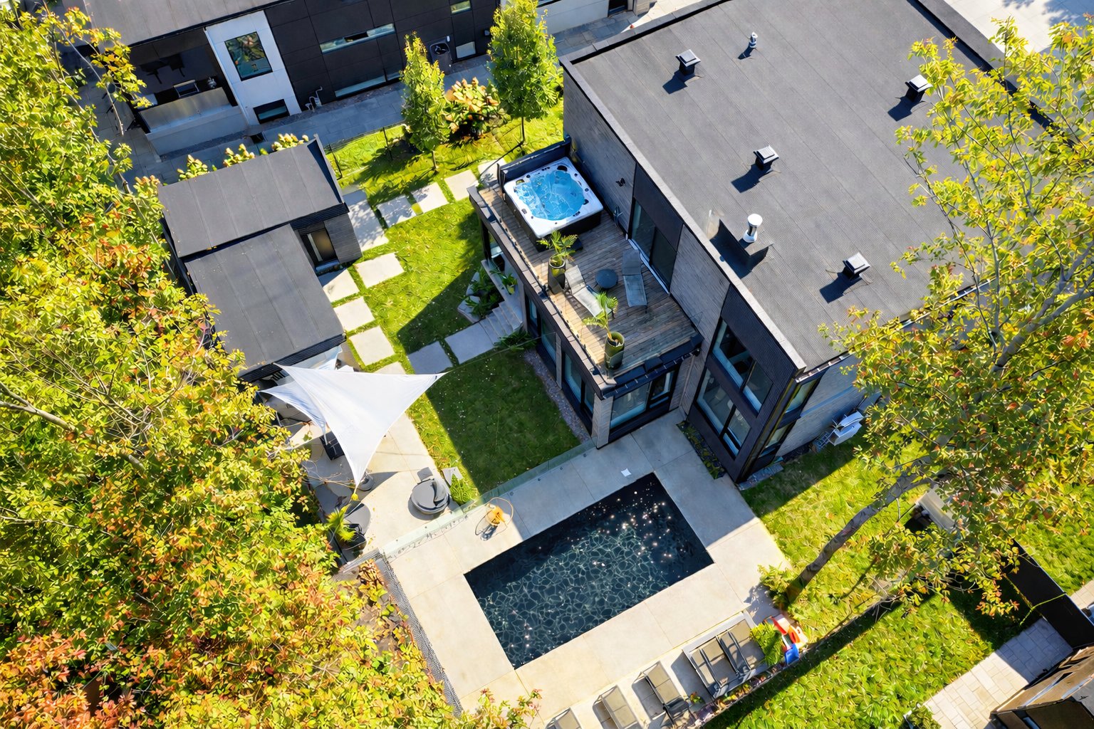 À l'extérieur, terrain rare de plus de 9 500 pi² offrant un dégagement arrière remarquable et un écran d'intimité naturel grâce aux arbres matures. Piscine creusée 10 x 24 chauffée et au sel, vaste espace détente, terrasse avec spa, véranda style "poolhouse", deuxième garage ou espace de rangement, accès latéral idéal pour remorque ou véhicule récréatif, système d'arrosage automatique et garde-corps de verre aux terrasses et à la piscine.