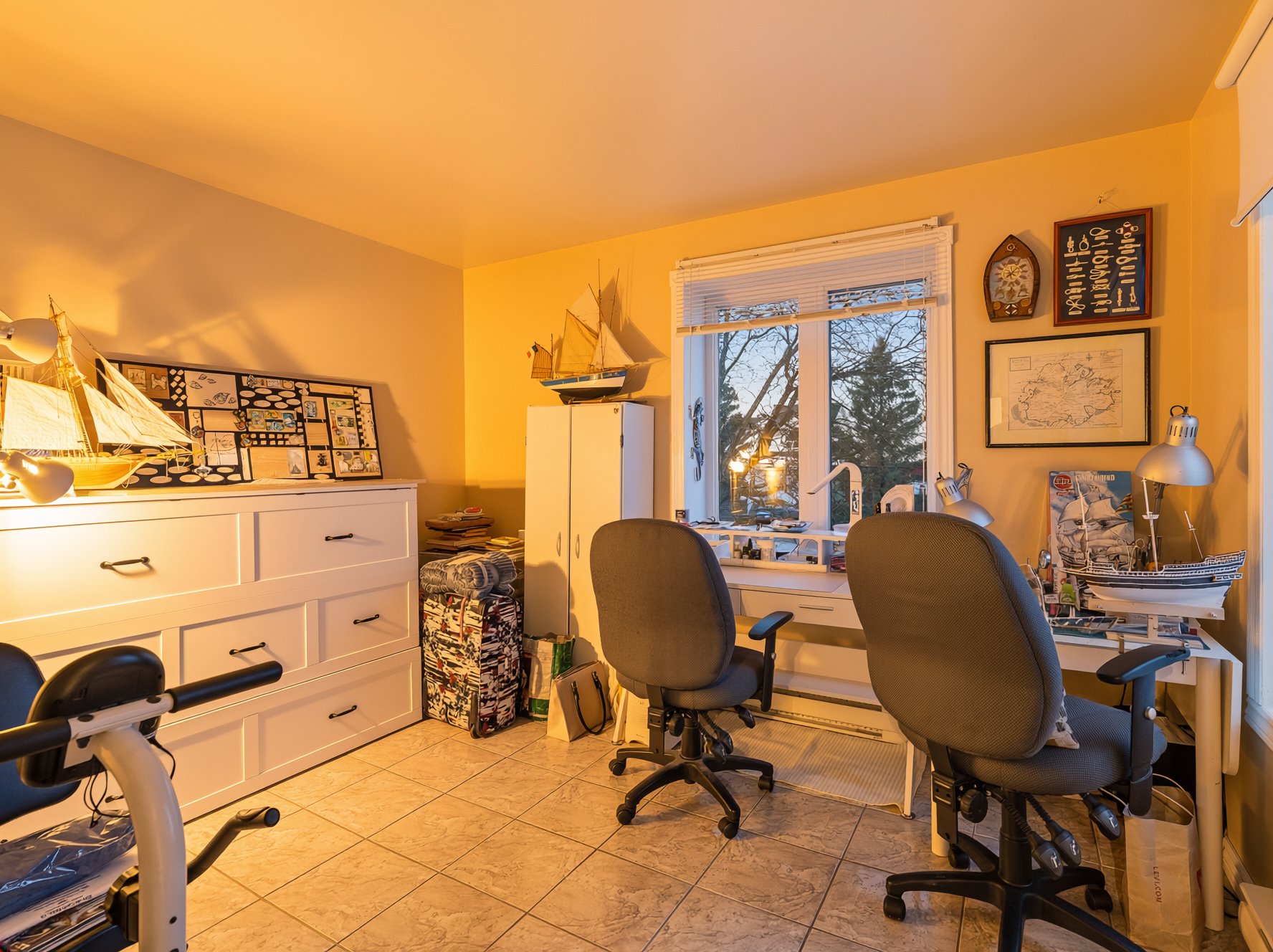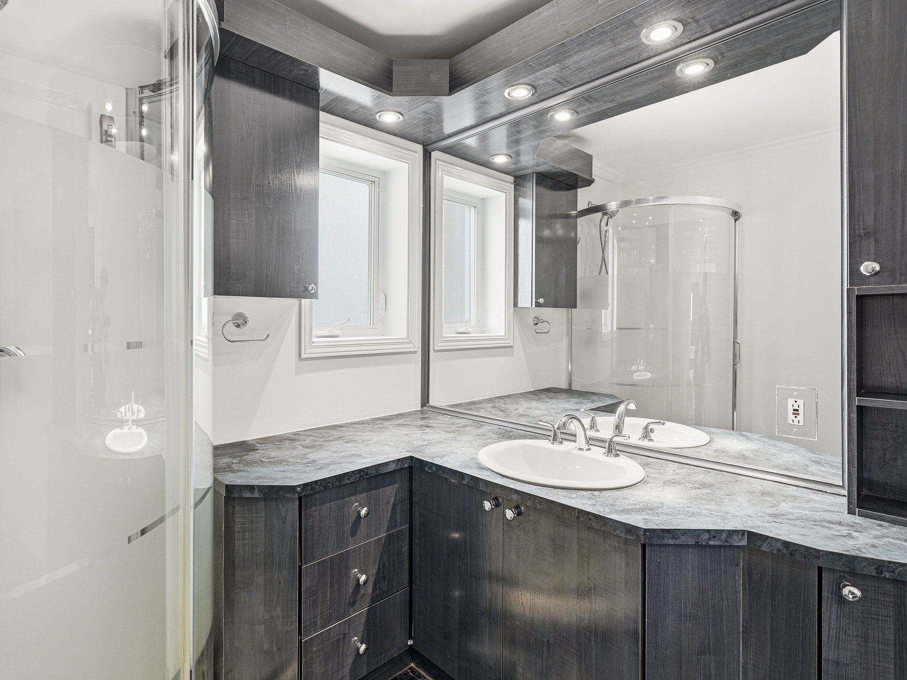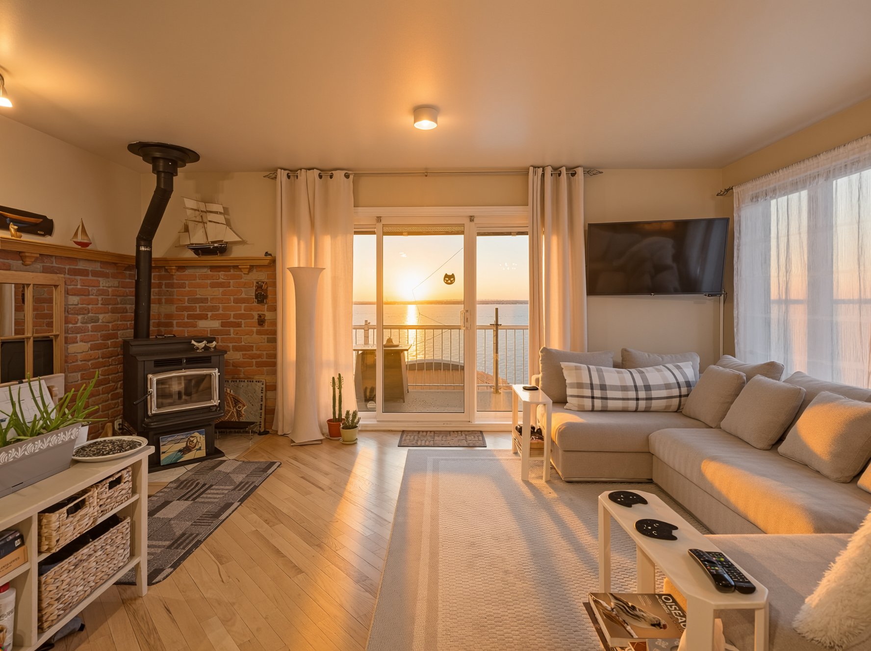 La maison principale accueille ses occupants avec une luminosité remarquable et des vues panoramiques dès l'entrée. Trois chambres, un sous-sol entièrement fini avec grande salle familiale, espace supplémentaire pour chambre ou bureau, deux foyers à combustion lente et une vaste terrasse en béton offrent un cadre de vie chaleureux et intemporel. Les deux garages ajoutent une fonctionnalité rare, permettant d'abriter voitures, bateau et rangement généreux.