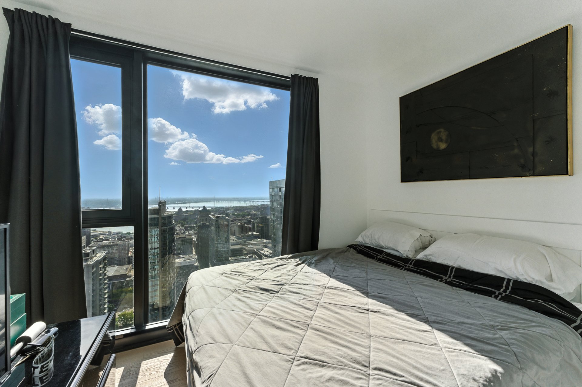 Superbe unité de coin située au 46e étage du prestigieux Maestria. Condo d'une chambre offrant une belle vue sur le fleuve. Les aires communes inclus une piscine intérieur et extérieur , un simulateur de golf, une salle de sport entièrement équipée et un Sky-bridge exclusif offrant une vue imprenable sur la ville.