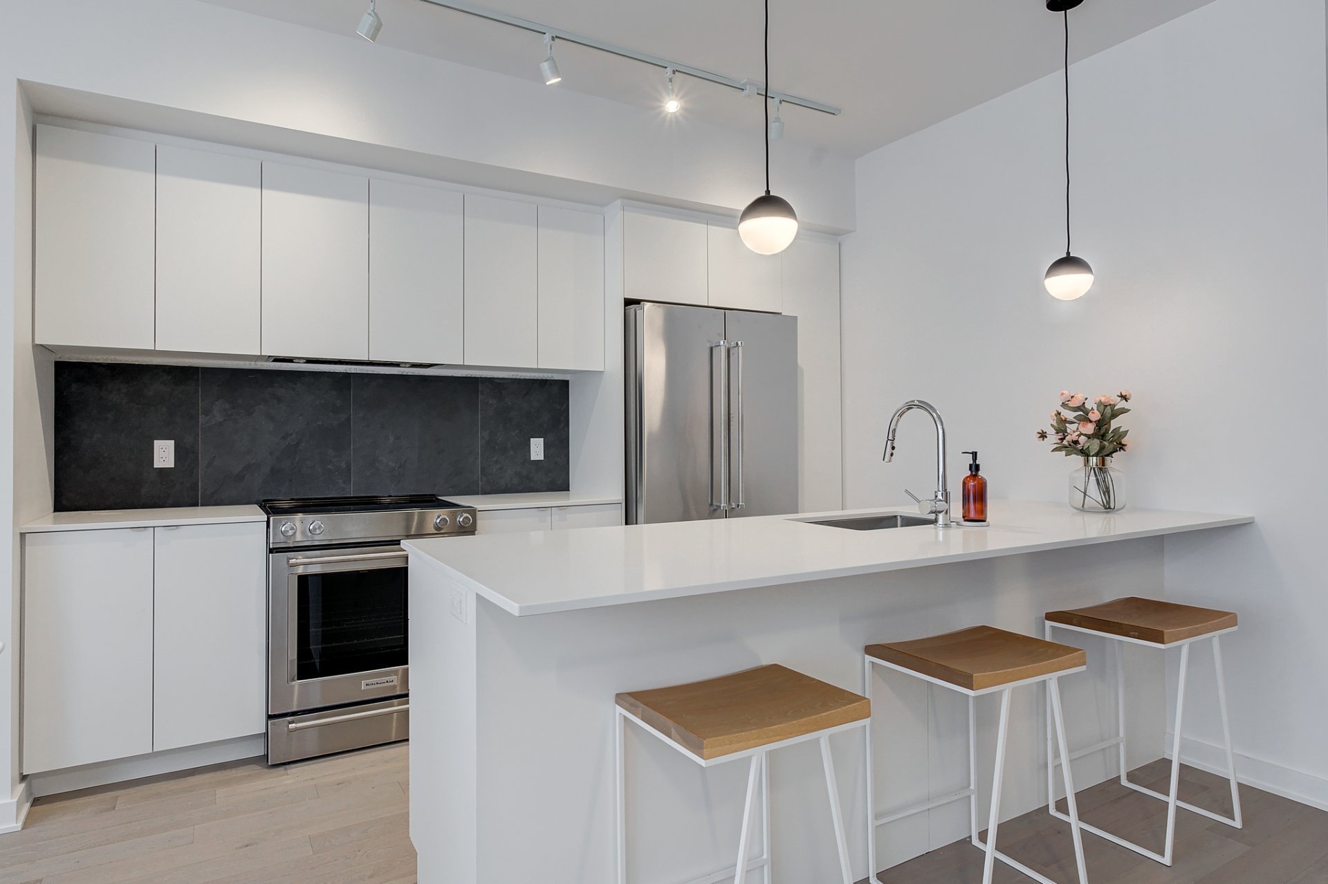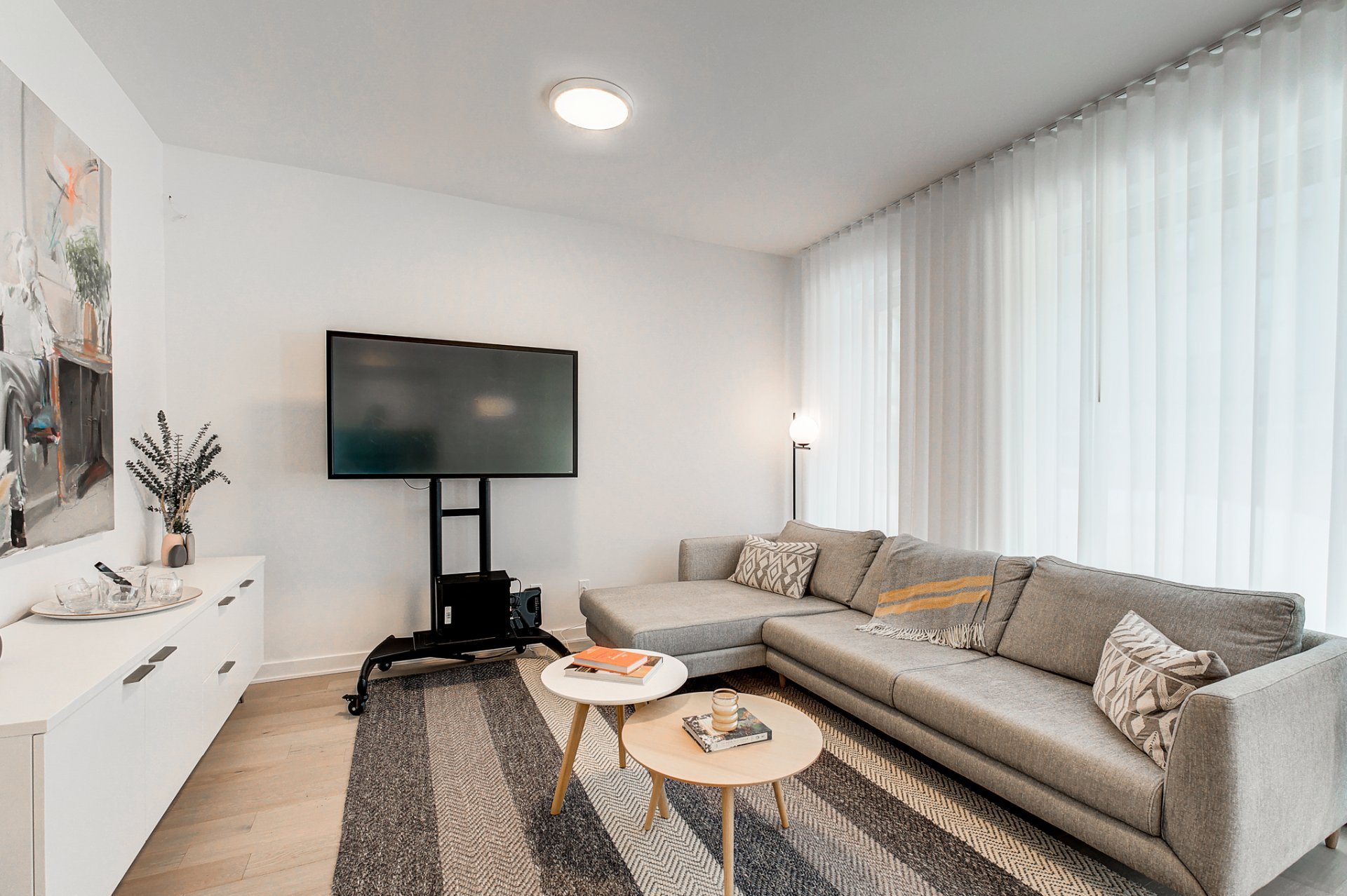 - Espace de vie généreusement fenestré, donnant une une immense terrasse privée de 349 pieds carrés