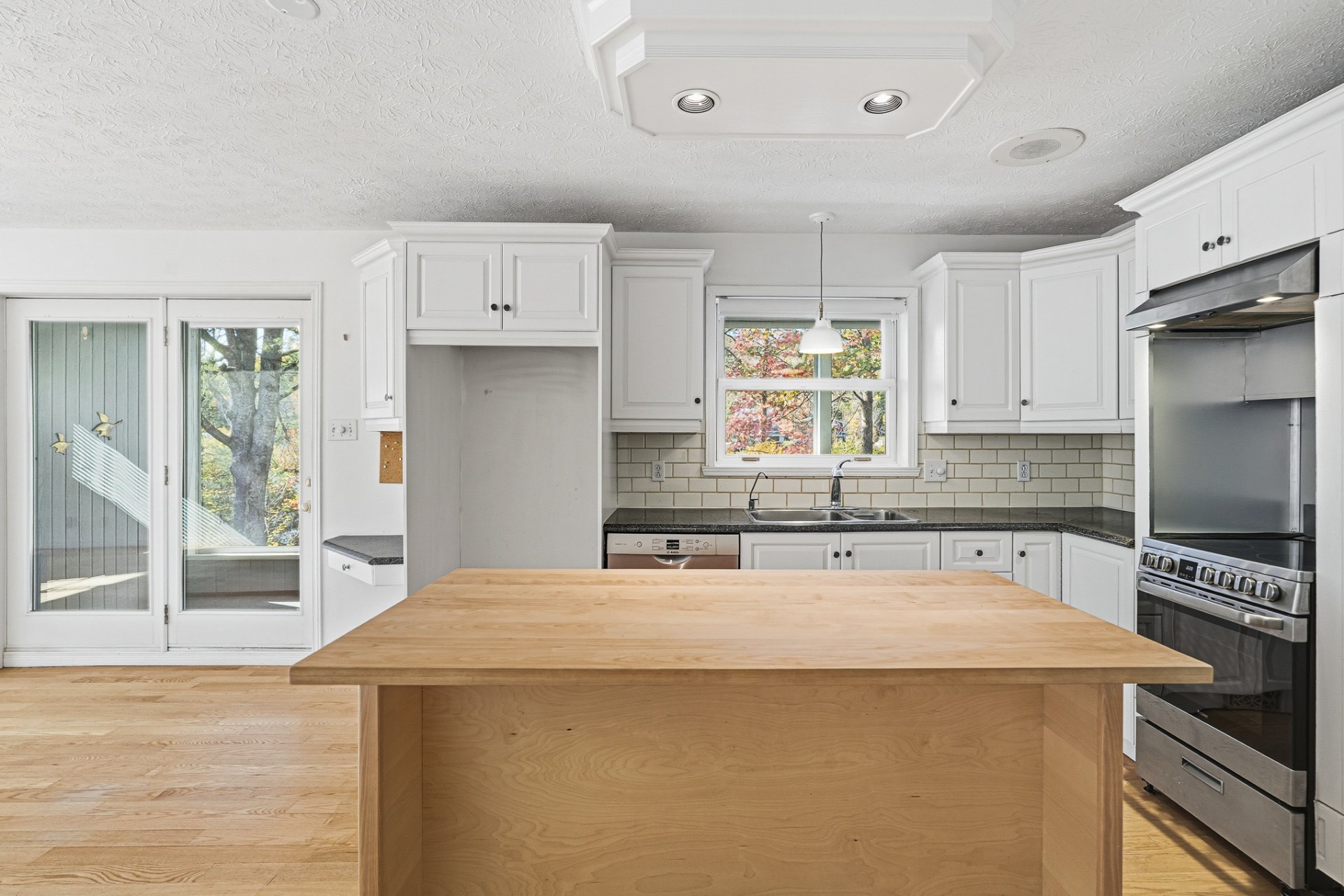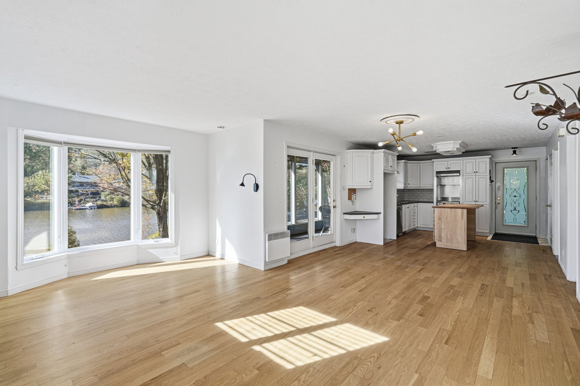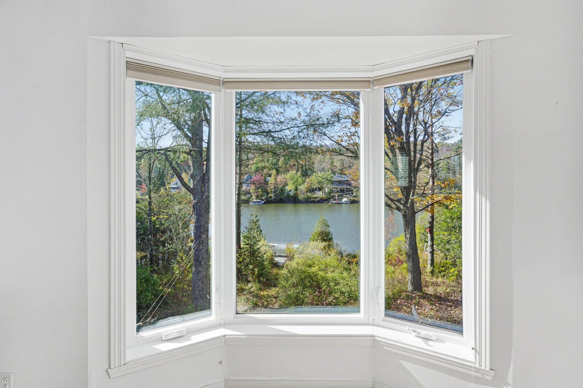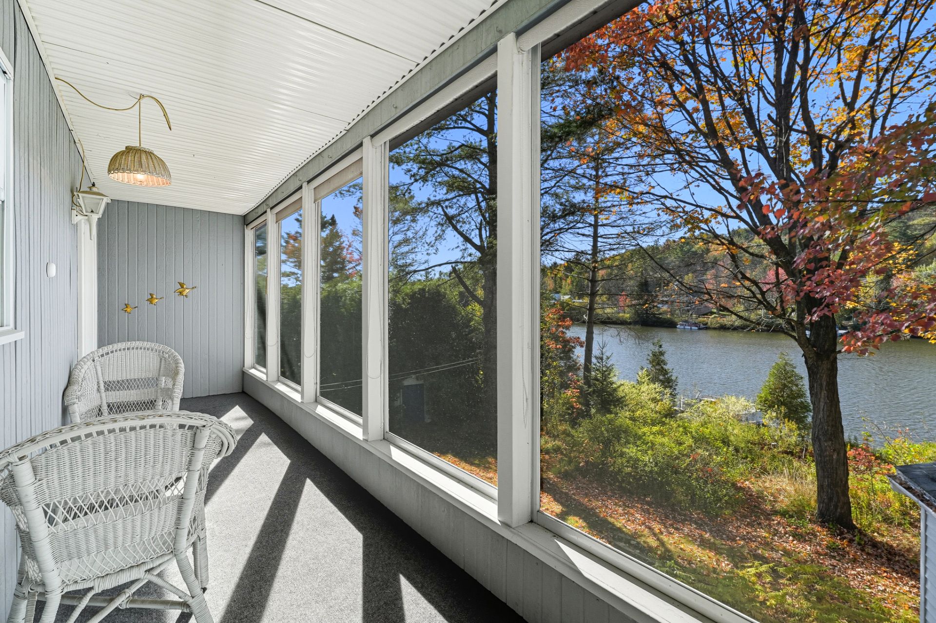 À l'intérieur, la maison propose une aire ouverte lumineuse conçue pour mettre en valeur la beauté du paysage environnant. La cuisine s'ouvre sur la salle à manger et le salon, créant un espace chaleureux et convivial, parfait pour les réunions familiales ou les soirées paisibles au bord de l'eau. De grandes fenêtres inondent l'intérieur de lumière naturelle tout en encadrant la vue sur le lac et la forêt. La véranda couverte permet de profiter de repas et de moments de détente à l'extérieur, peu importe la saison.