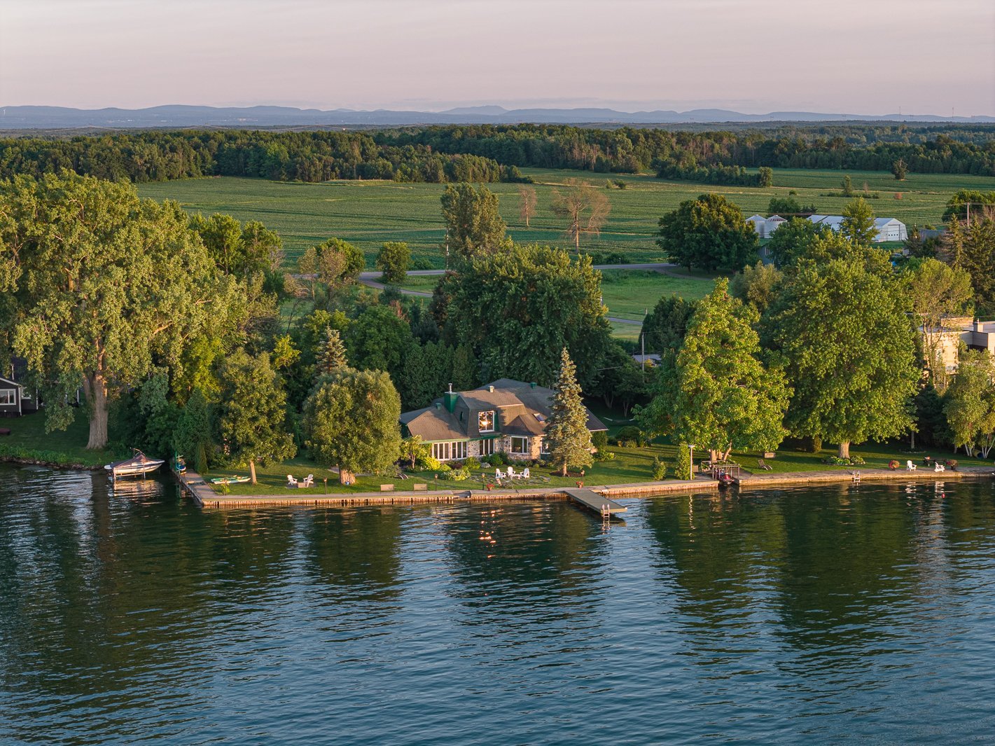 Domaine riverain d'exception sur le lac Saint-François -- Élégance, intimité et nature à l'état pur. À seulement une heure de Montréal, découvrez un véritable joyau niché au bout d'une longue allée privée, loin du chemin et des regards indiscrets. Ce domaine rare de plus de 70 000 pi², situé sur une pointe avancée dans le lac Saint-François, vous offre une intimité inégalée et un accès direct à l'un des plus beaux plans d'eau du Québec, avec 260 pieds linéaires de rive privée.