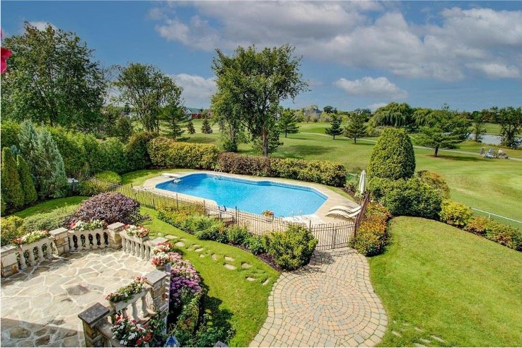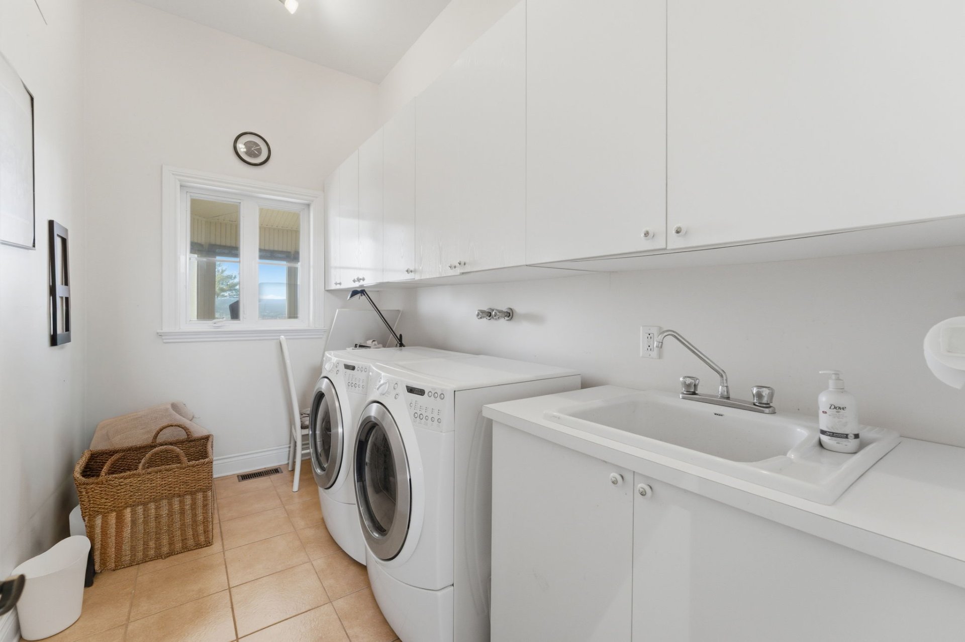 - Réfrigérateur Kitchen Aid, plaque de cuisson au gaz Viking, four encastré Kitchen Aid, micro-ondes Kitchen Aid, lave vaisselle, laveuse, sécheuse, luminaires, revêtements de fenêtres, aspirateur central et acc., chauffe eau de piscine au gaz et acc. de piscine, Faslane endless système au sel, caméras intérieures, borne de recharge pour voiture élect., ouvre-porte de garage (2).
