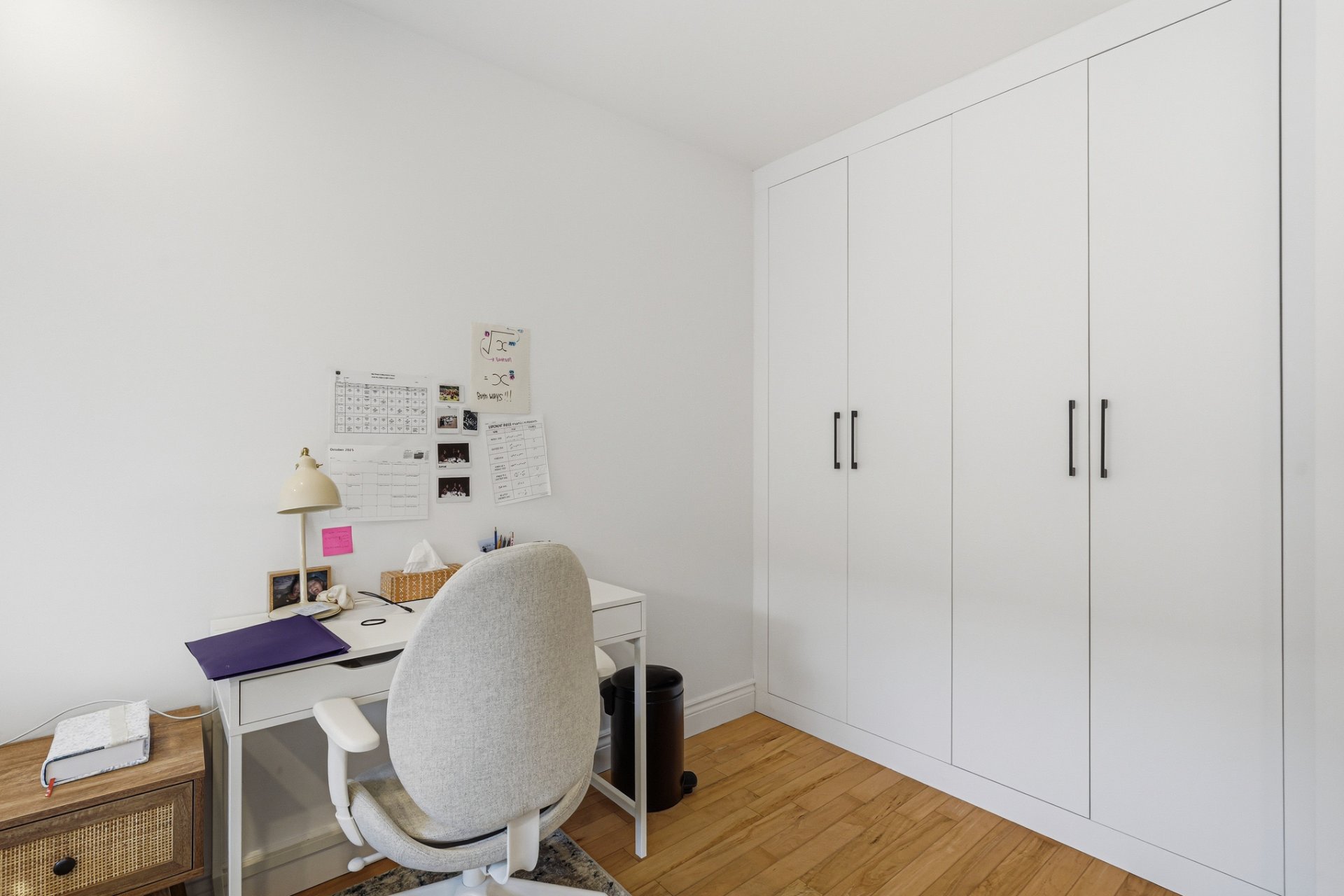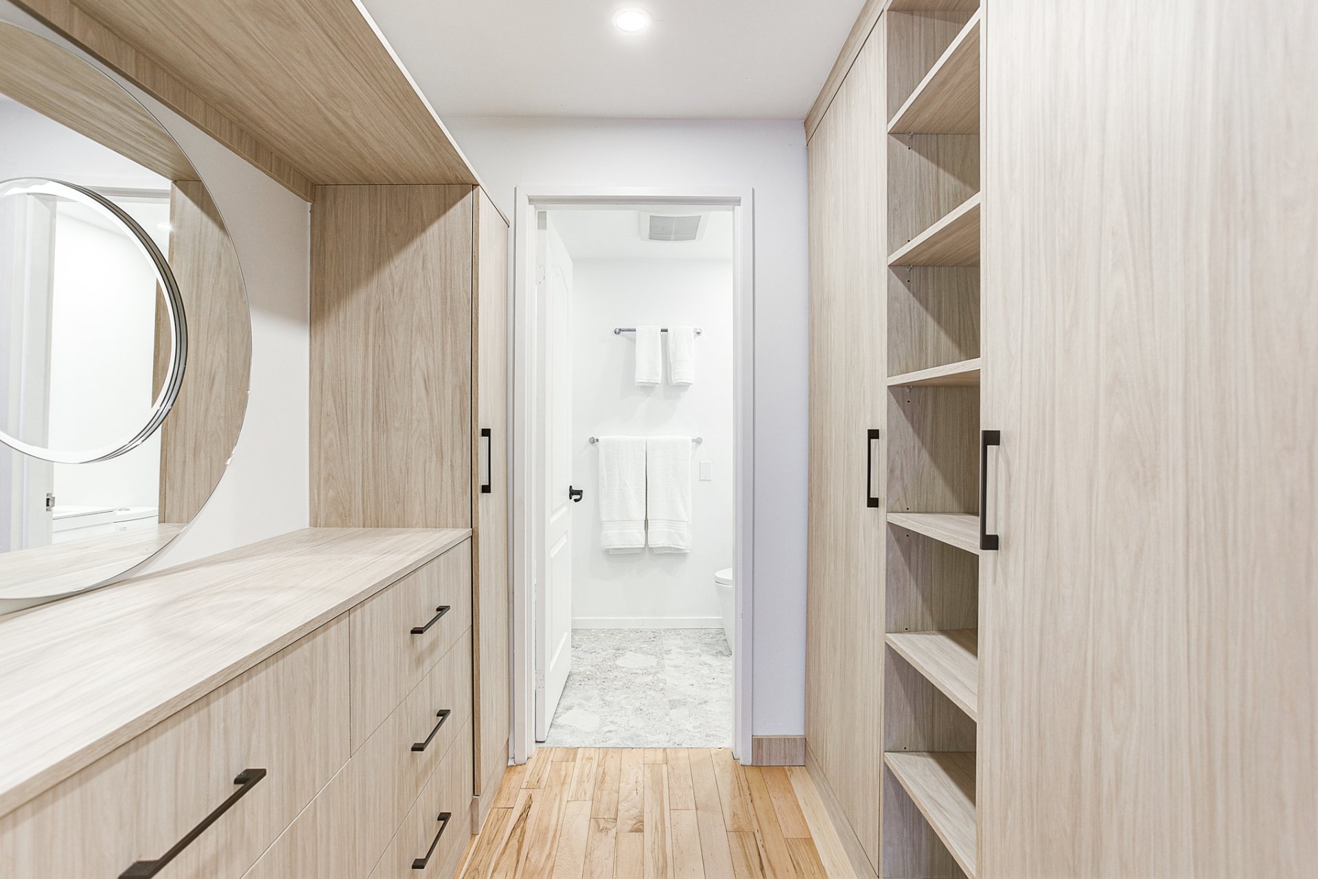 - Des systèmes de rangement ont été installés dans les garde-robes des chambres