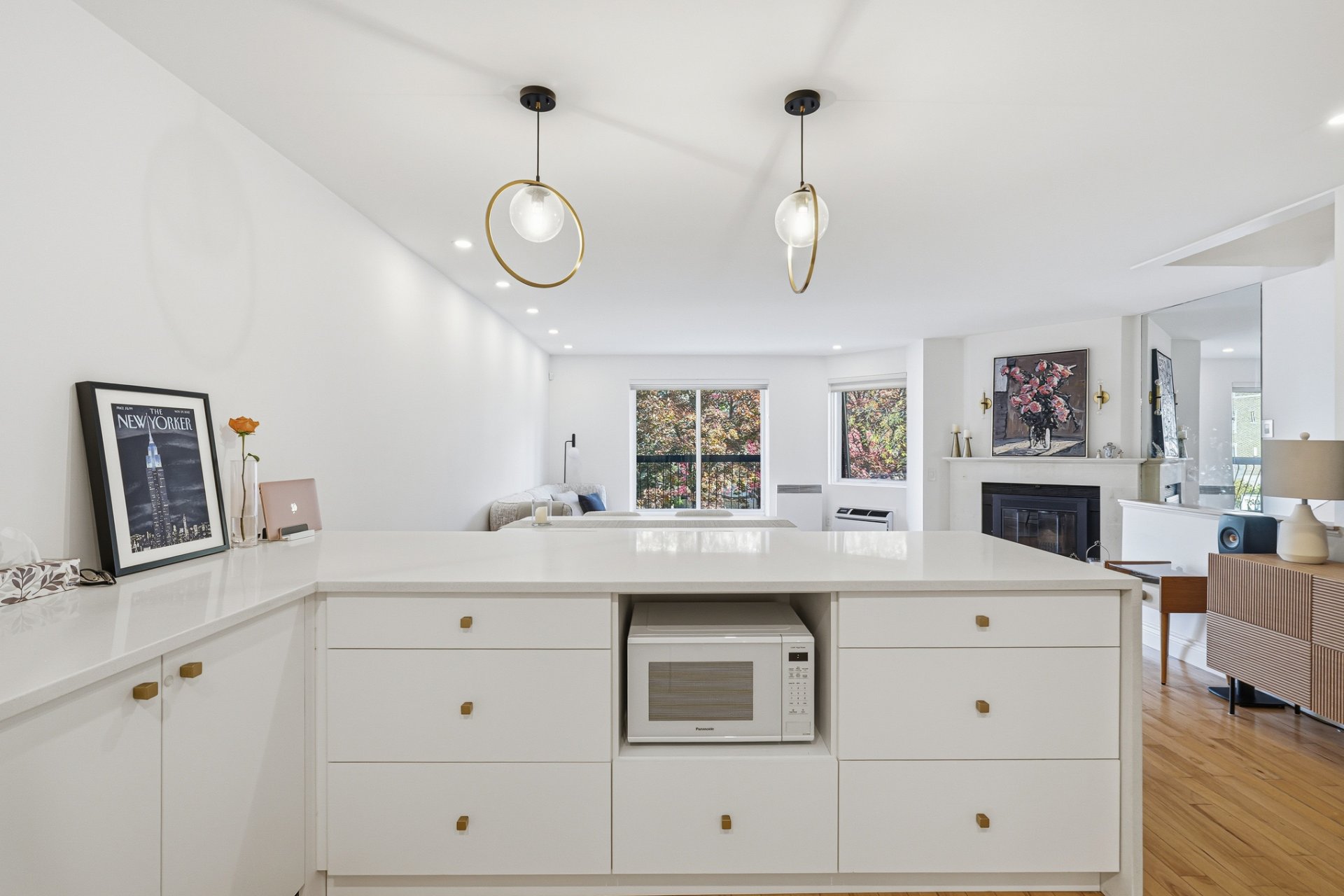 - La cuisine est équipée de comptoirs en quartz, beaucoup de rangements, d'un grand