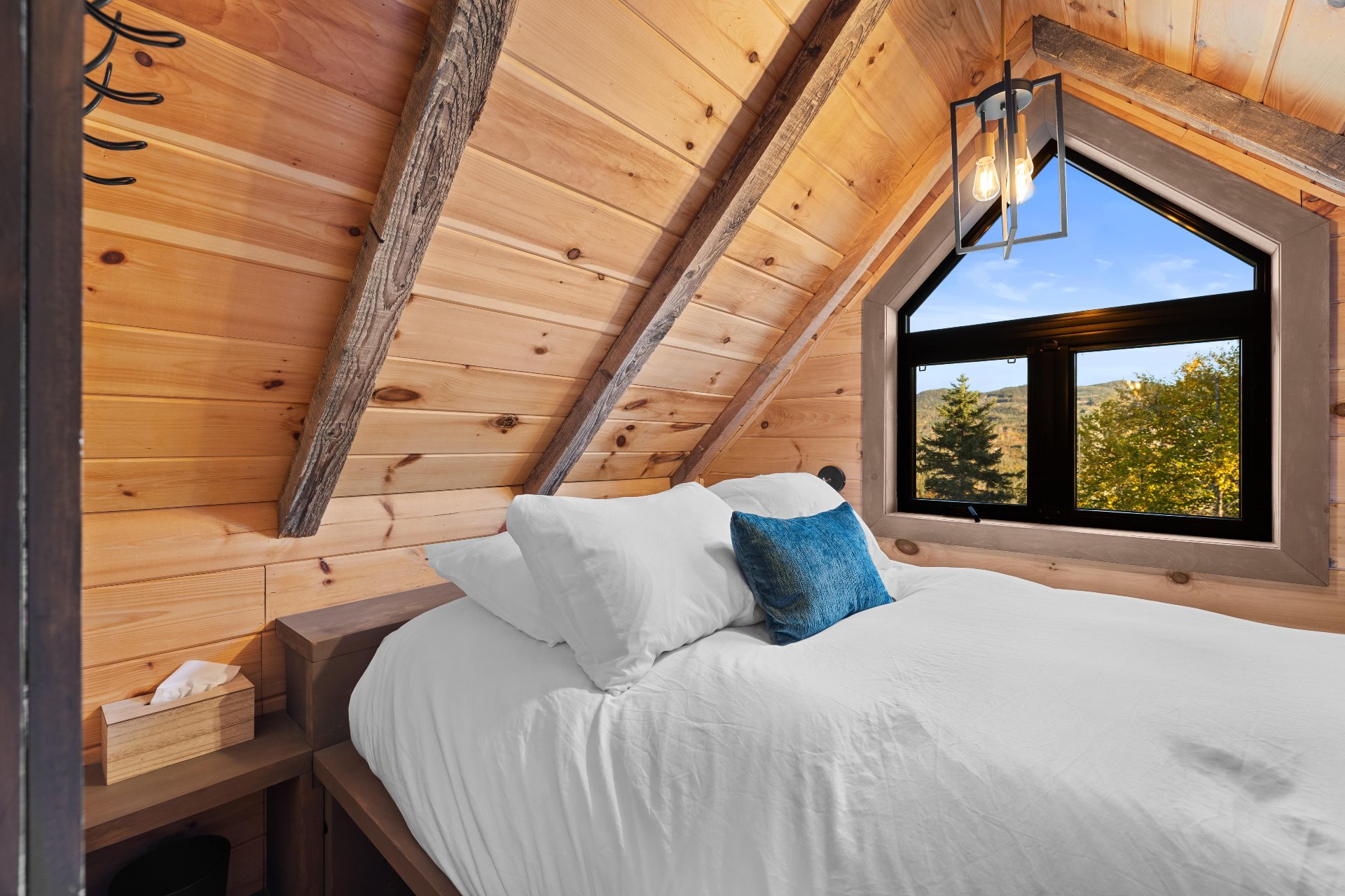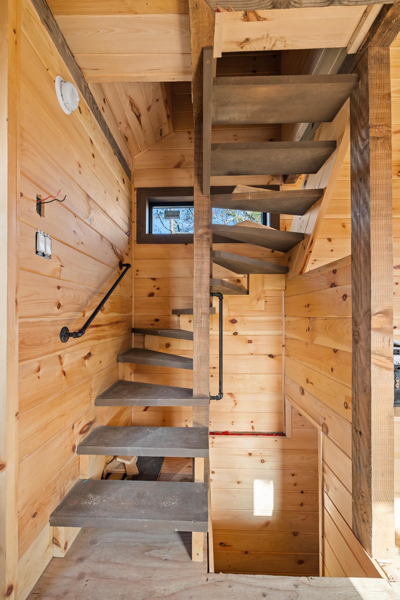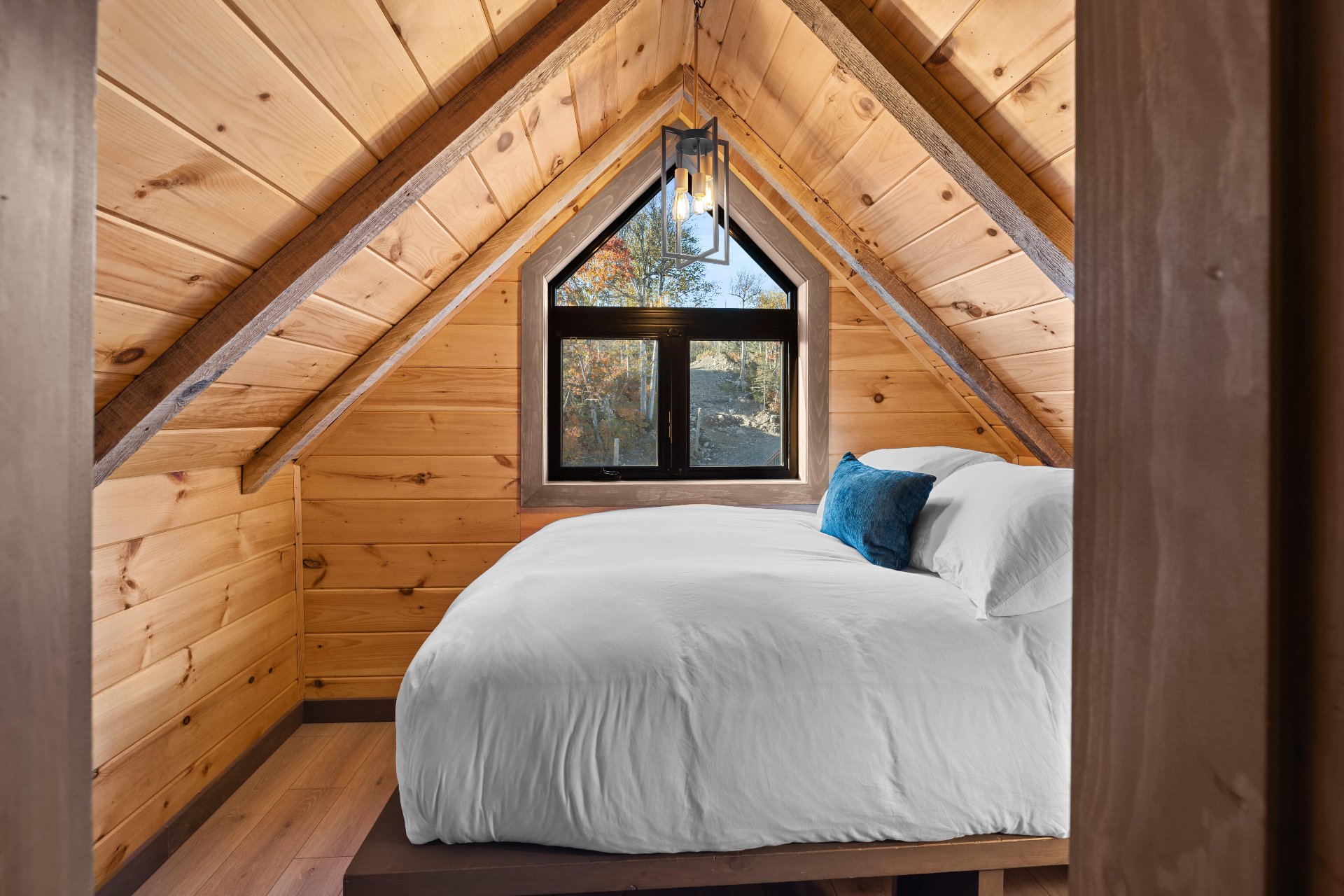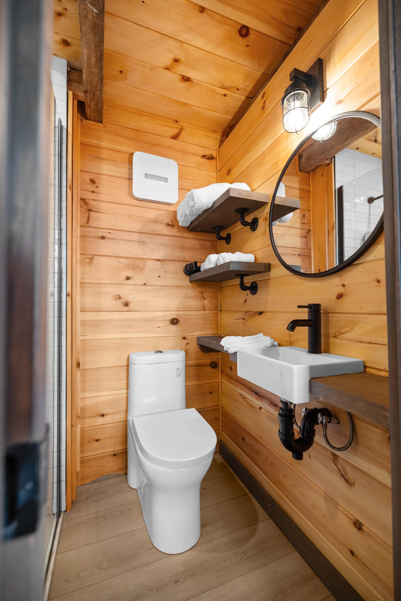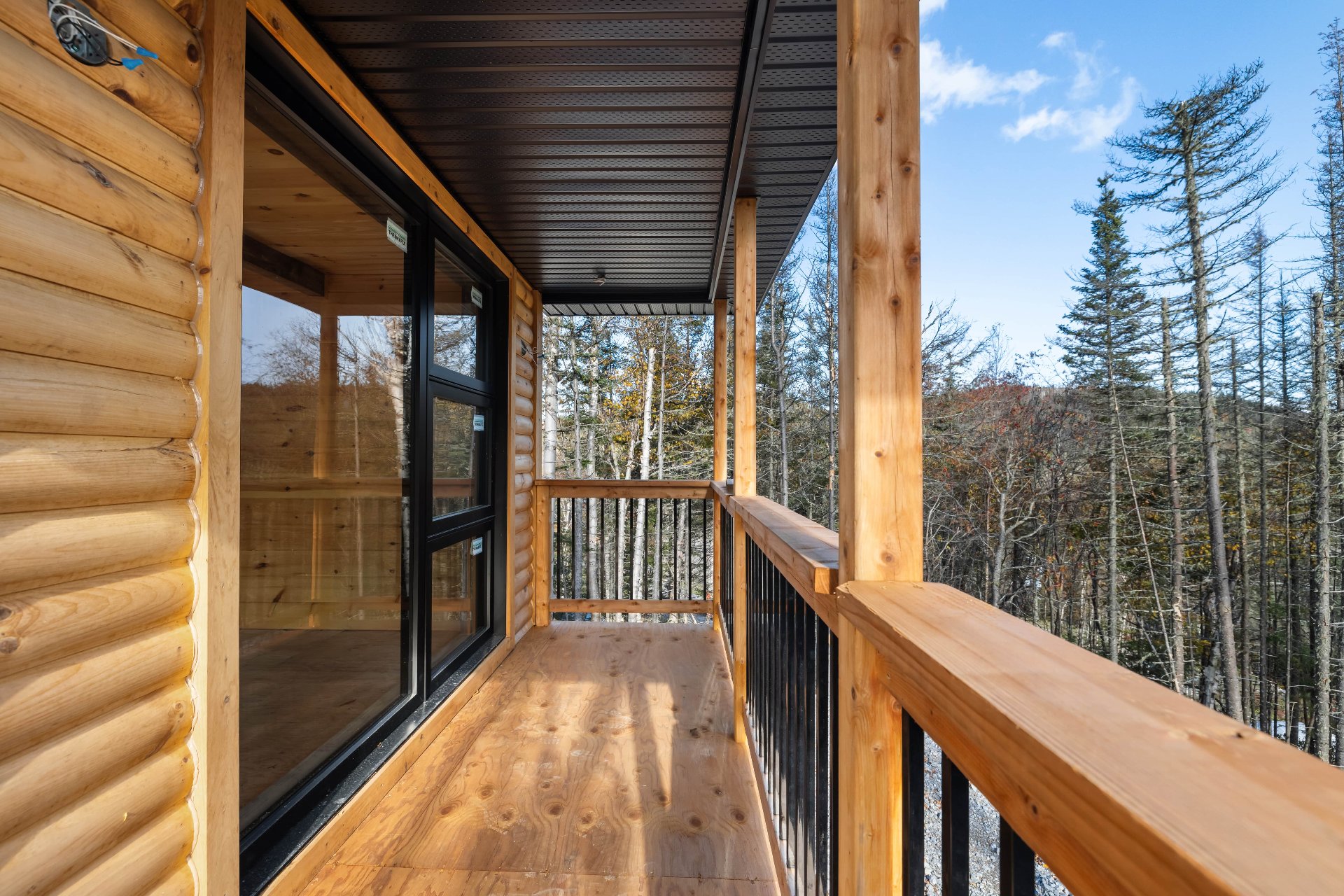 Mini-chalet sur deux étages de ± 20' x 10', avec sous-sol et petit garage intégré, dalle de béton radiant pour une superficie totale de 600 pi². Peut accueillir de 2 à 4 personnes dans un cadre idyllique et comprend tous les services : eau, électricité, chauffage et système d'égout.