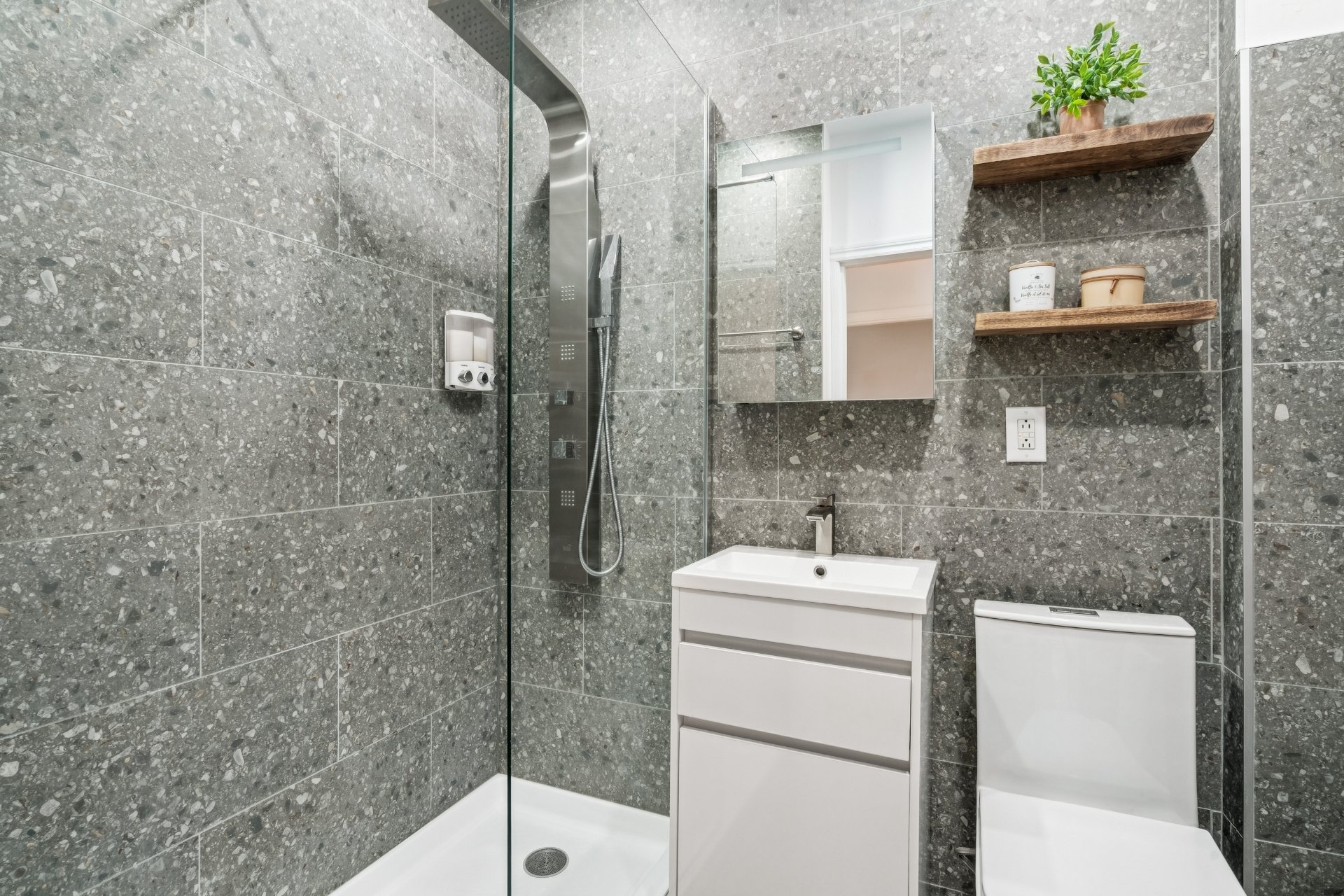 L'unité profite également d'un usage exclusif de l'espace sur le toit situé directement au-dessus de sa partie privative, offrant la possibilité d'y aménager, par exemple, une terrasse ou un puits de lumière, aux frais de l'acheteur et conformément aux règlements municipaux en vigueur.