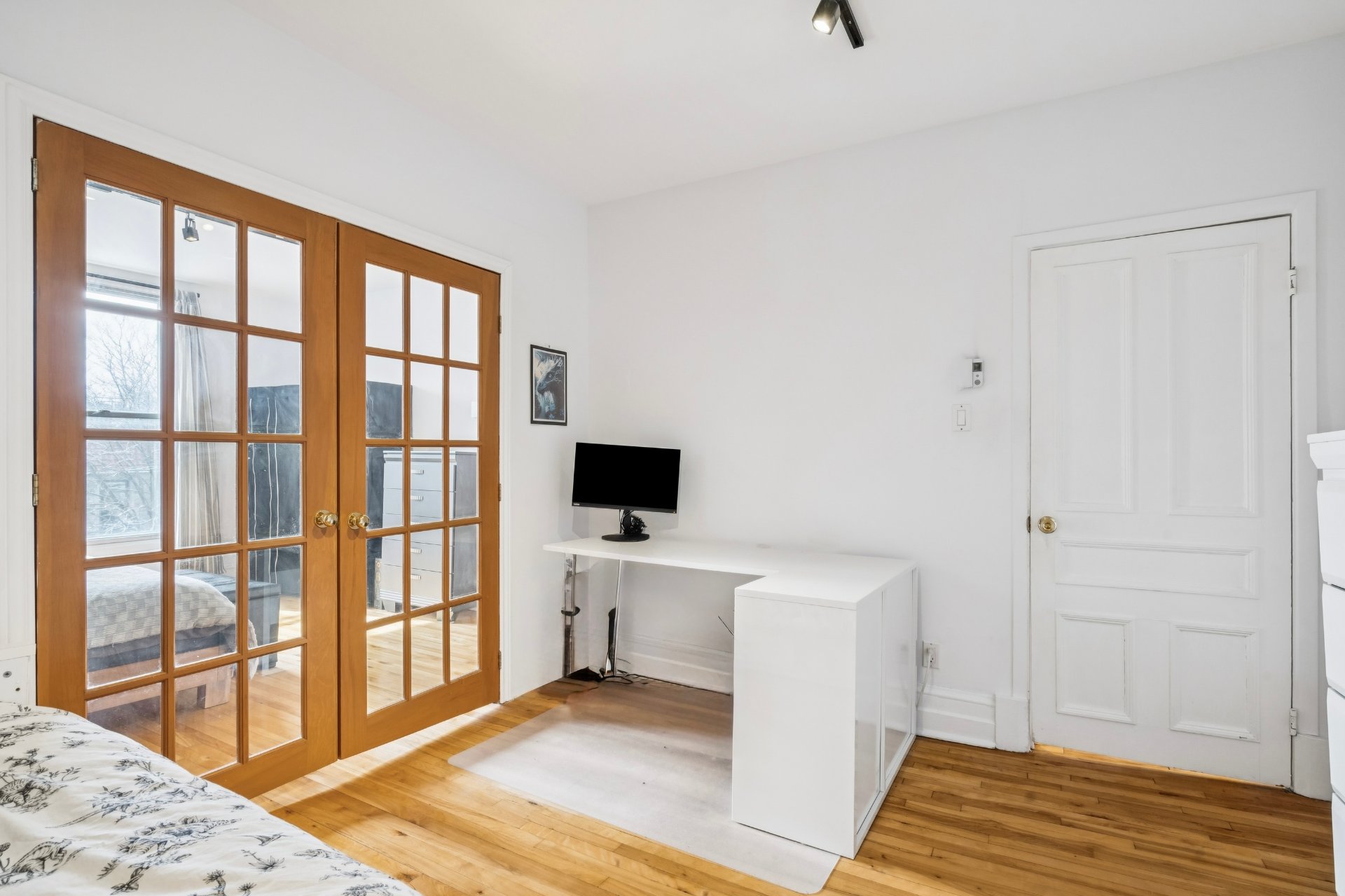 Superbe condo indivise dans une propriété centenaire pleine de cachet, avec entrée privée. Espace spacieux et baigné de lumière avec murs de brique apparente, planchers de bois franc et plafonds de 9 pieds. Cuisine rénovée reliée à une salle à manger conviviale et salle de bain rénovée en 2025. Deux chambres de belles dimensions et espace bureau avec accès au balcon, parfait aussi comme coin lecture. Immense terrasse intime et stationnement privé. Usage exclusif du toit au-dessus de l'unité offrant un beau potentiel d'aménagement. Situé dans un coin tranquille d'Hochelaga. Financement Desjardins Coeur-de-l'Île, mise de fonds 20 %.