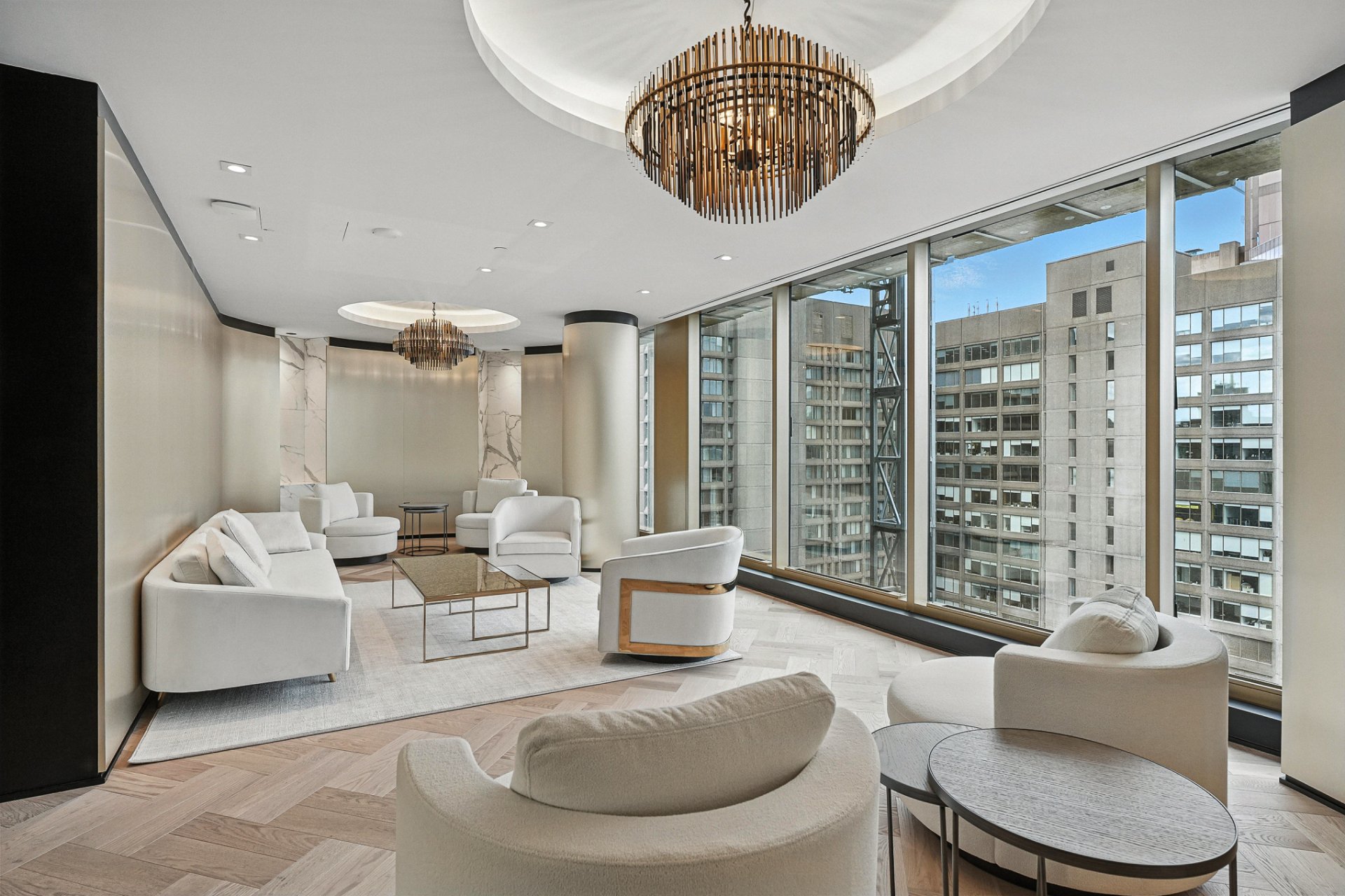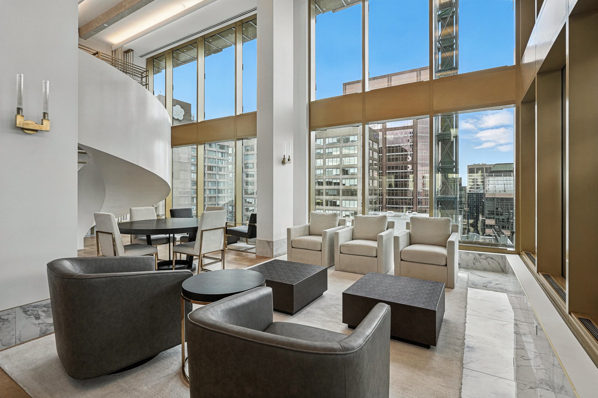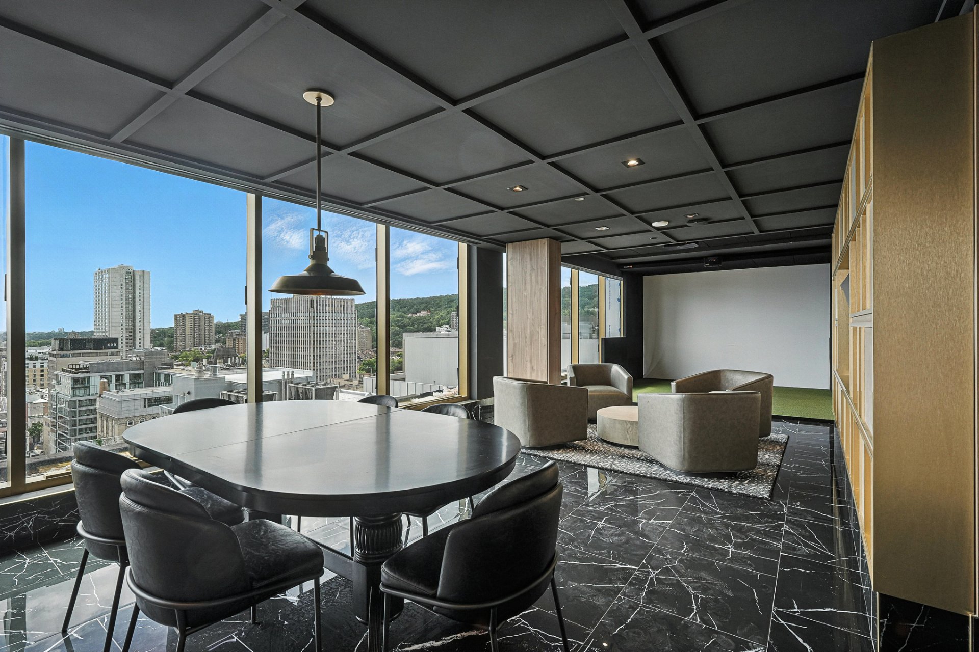 * 22e étage : simulateur de golf virtuel, salon lounge avec foyer, salle à manger privée et terrasse panoramique.