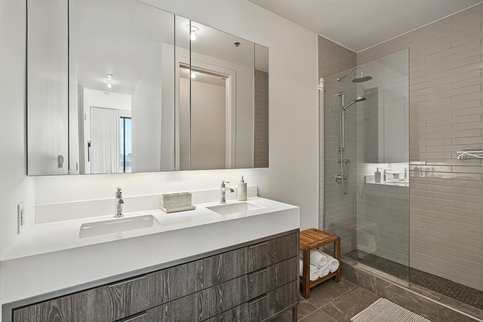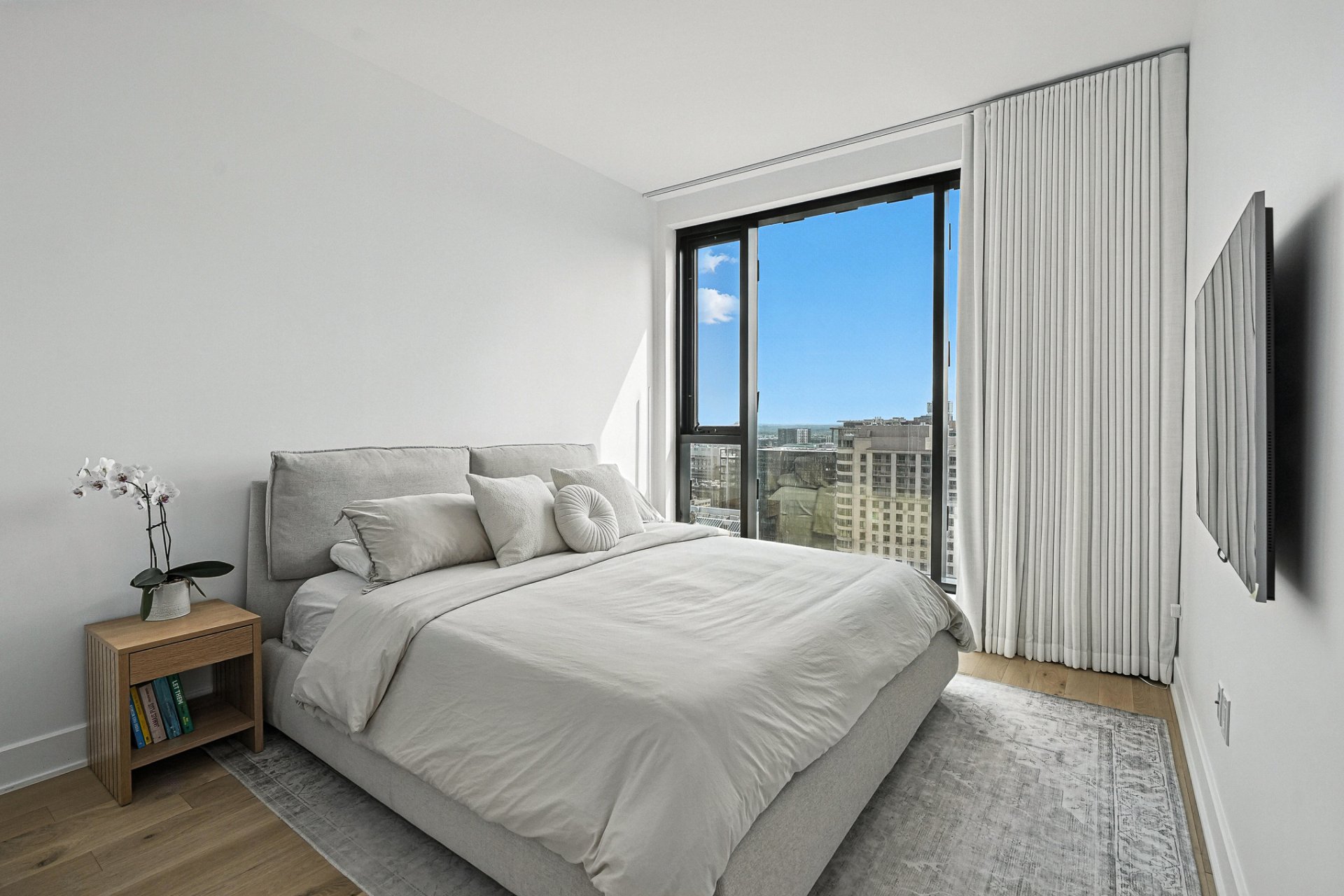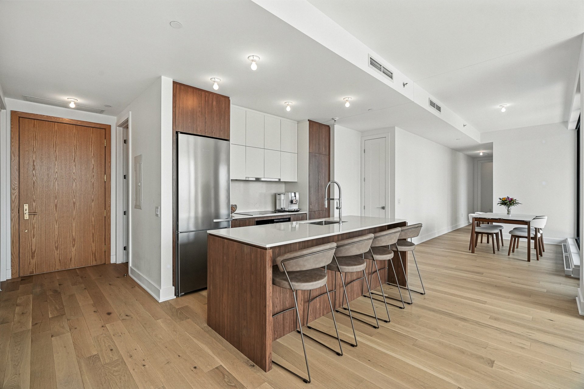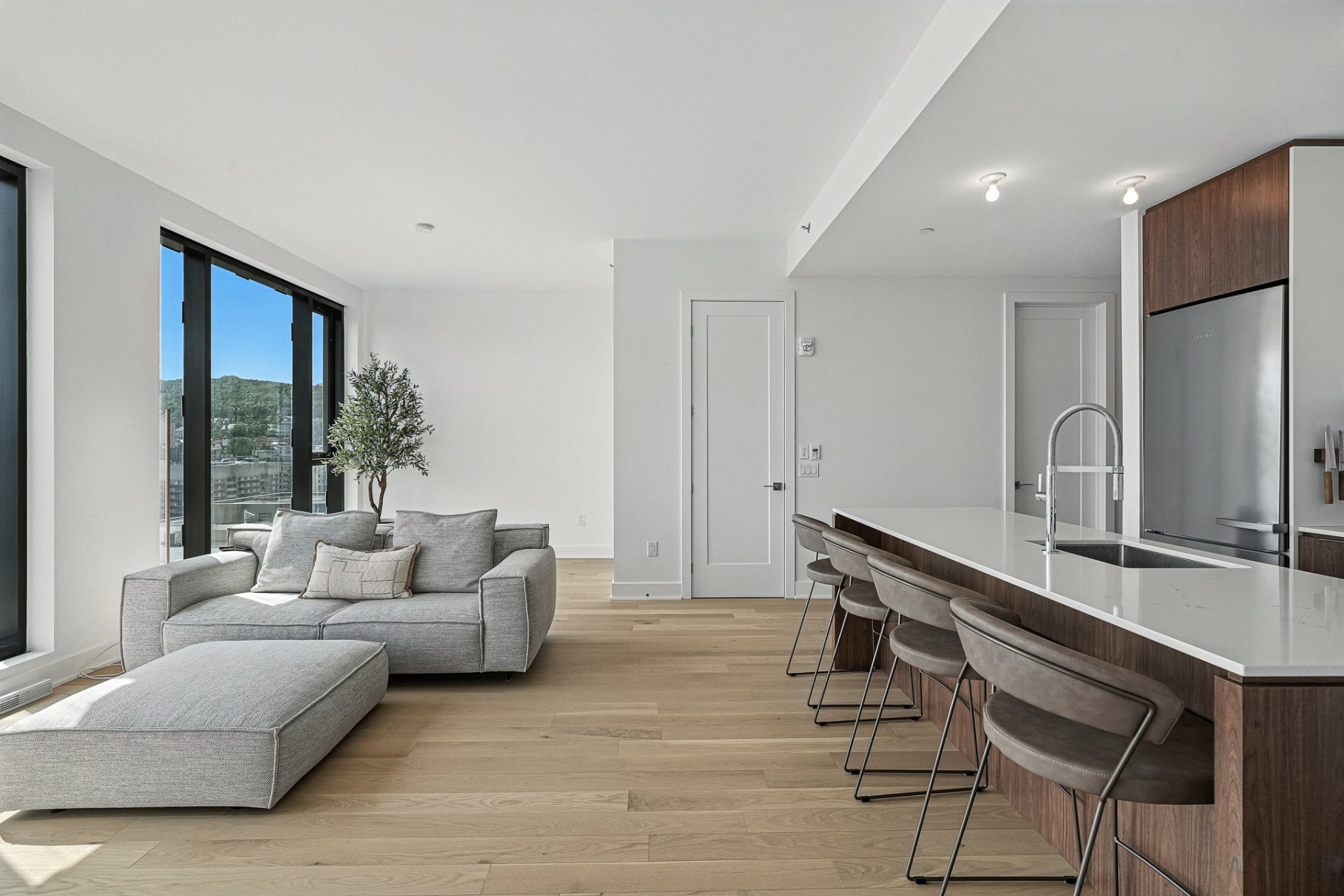 MAA CONDOMINIUMS | 24e étage - Étage exécutif réservé aux unités les plus distinguées. Aire de vie spacieuse à aire ouverte regroupant cuisine, salon, salle à manger et grande terrasse. Walk-in garde-manger, salle de lavage indépendante et rangement abondant. Suite principale avec salle de bain attenante, toilette séparée, planchers chauffants, walk-in et rideaux motorisés. Deuxième chambre avec walk-in et salle de bain complète. Plafonds de 9,8pi et vue spectaculaire sur le Mont-Royal et la ville. Orientation sud-ouest, finitions haut de gamme, planchers de bois d'ingénierie. Stationnement intérieur avec borne de recharge et grand rangement.