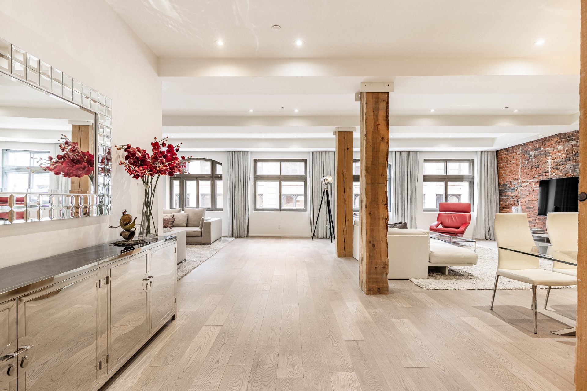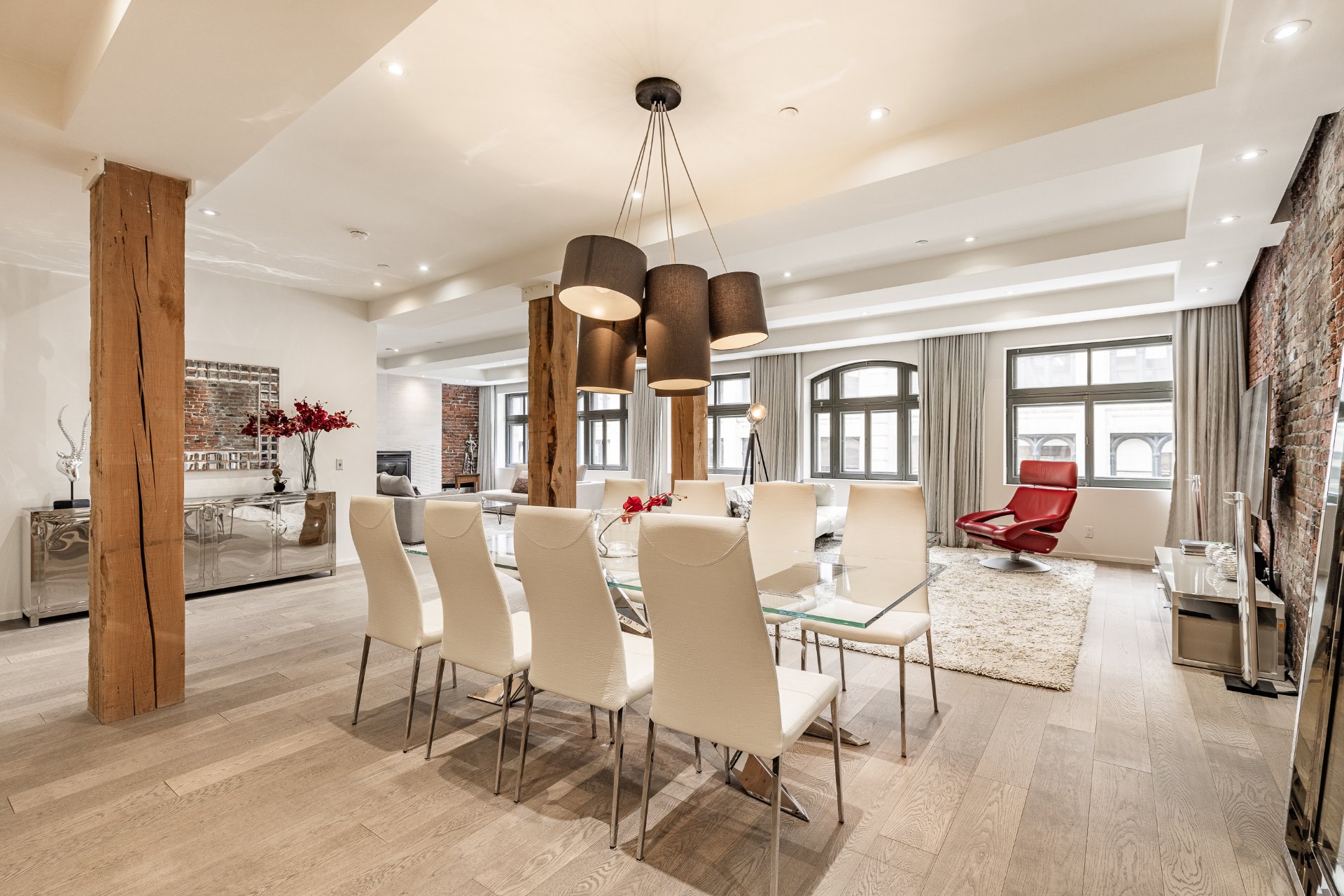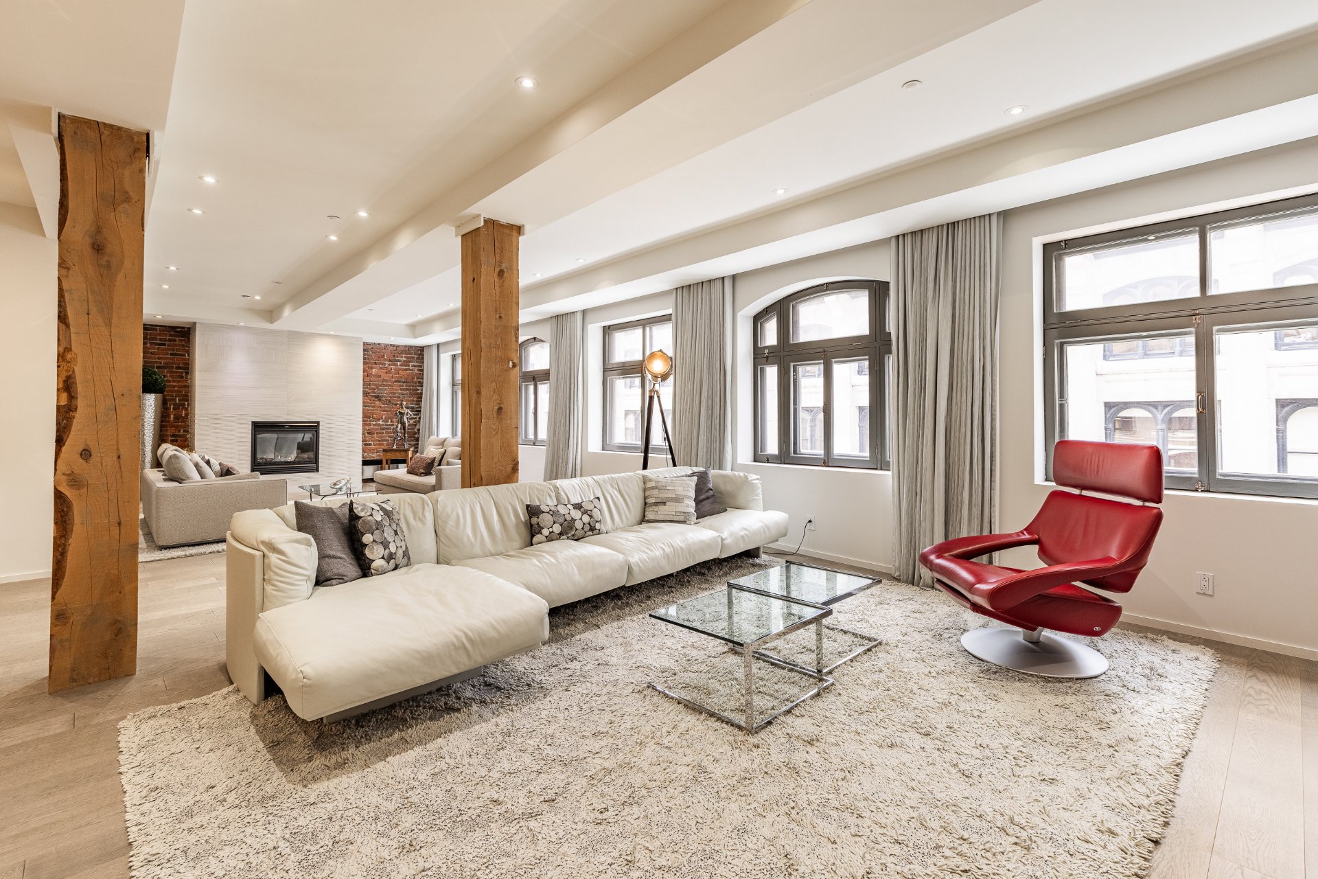 Cette unité d'exception à la Cité Nouveau Monde offre un espace de vie ouvert et spectaculaire, rehaussé par une fenestration hors du commun sur la rue St-Paul.