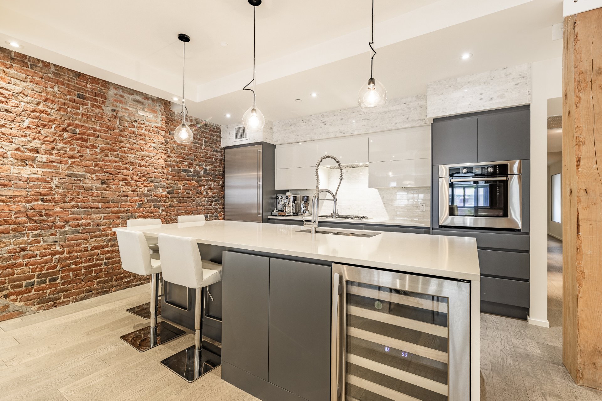 - Cachet du Vieux Montréal: murs de briques, colonnes de bois originales