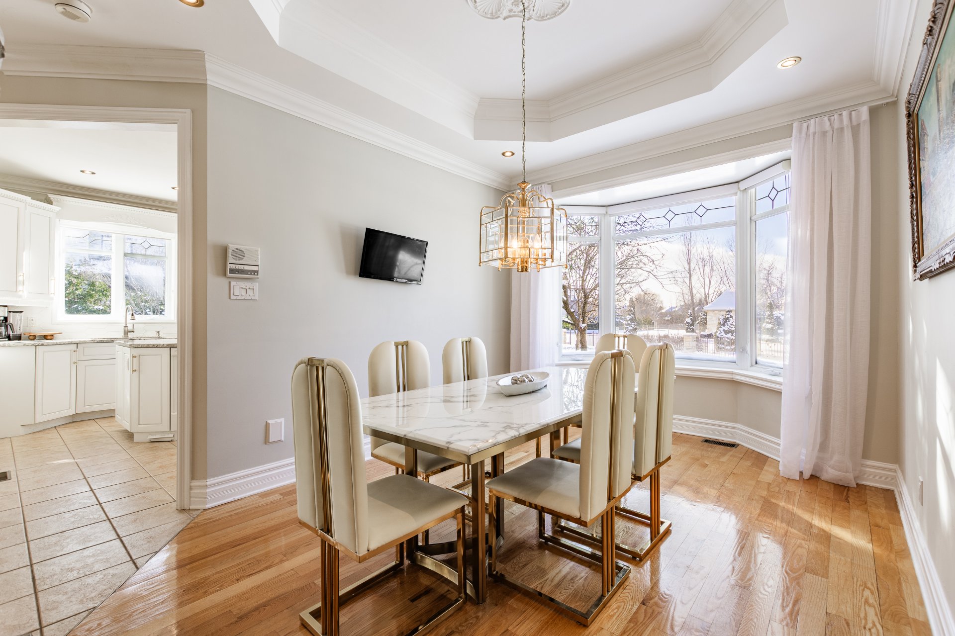 + Salle à manger attenante à la cuisine, éclairée par fenêtres en baie.