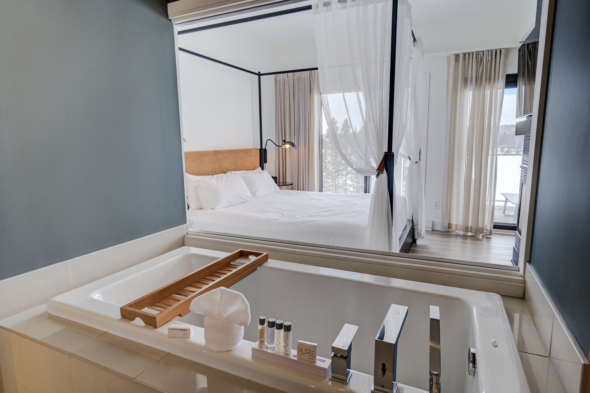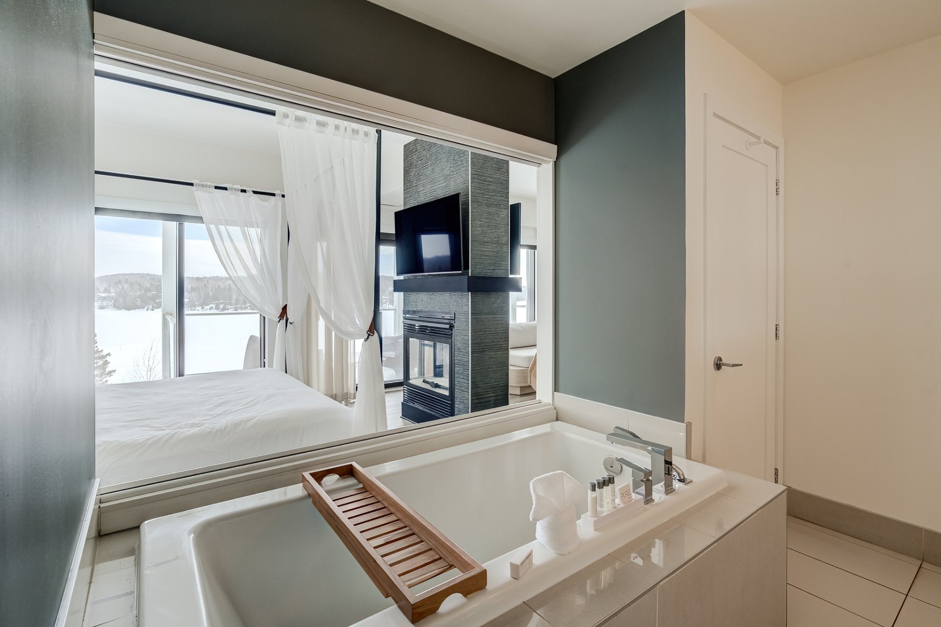 - Immense fenestration ouvrant sur l'extérieur