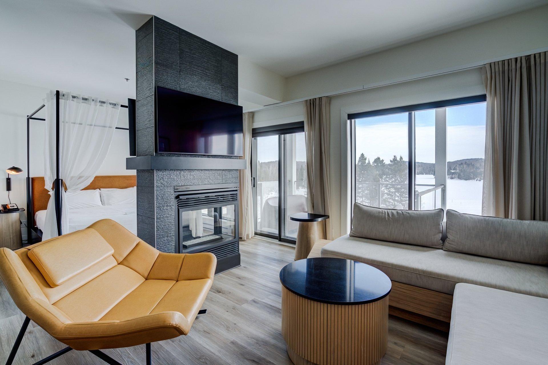 RÉSIDENCE HÔTELIÈRE avec revenu mensuel garanti. Condo luxueux meublé au Resort Spa l'Ésterel. Investissement privilegié sur un site exceptionnel au coeur de la nature avec des vues surprenantes offrant toutes les commodités recherchées. Idéal pour se ressourcer et profiter des activités environnantes.