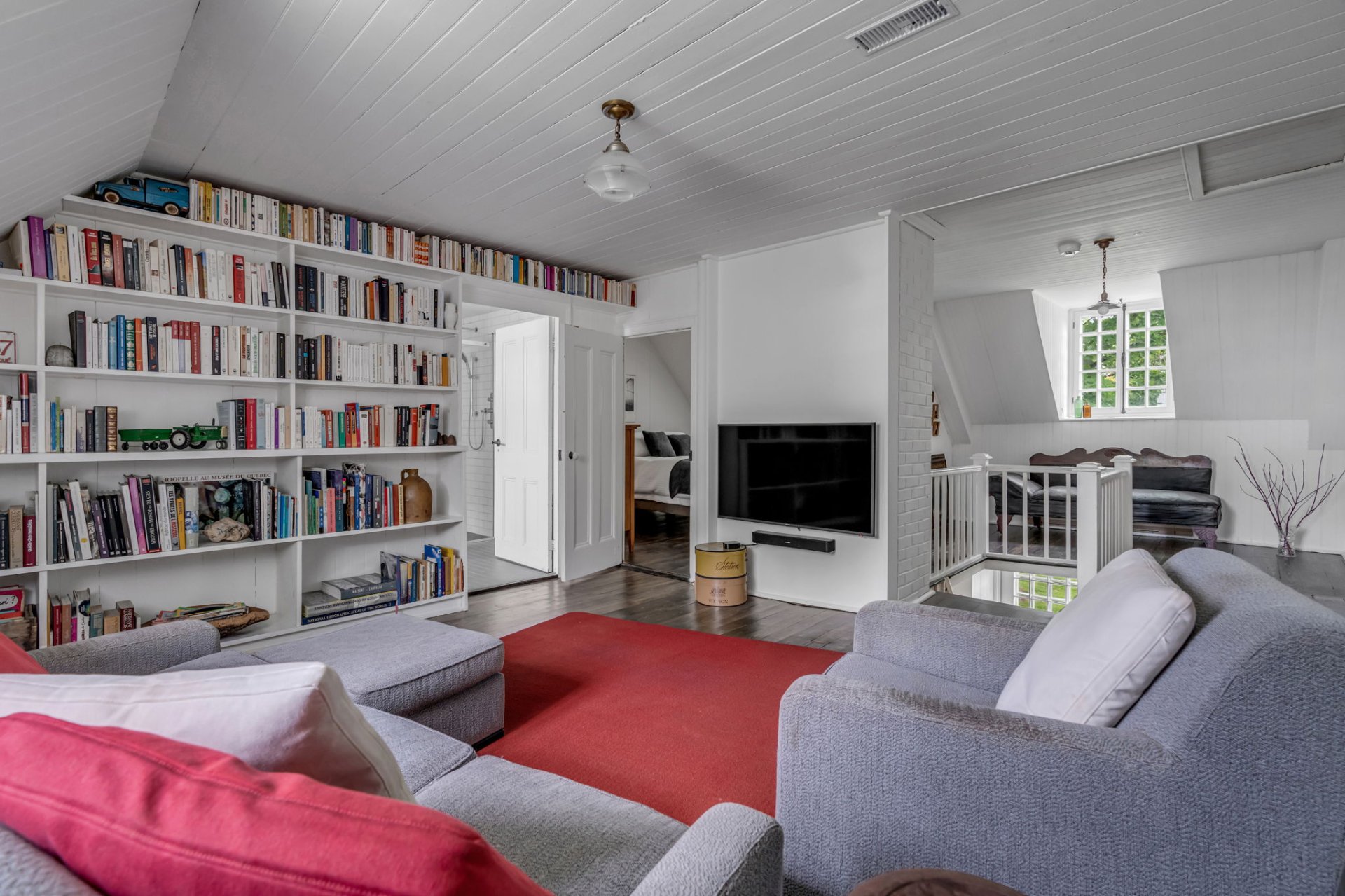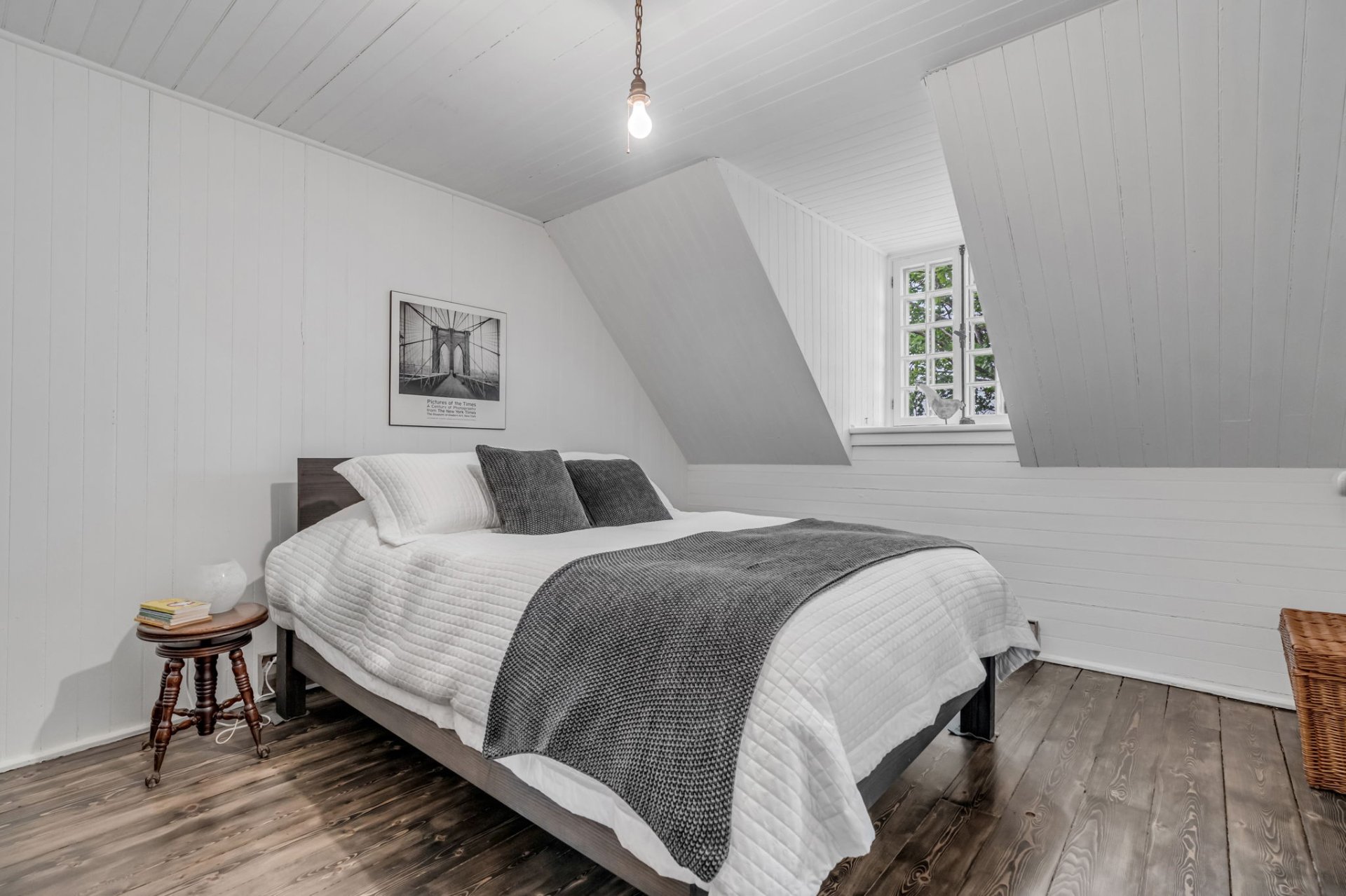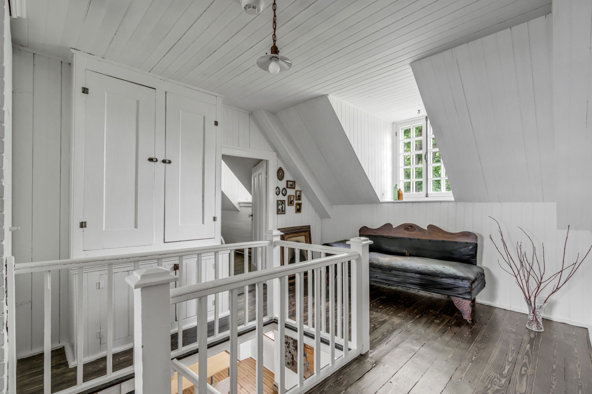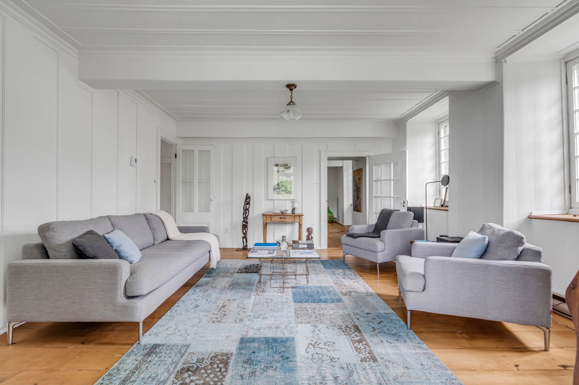 À l'intérieur, l'authenticité règne. Les murs de périmètre en madriers de pin révèlent le savoir-faire d'autrefois et dégagent une atmosphère enveloppante. Plusieurs éléments d'origine subsistent et affirment le caractère singulier de la demeure : les cloisons en planches à caissons, les plafonds à caissons ou à couvre-joints, les portes d'assemblage à panneaux, les poutres moulurées, sans oublier les planchers d'époque, patinés, vernis avec soin. Ces détails d'antan, préservés avec une rare fidélité, créent une ambiance feutrée et raffinée, propice à la contemplation, à la création ou à la villégiature.