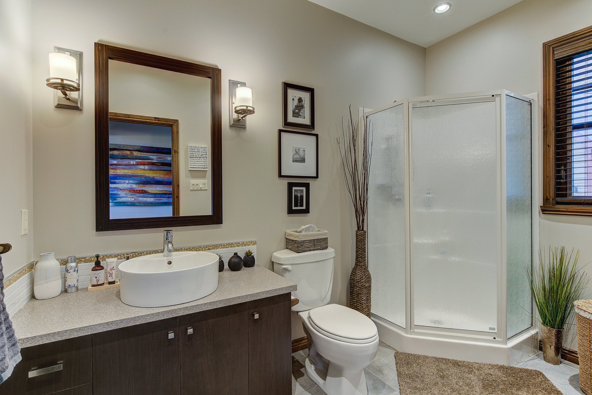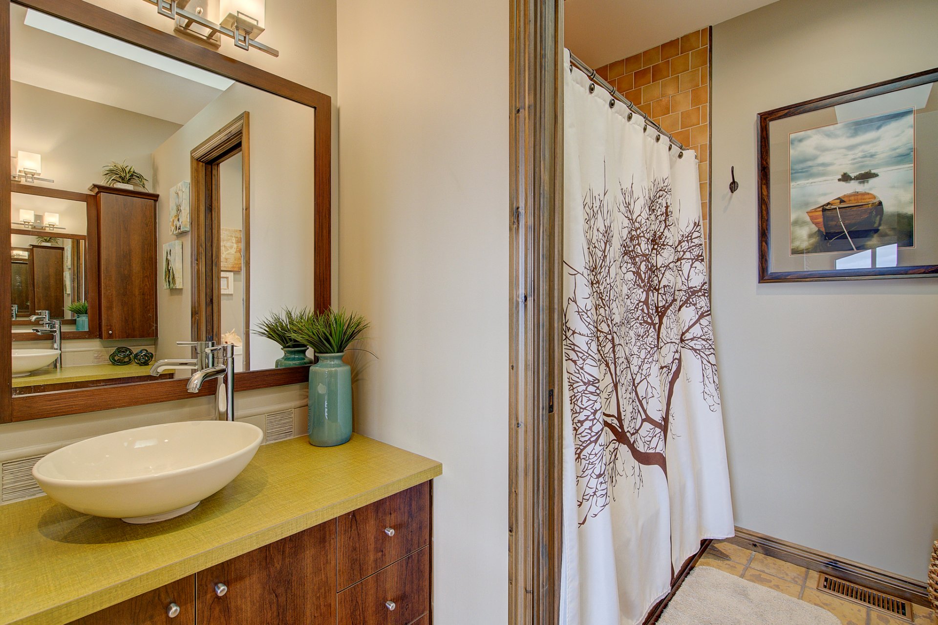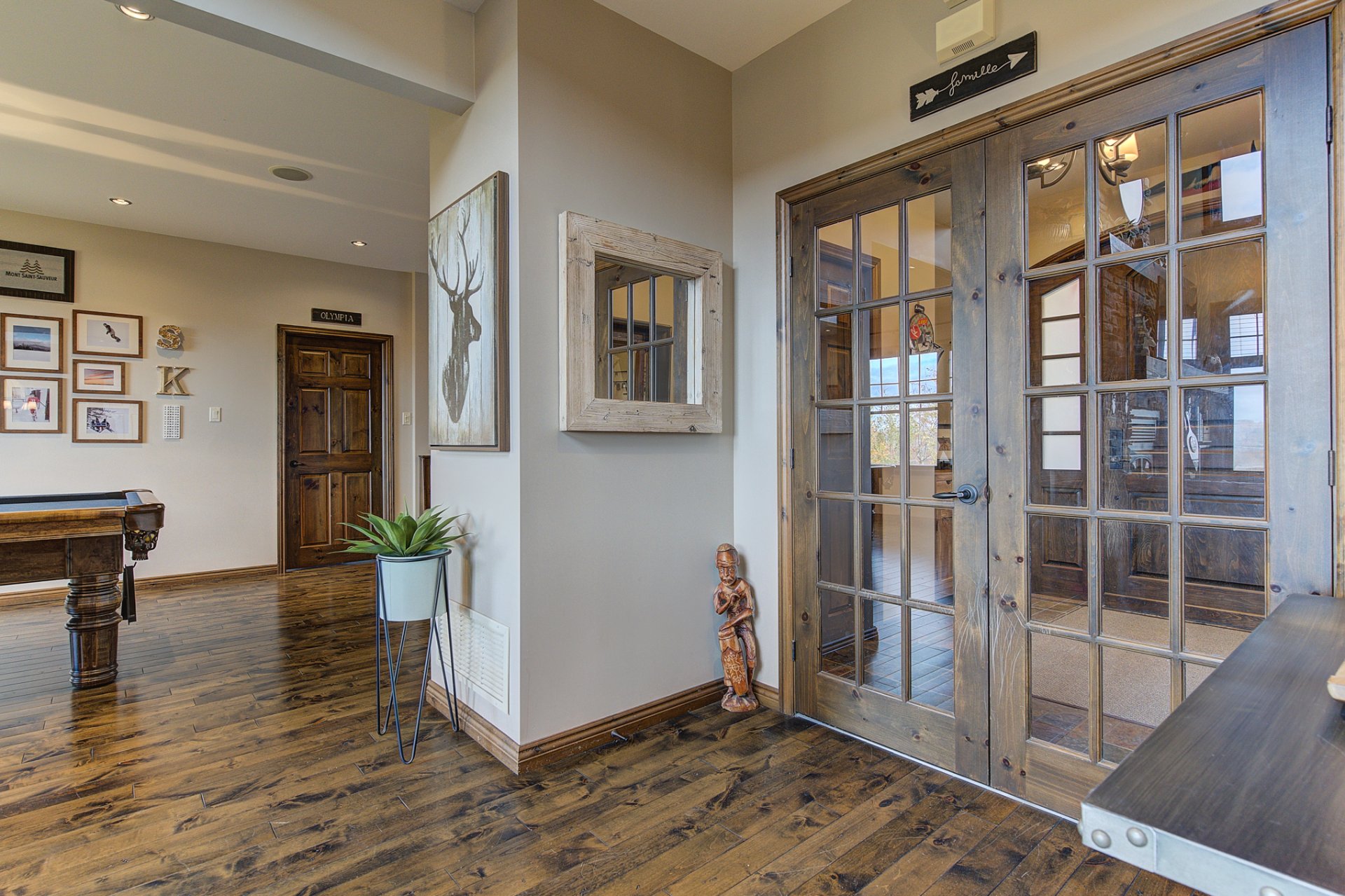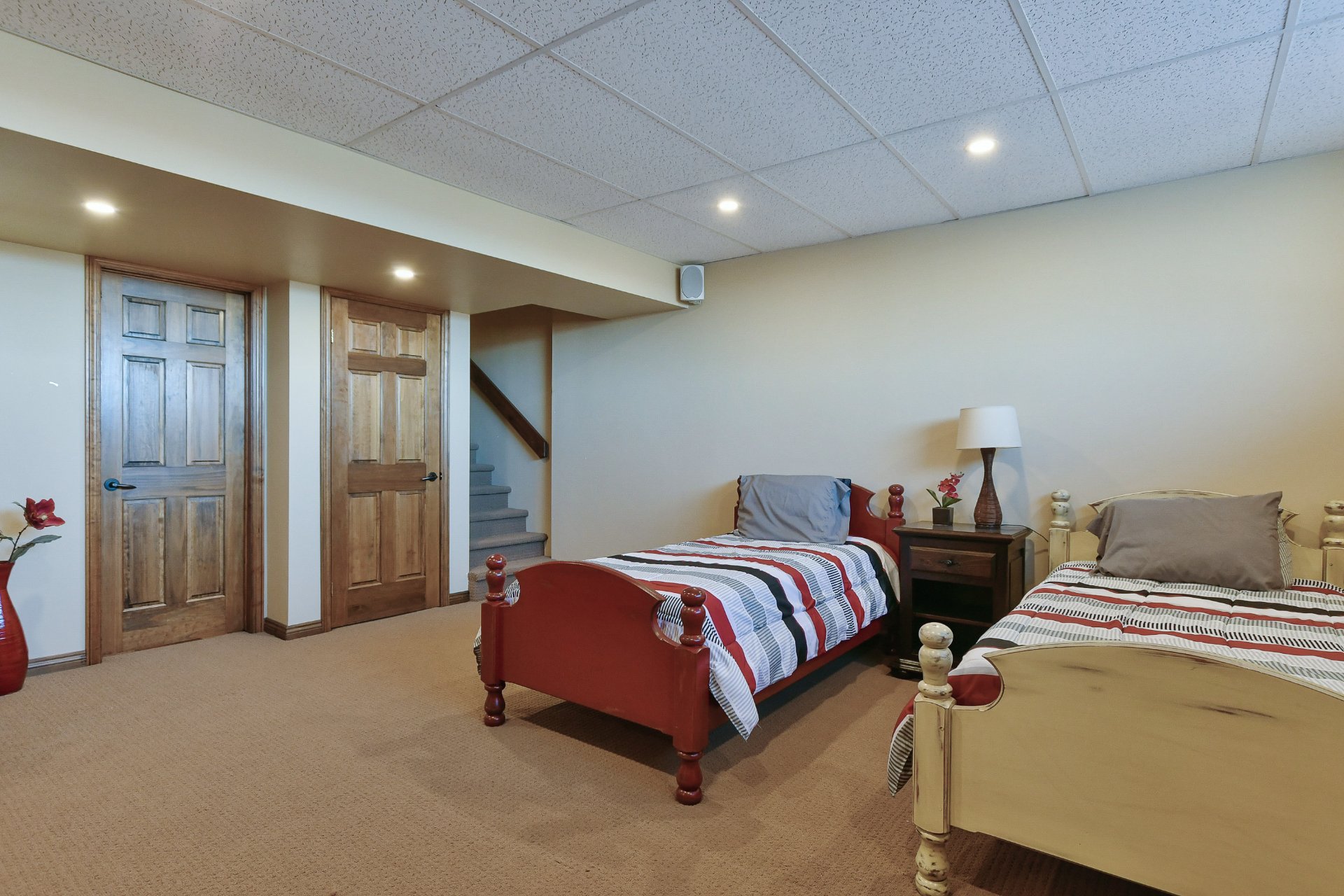 Aux côtés du salon, un espace divertissement avec table de billard et banquette intégrée promet de beaux moments entre amis et famille. On y trouve également un bureau, une salle de bains complète ainsi qu'un vestiaire avec laveuse et sécheuse pour plus de commodité.