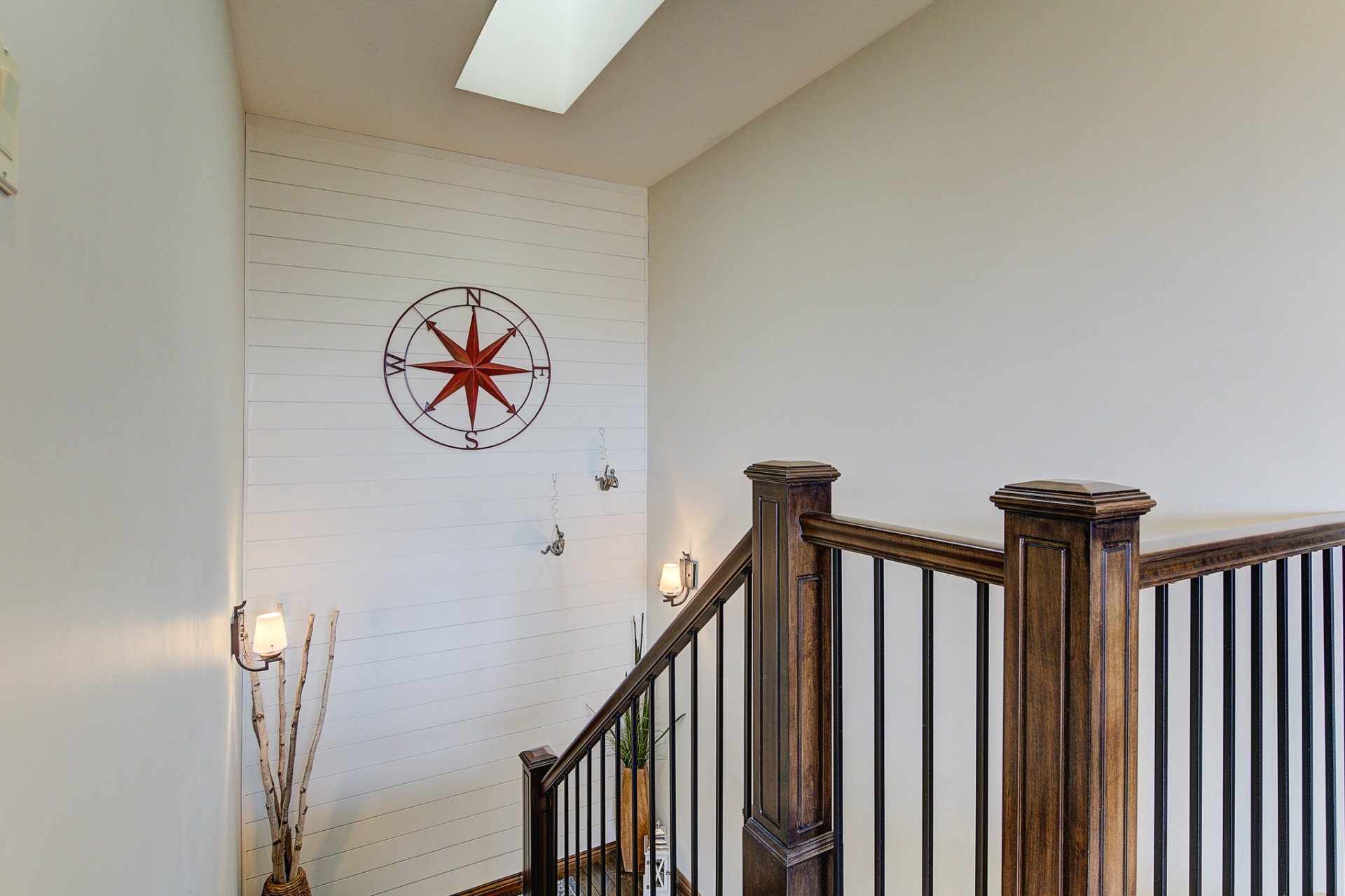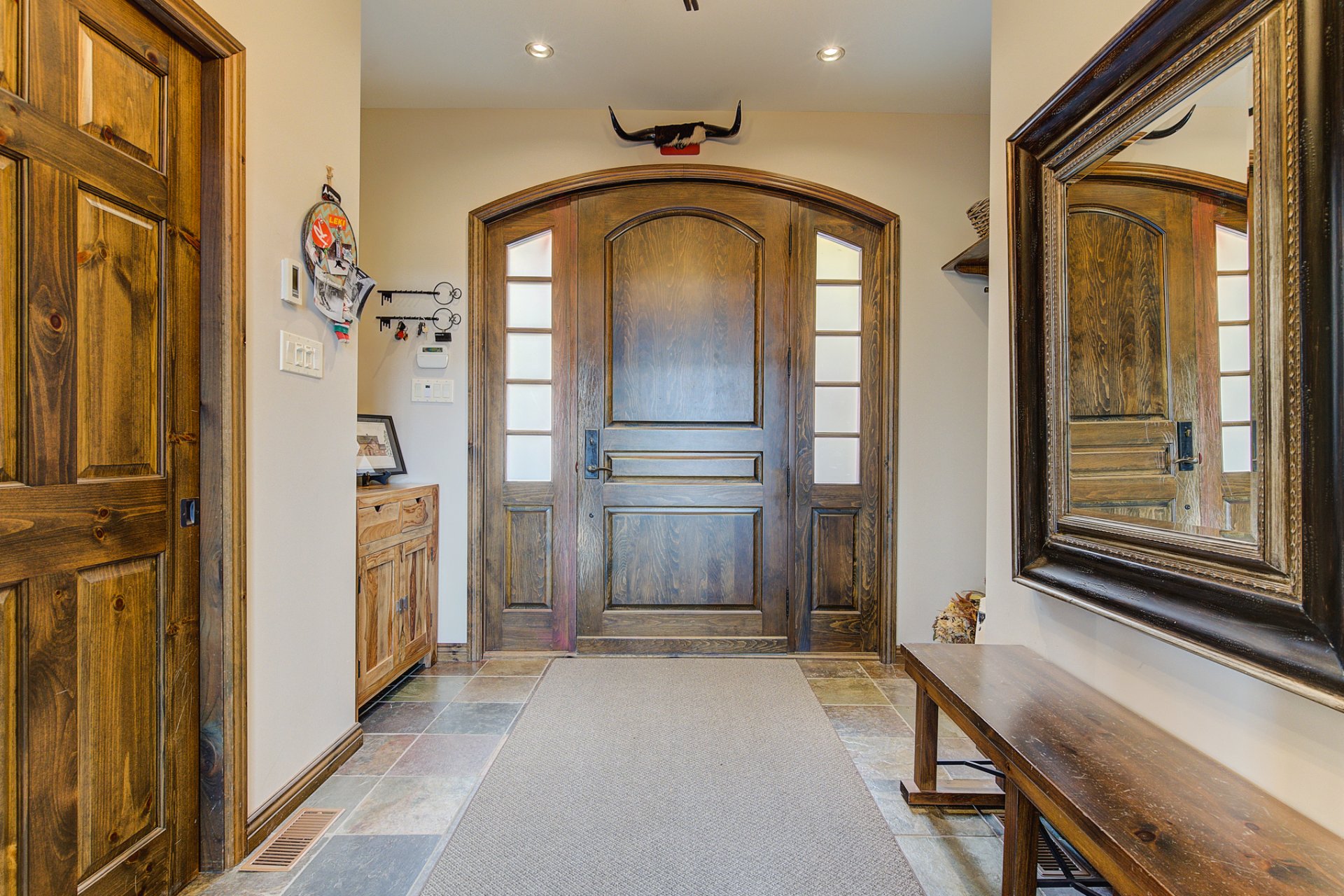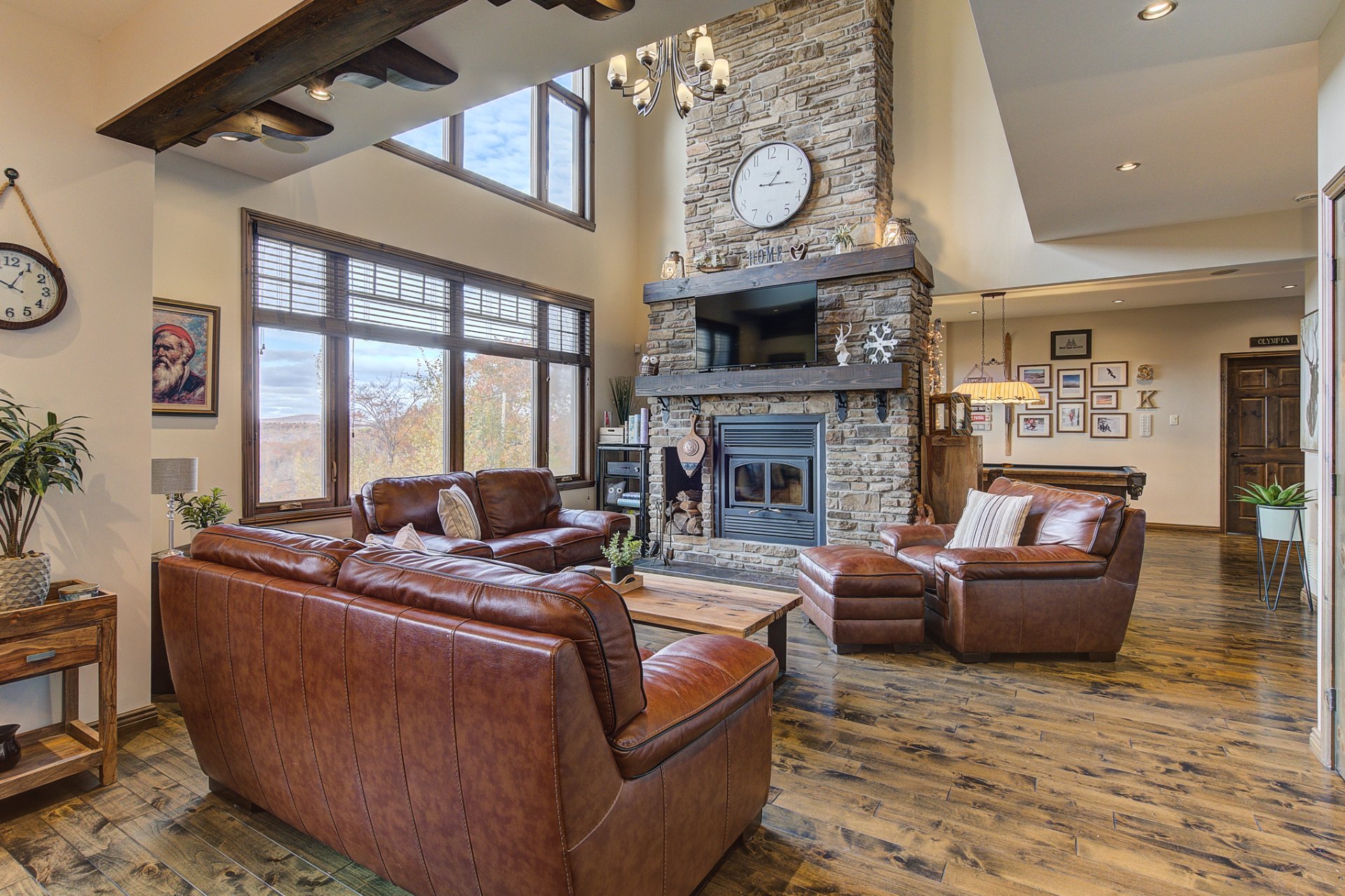 À l'extérieur, un portail privé vous accueille et vous mène vers un intérieur soigné. Dès l'entrée, un vaste hall avec plancher chauffant et walk-in combine confort et fonctionnalité. L'espace de vie principal séduit par son ambiance chaleureuse et raffinée : plafond cathédrale, poutres de bois apparentes, planchers en bois noble et un foyer au bois habillé de pierre qui trône au coeur du salon.