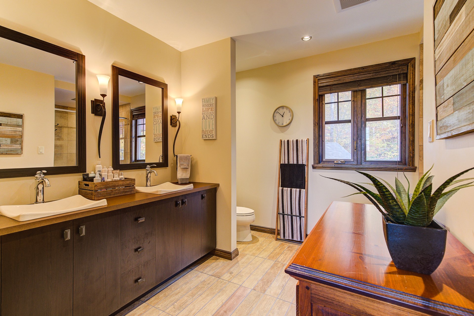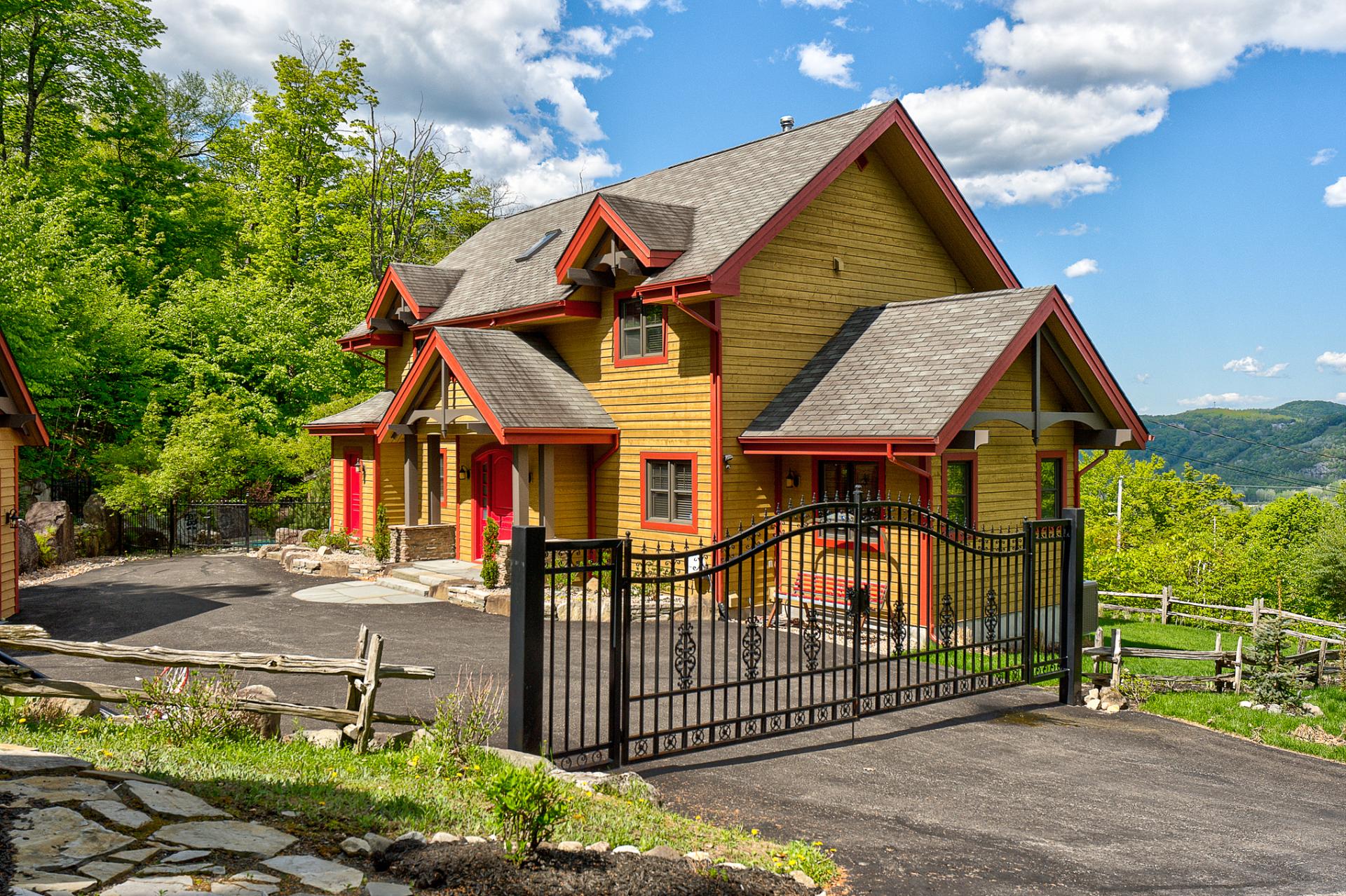 SKI-IN/SKI-OUT -- Vivez la montagne au quotidien! Propriété d'exception au coeur de Piedmont avec accès direct aux pistes du Mont Olympia. Intérieur chaleureux : plafond cathédrale, poutres apparentes, foyer de pierre, cuisine pratique et vaste terrasse. Chambre principale avec vue spectaculaire, plancher chauffant et salle de bains privée. Grand terrain paysager avec piscine au sel chauffée, garage détaché, intimité totale. Un cadre naturel unique mariant confort, raffinement et style de vie alpin.